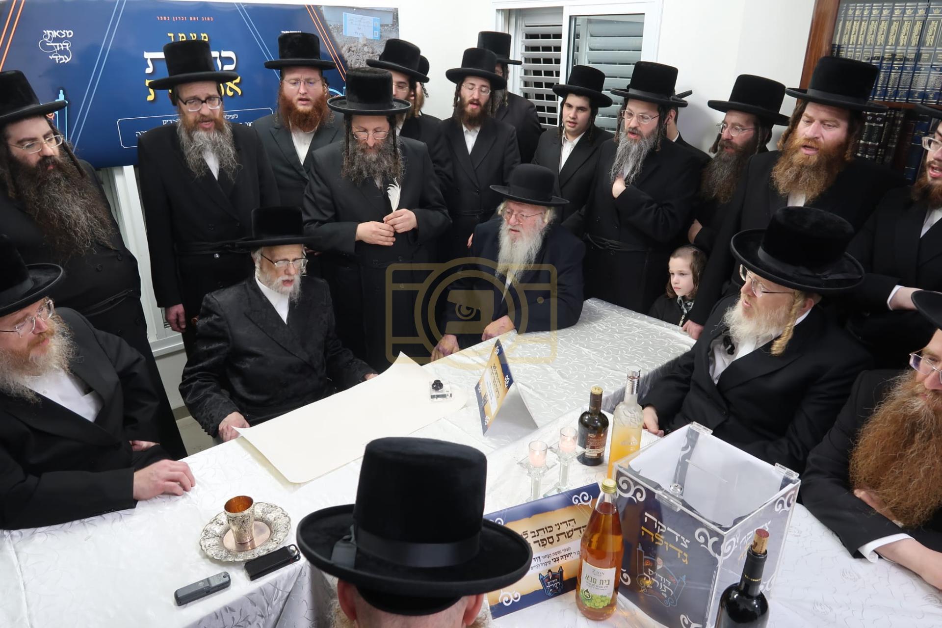 כ"ק אדמו"ר מסערט וויזניץ שליט"א ביי כתיבת ספר תורה לע"נ אחד מחסידיו