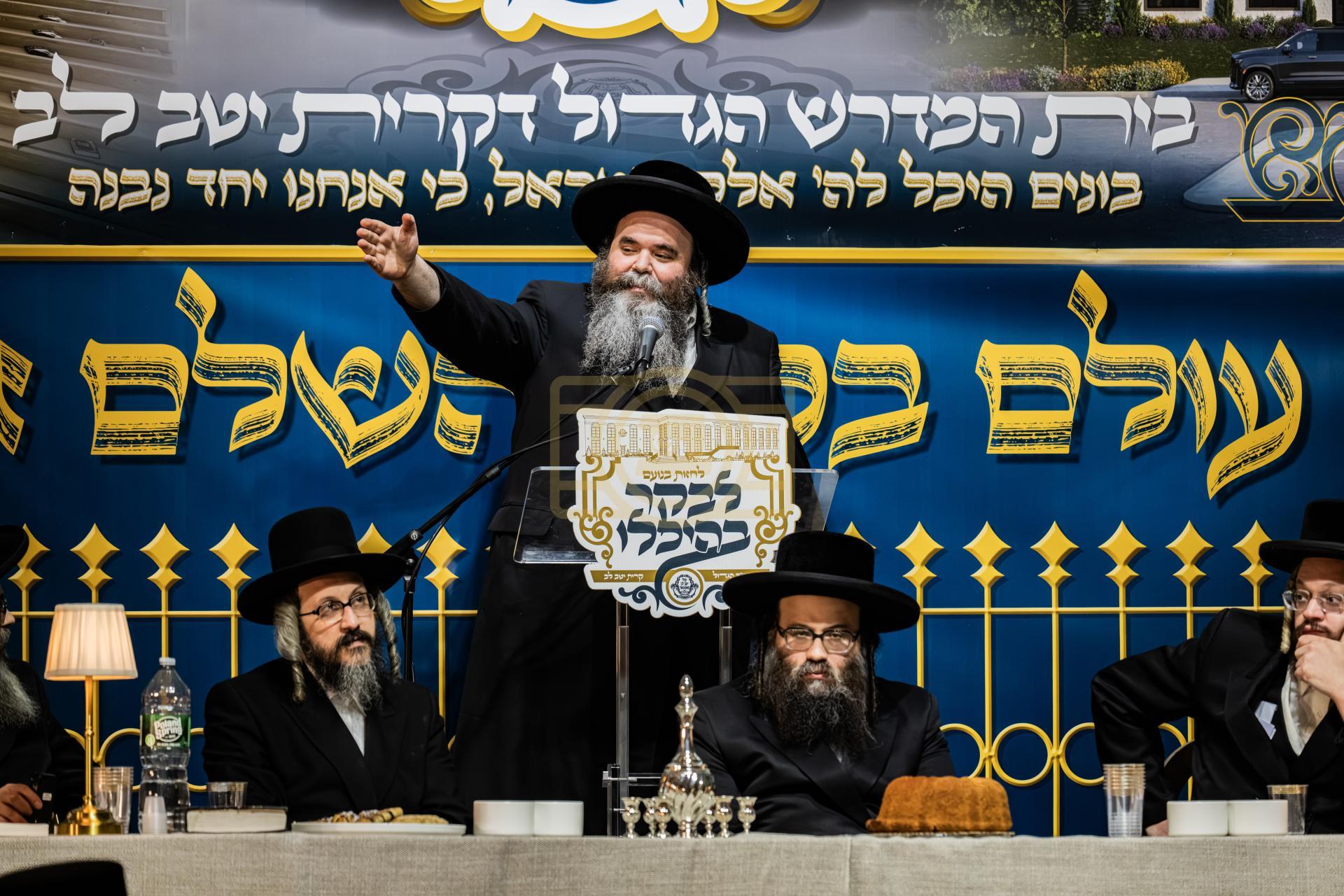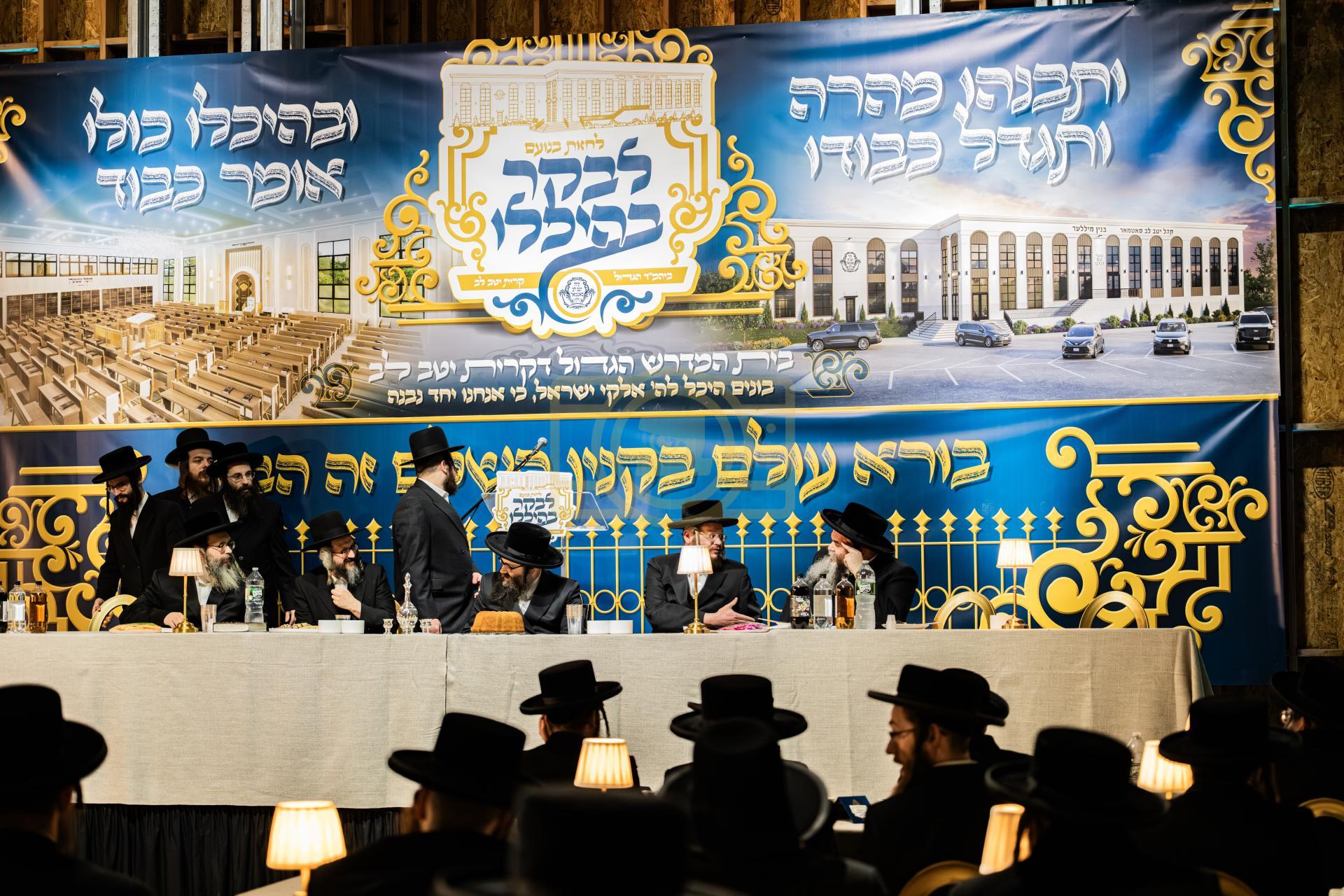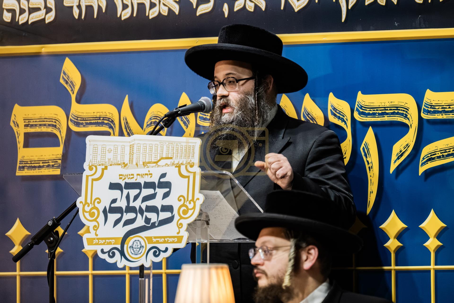 מעמד פארגעקומען דעם פארגאנגענעם דינסטאג פרשת תצוה העעל"ט בתוככי "היכל בית המדרש החדש – היכל שטערן" יחד כל תושבי העיר רבנן ותלמידיהון, ווען על פני בימת הכבוד זעט זיך אן די חשובע רבני ודייני העיר שליט"א ובראשם הגה"צ אבד"ק שליט"א