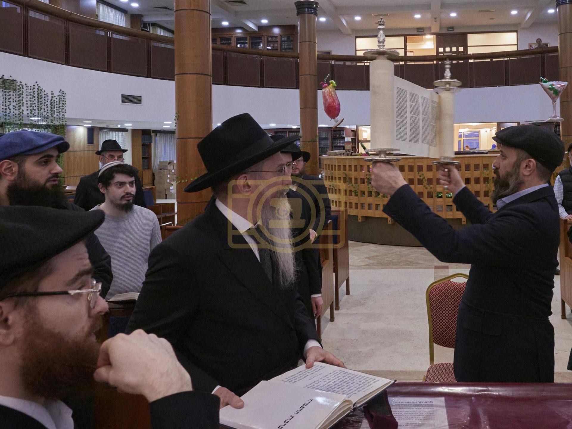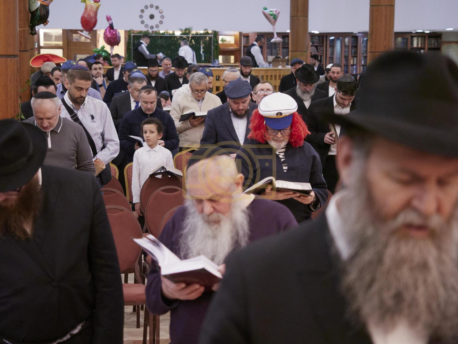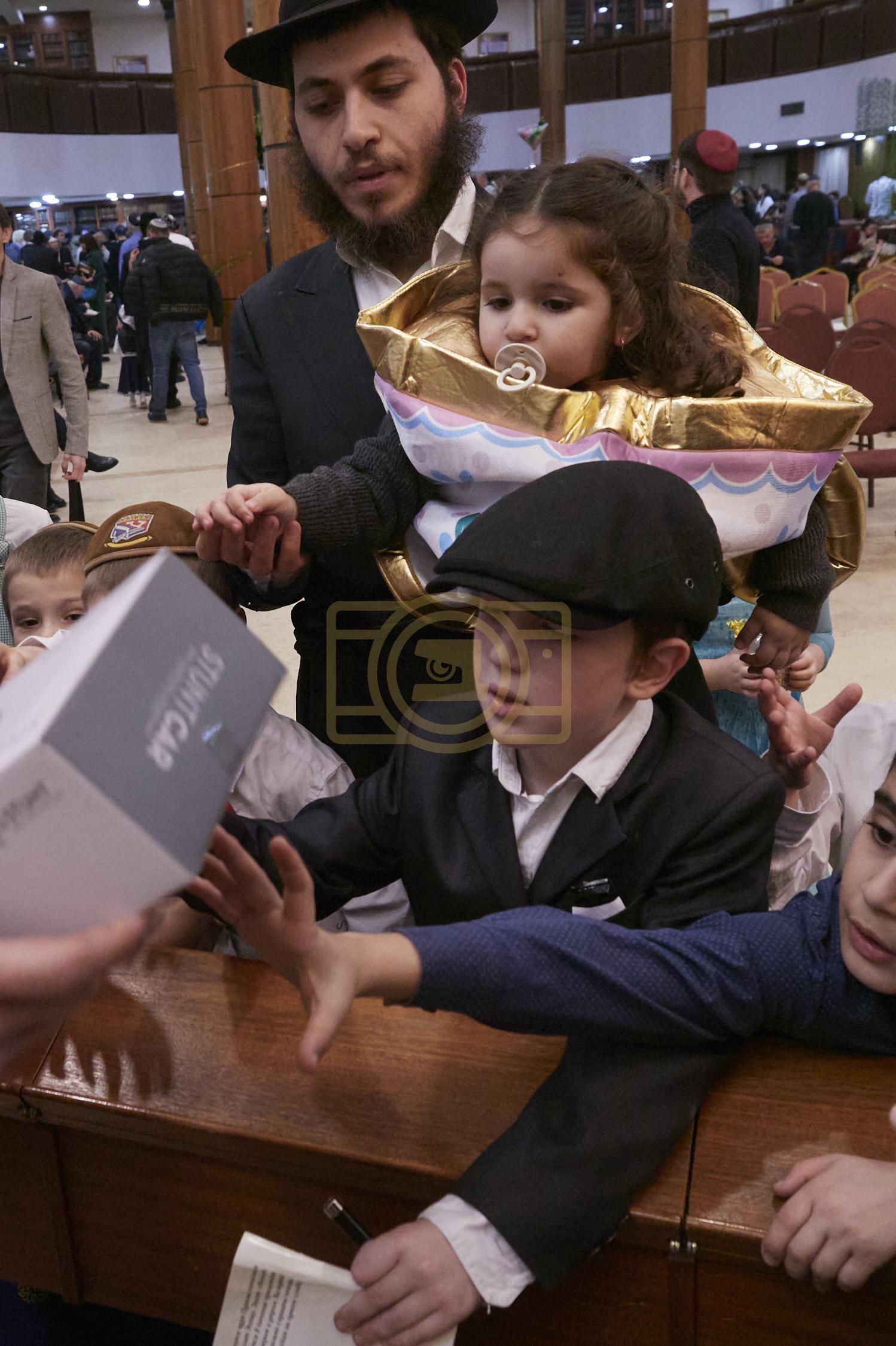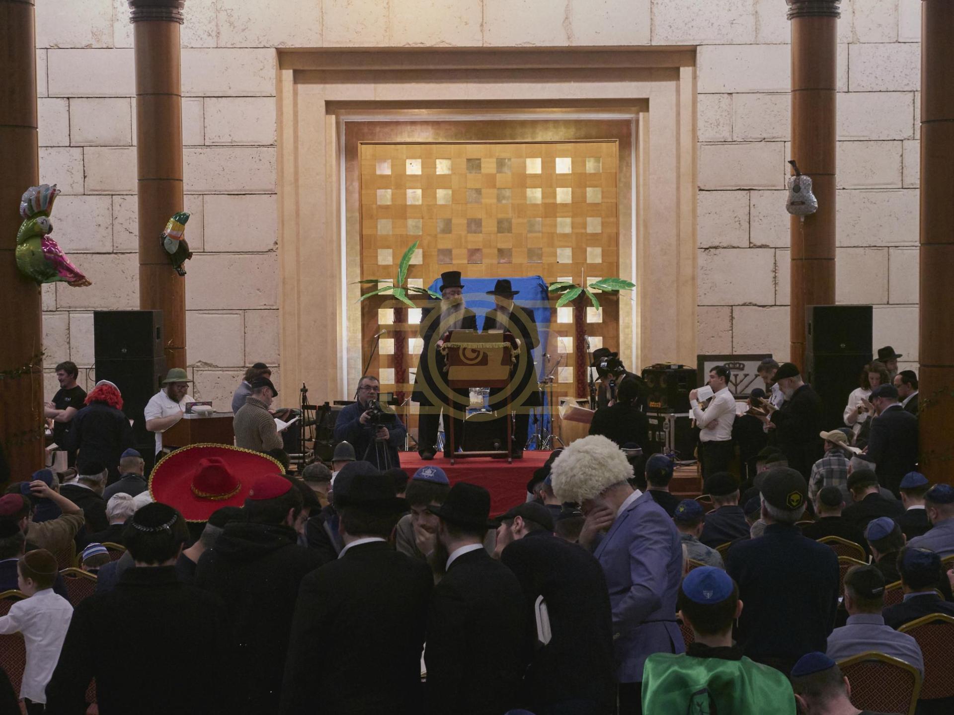 - רבינו שליט"א ביים סעודת משתה היין פורים נאכמיטאג אין ביהמ"ד הגדול. |
