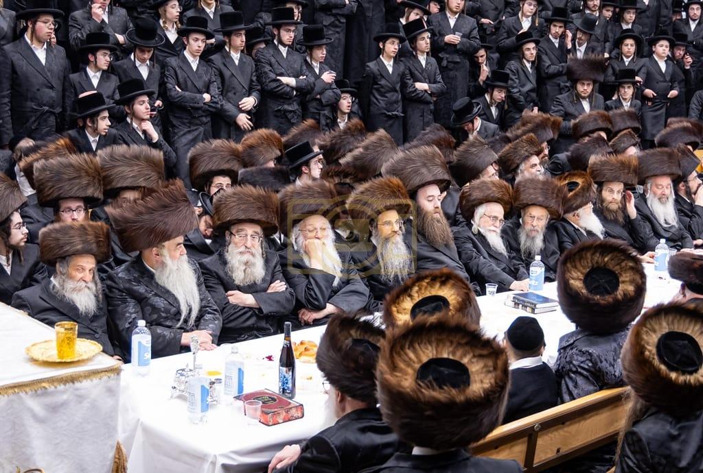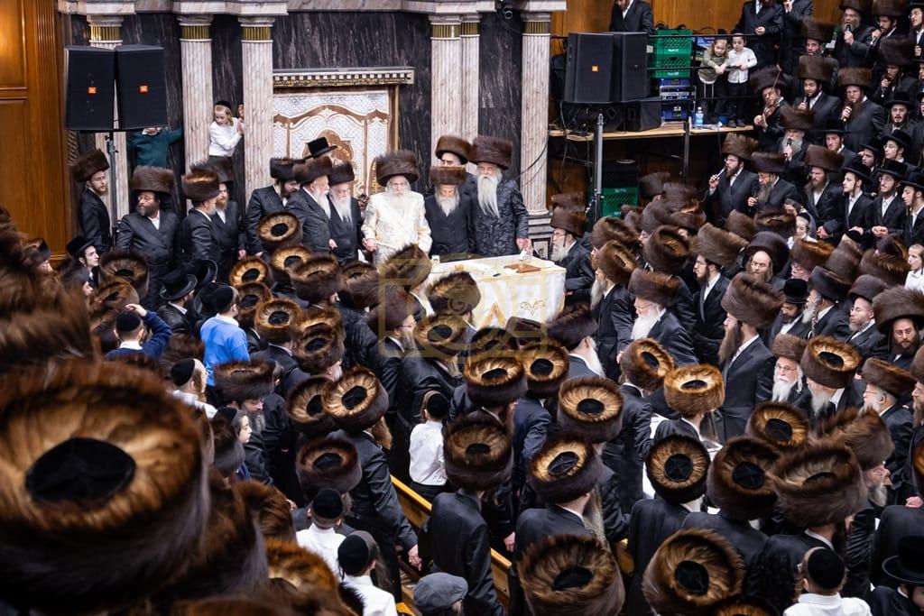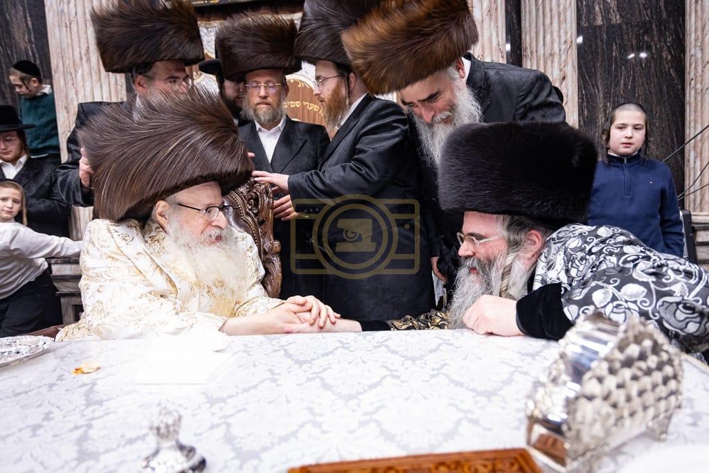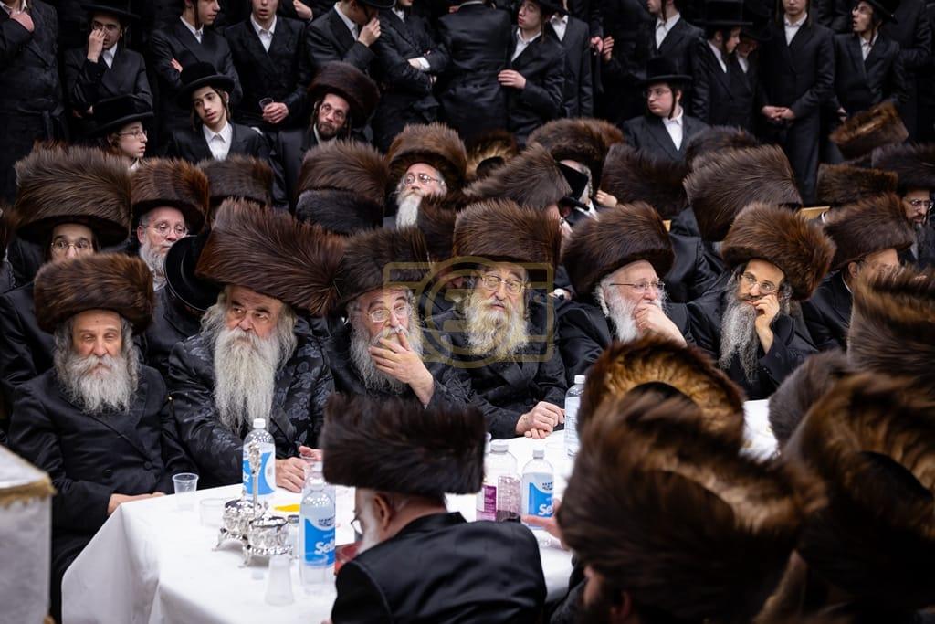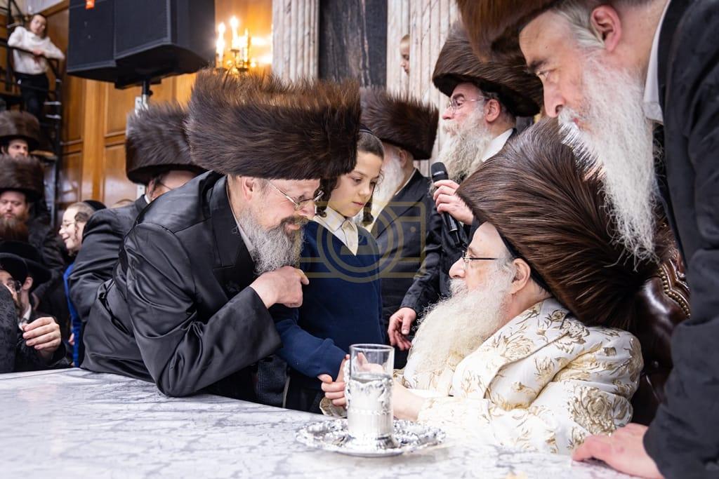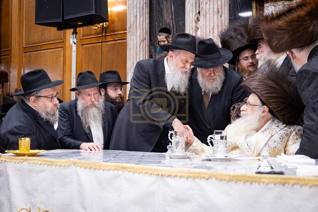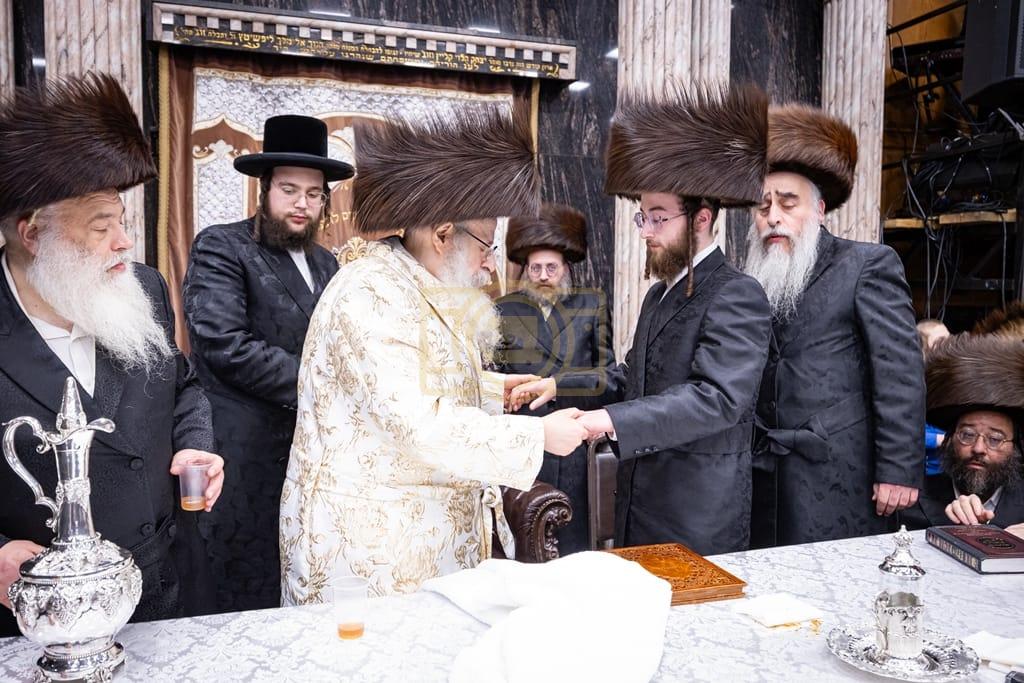 - דב''ק ביים סעודת ברית פון נכד רבינו בן הנולד אצל הרב הערשל מייזליש שליט"א בן חדב"ן הגה"צ רב דביהמ''ד ישמח משה שליט"א, פארגעקומען בהיכל המתיבתא סניף קדושת יואל. | 🌴 בצל הקודש סאטמאר 🌴