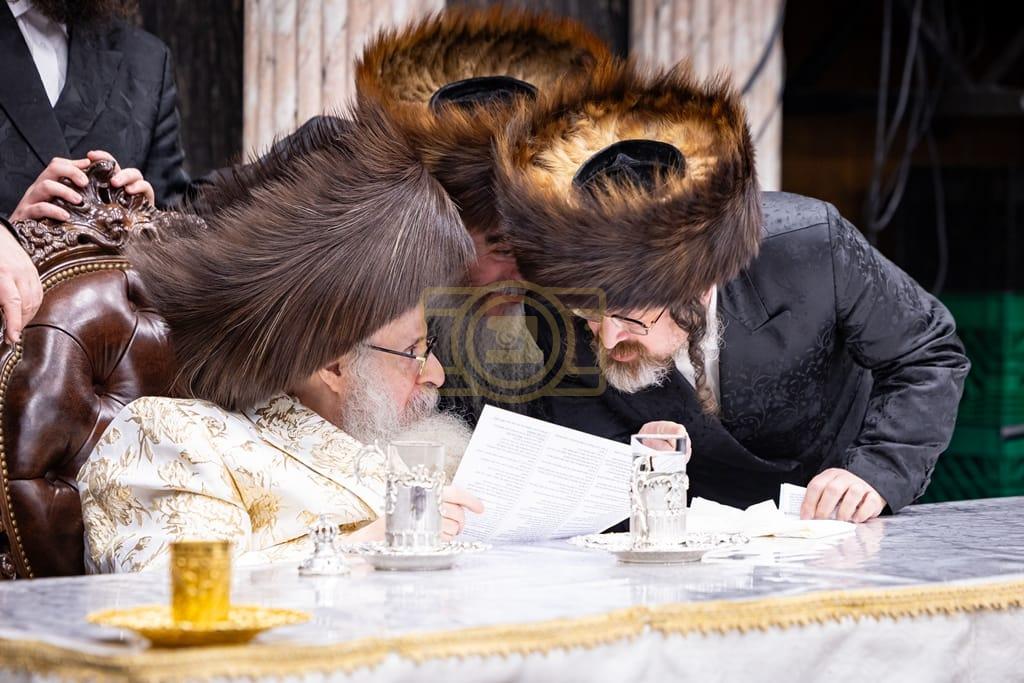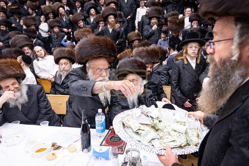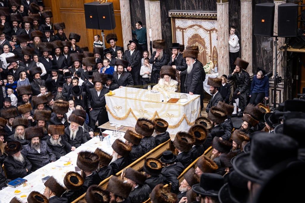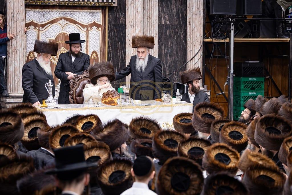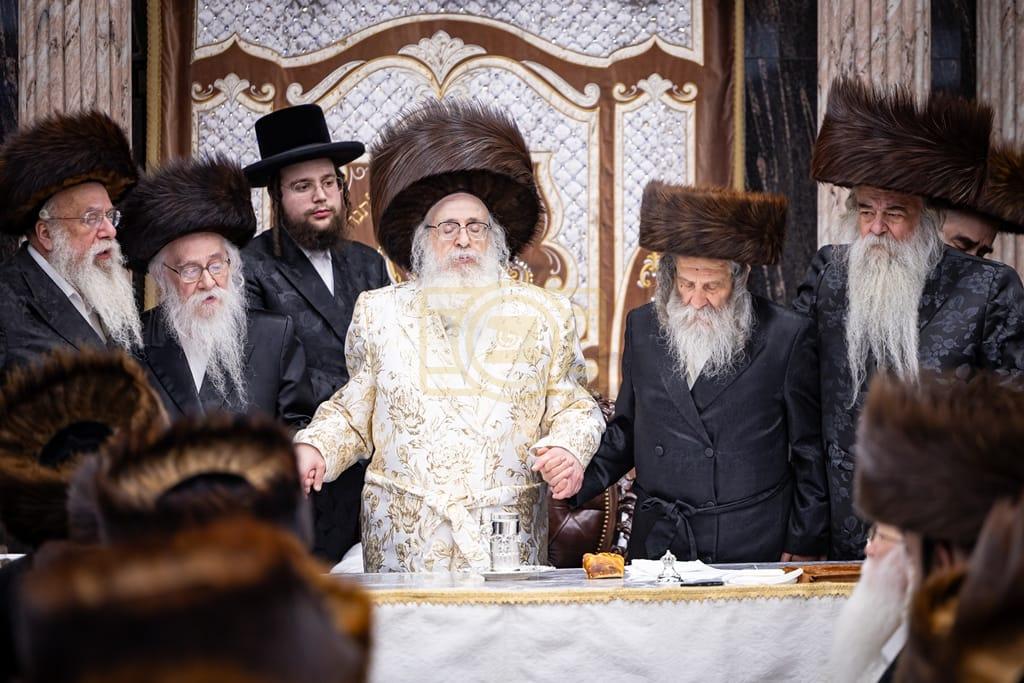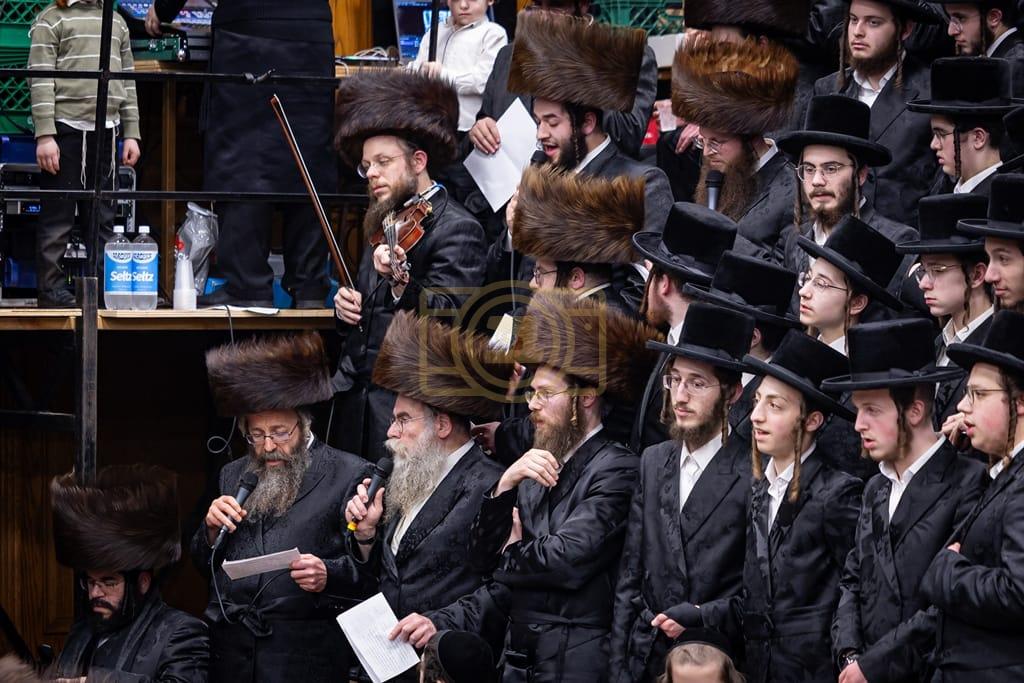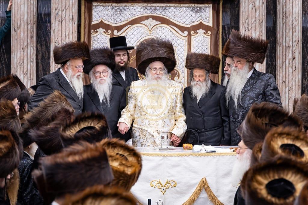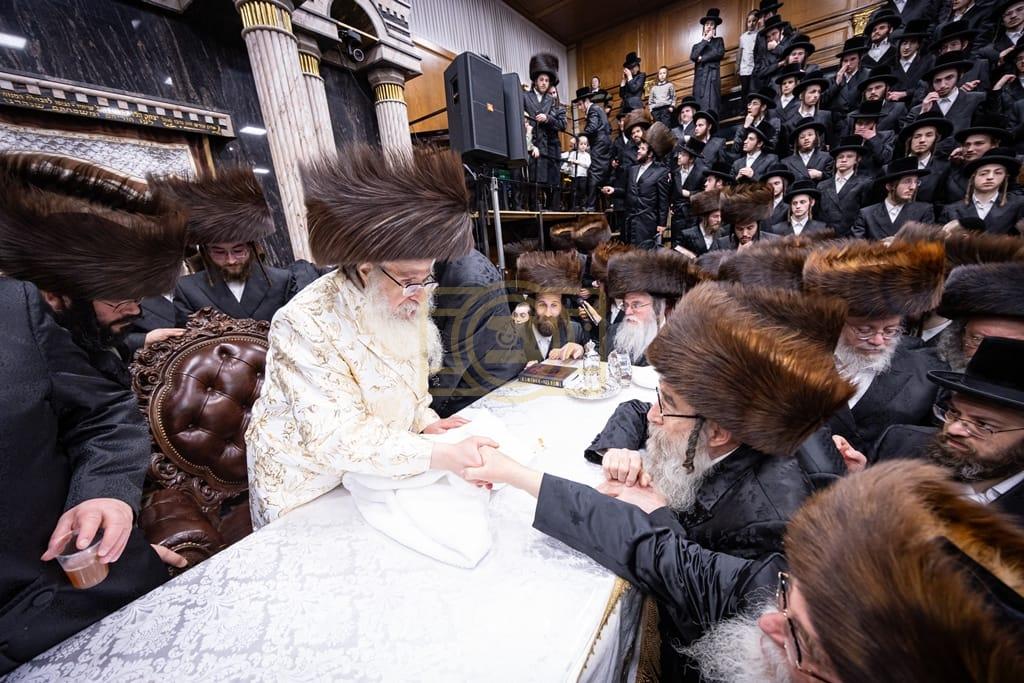 - דב''ק ביים סעודת ברית פון נכד רבינו בן הנולד אצל הרב הערשל מייזליש שליט"א בן חדב"ן הגה"צ רב דביהמ''ד ישמח משה שליט"א, פארגעקומען בהיכל המתיבתא סניף קדושת יואל. | 🌴 בצל הקודש סאטמאר 🌴