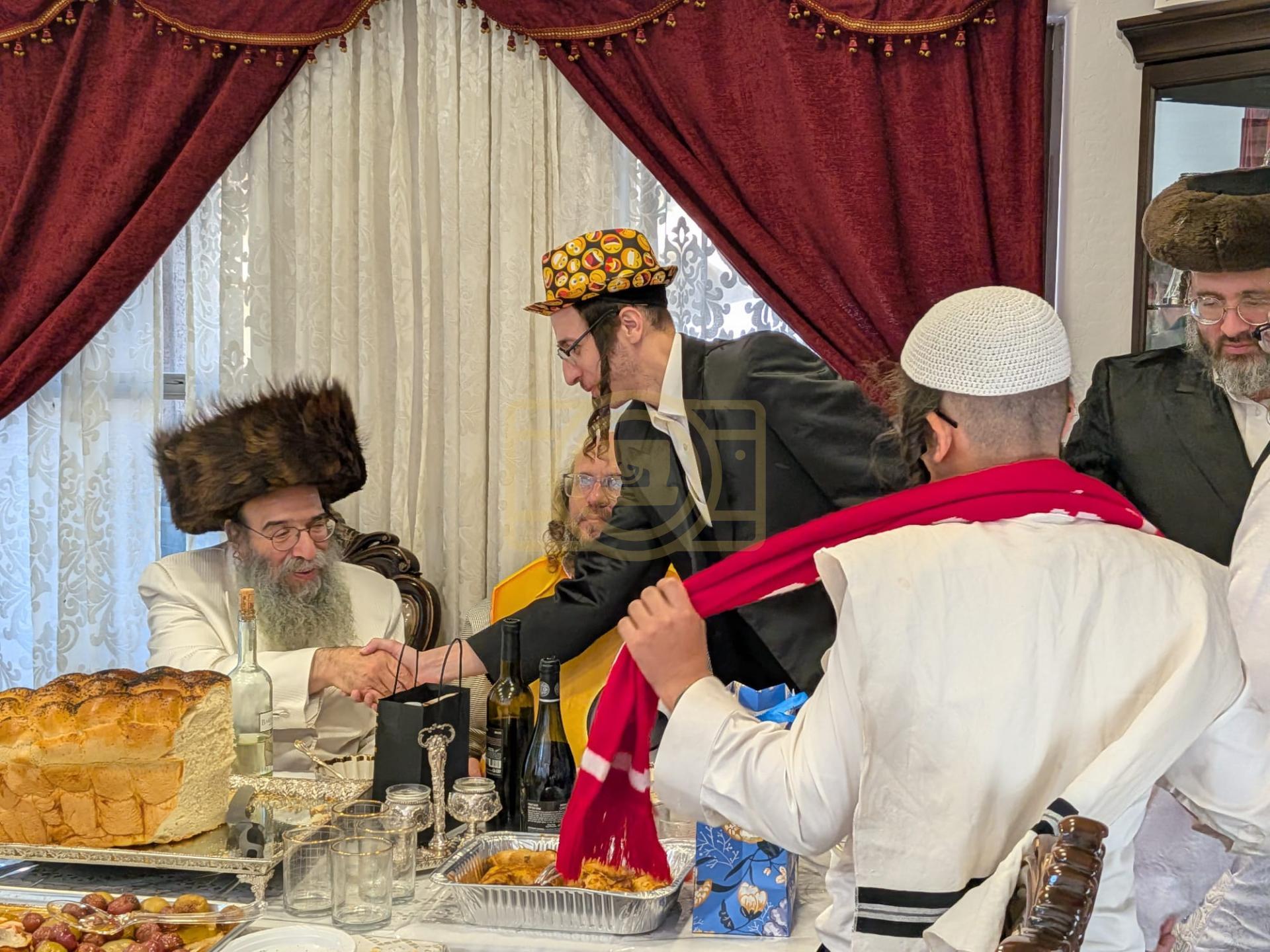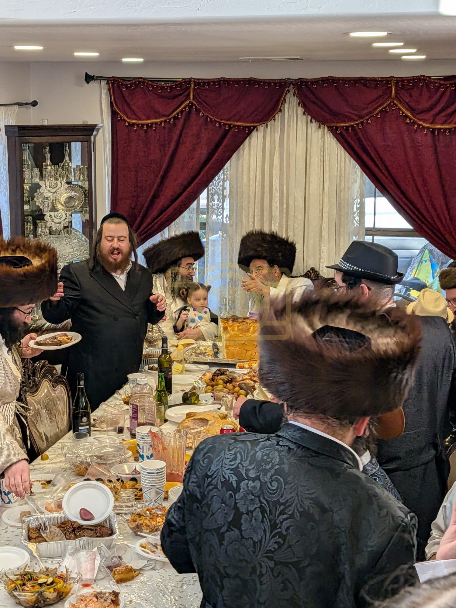 - דב''ק ביים סעודת ברית פון נכד רבינו בן הנולד אצל הרב הערשל מייזליש שליט"א בן חדב"ן הגה"צ רב דביהמ''ד ישמח משה שליט"א, פארגעקומען בהיכל המתיבתא סניף קדושת יואל. | 🌴 בצל הקודש סאטמאר 🌴