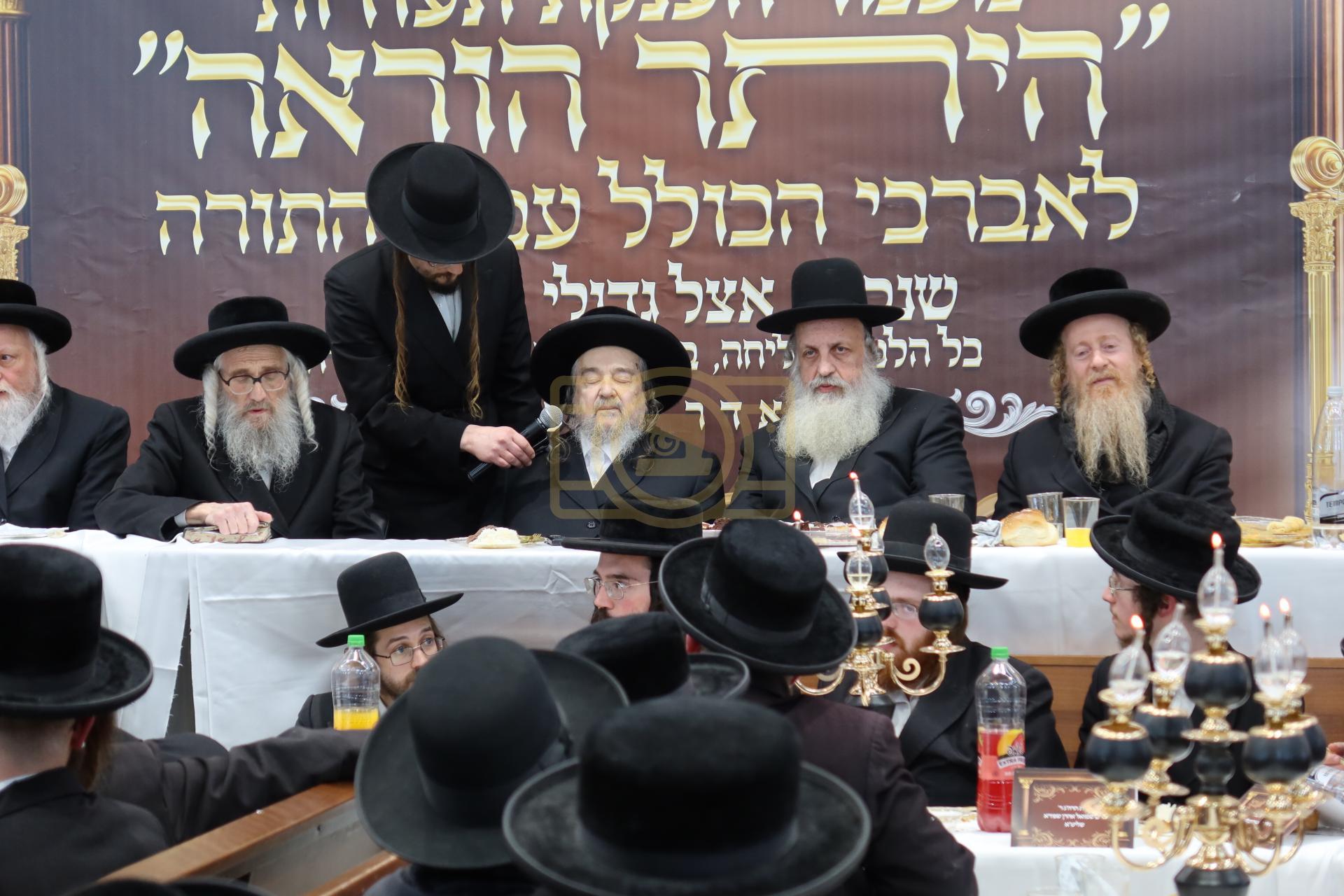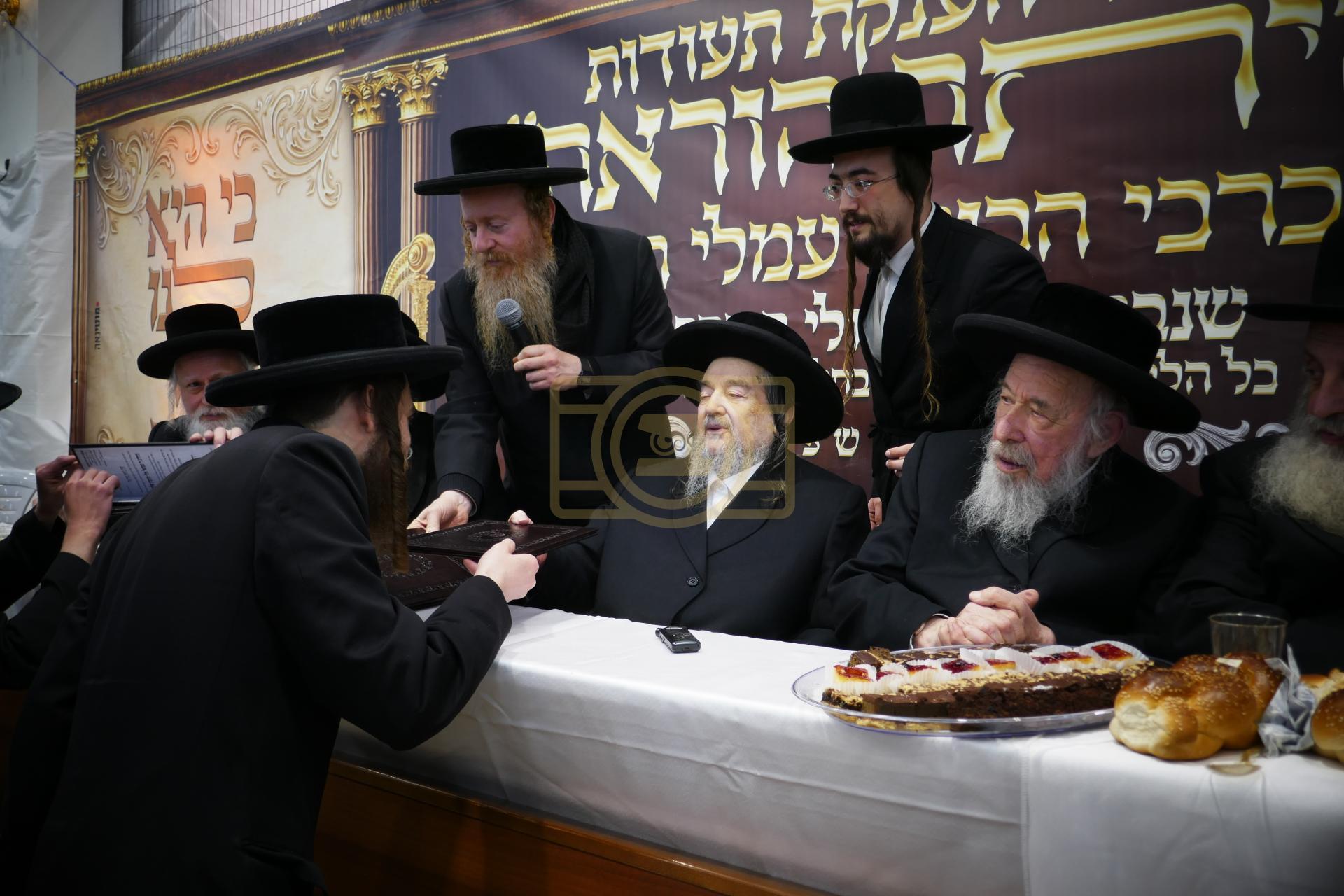 הרה"ק רבי יעקב מאיר שעכטער שליט"א אצל מעמד הענקת תעודות היתר הוראה לאברכי הכולל עמלי התורה