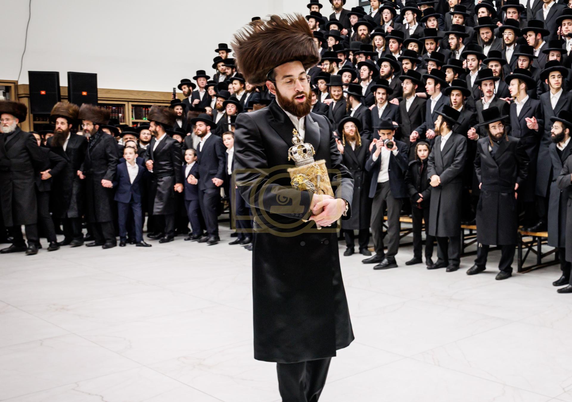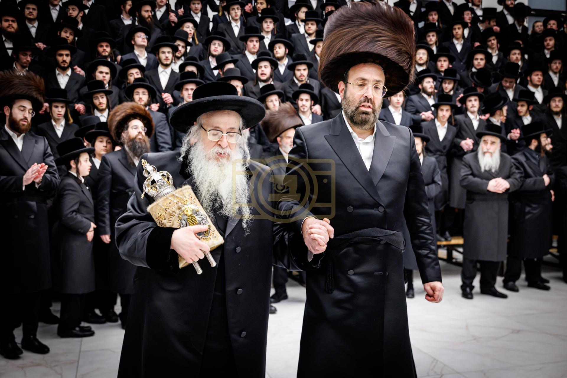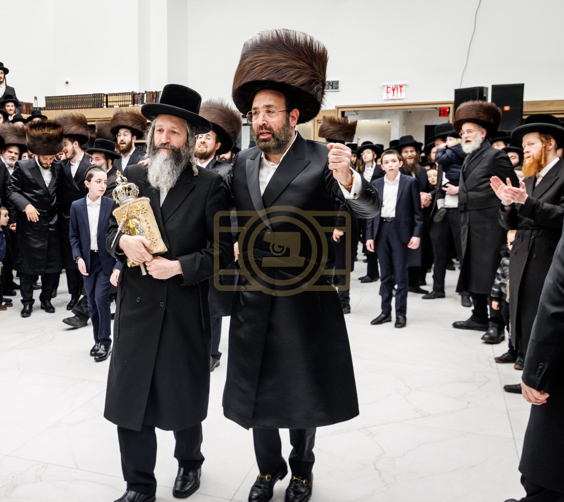 הכנסת ספר תורה צום היכל המתיבתא אין ישיבה גדולה צאנז קלויזענבורג אין בארא פארק אריינגעגעבן דורך משפחת גראס בראשות כ"ק אדמו"ר מצאנז קלויזענבורג שליט"א