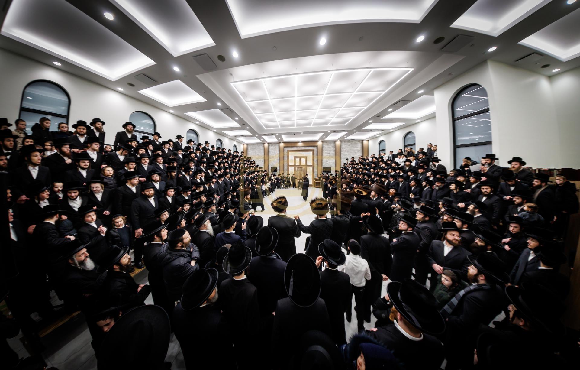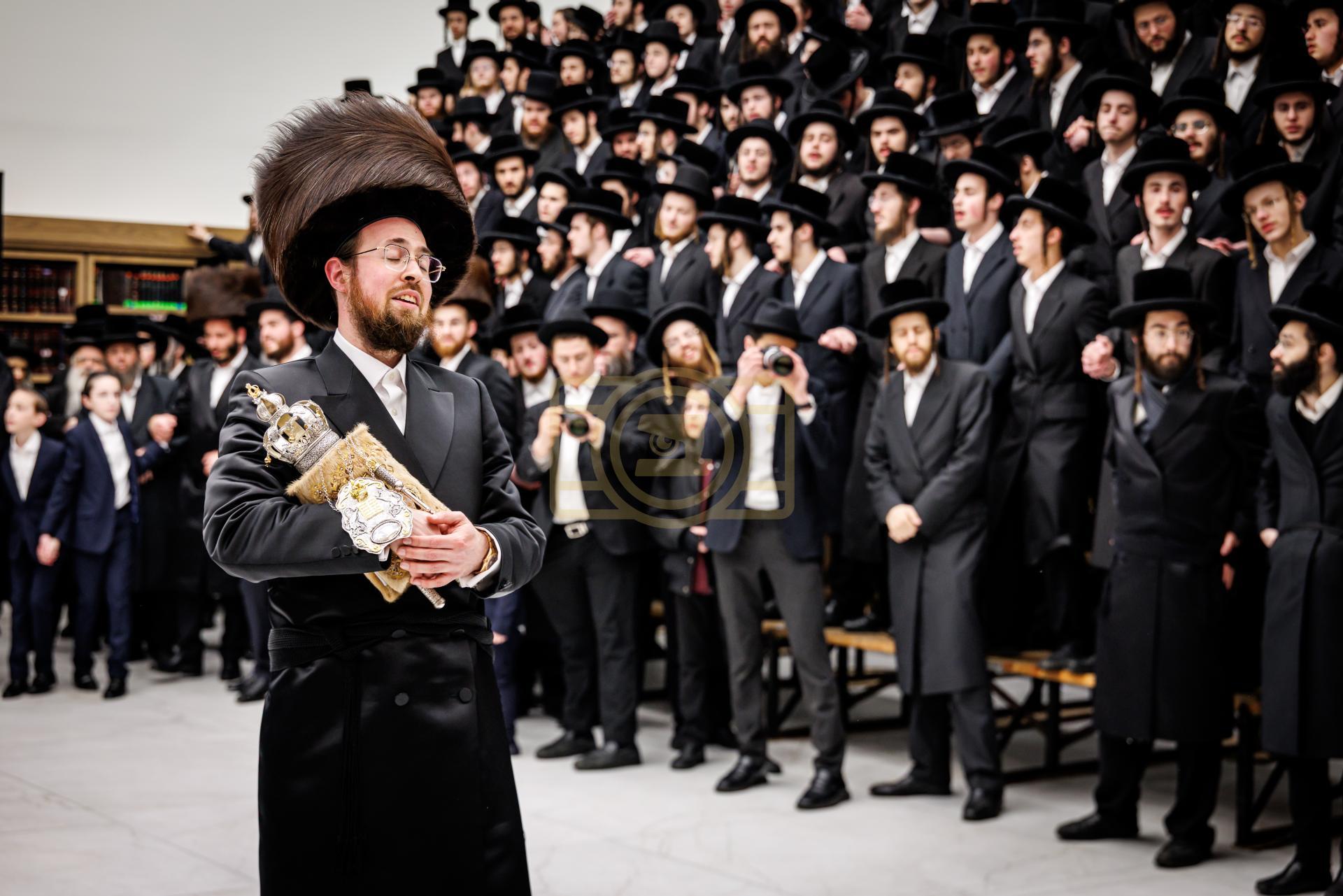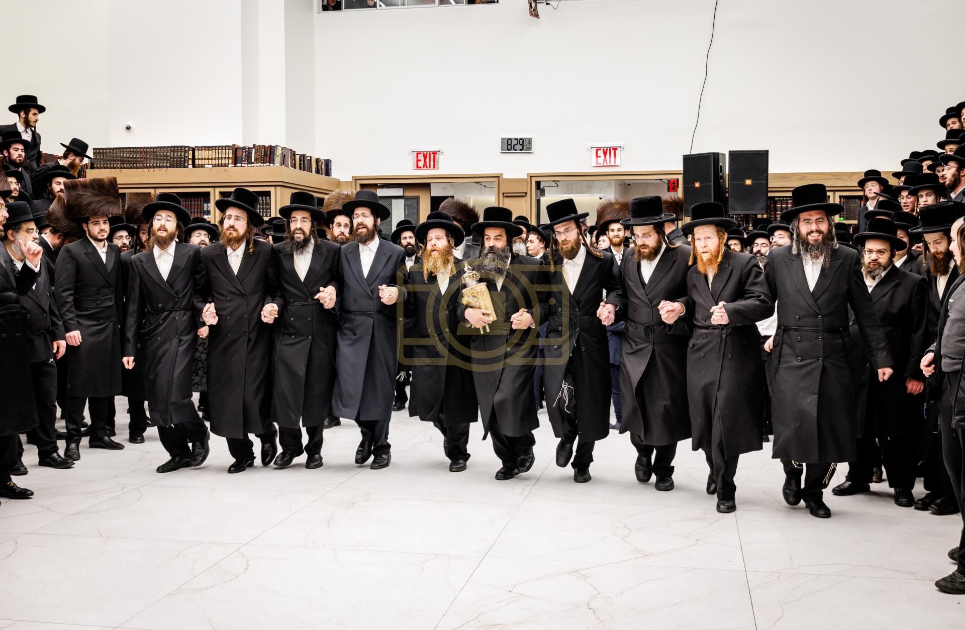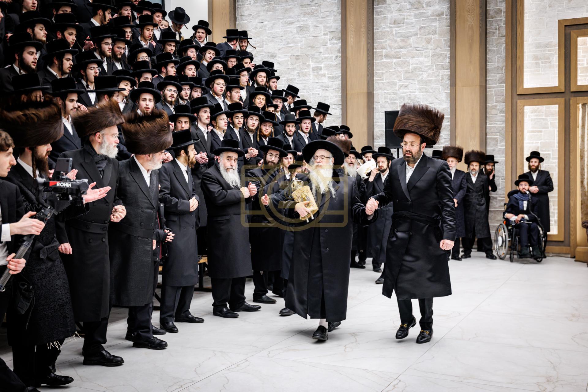 הכנסת ספר תורה צום היכל המתיבתא אין ישיבה גדולה צאנז קלויזענבורג אין בארא פארק אריינגעגעבן דורך משפחת גראס בראשות כ"ק אדמו"ר מצאנז קלויזענבורג שליט"א