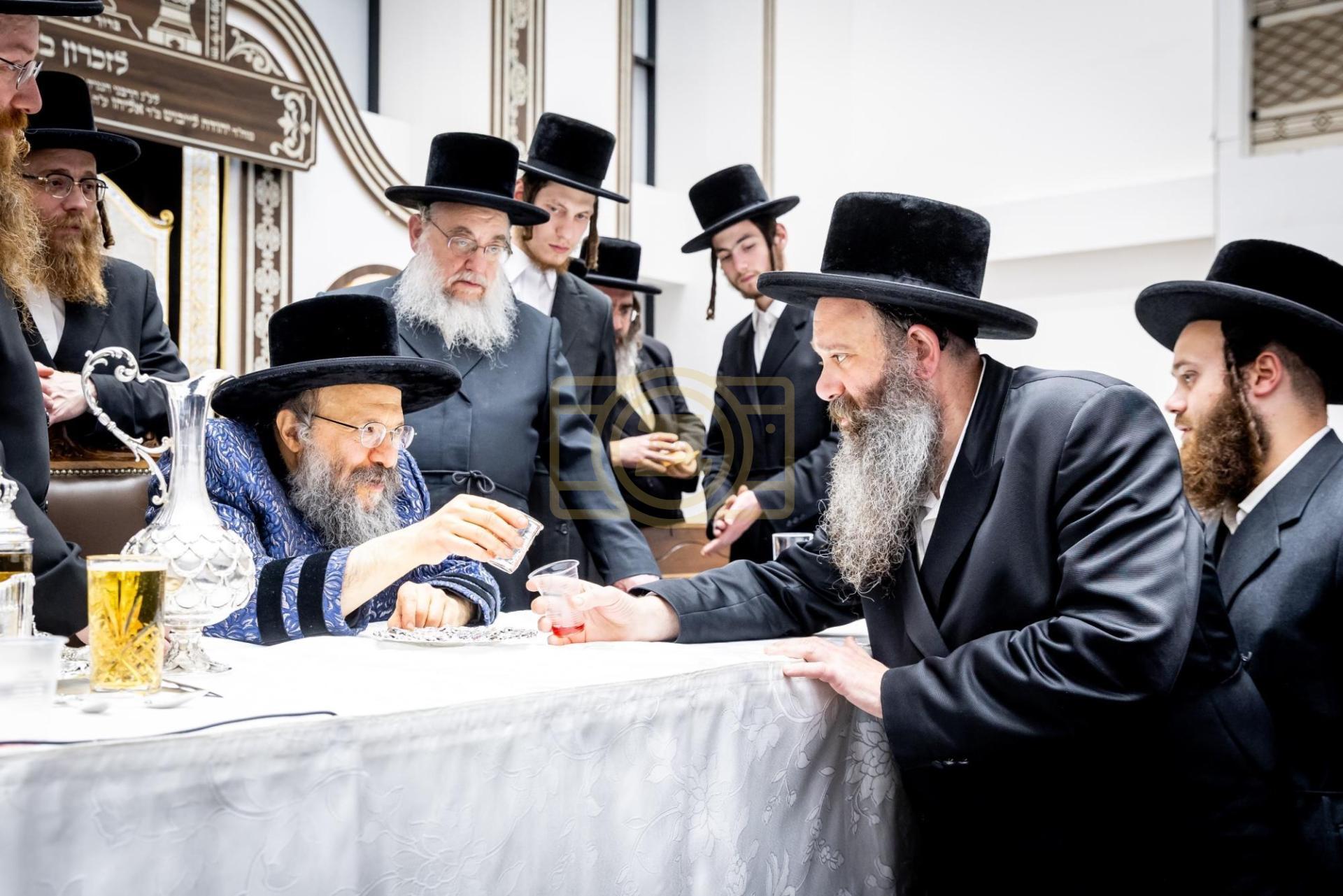 האדמו"ר מברך ברכהמ"ז וחלוקת כוס של ברכה בגביע של בעל הההילולא זי"ע