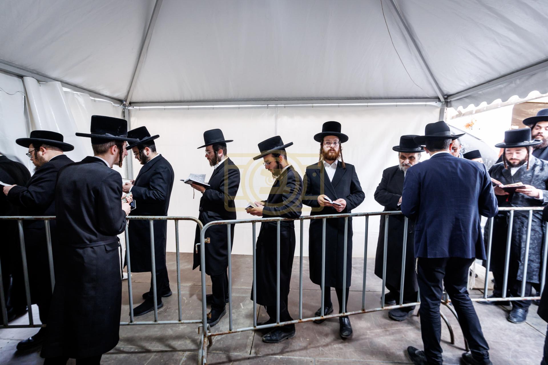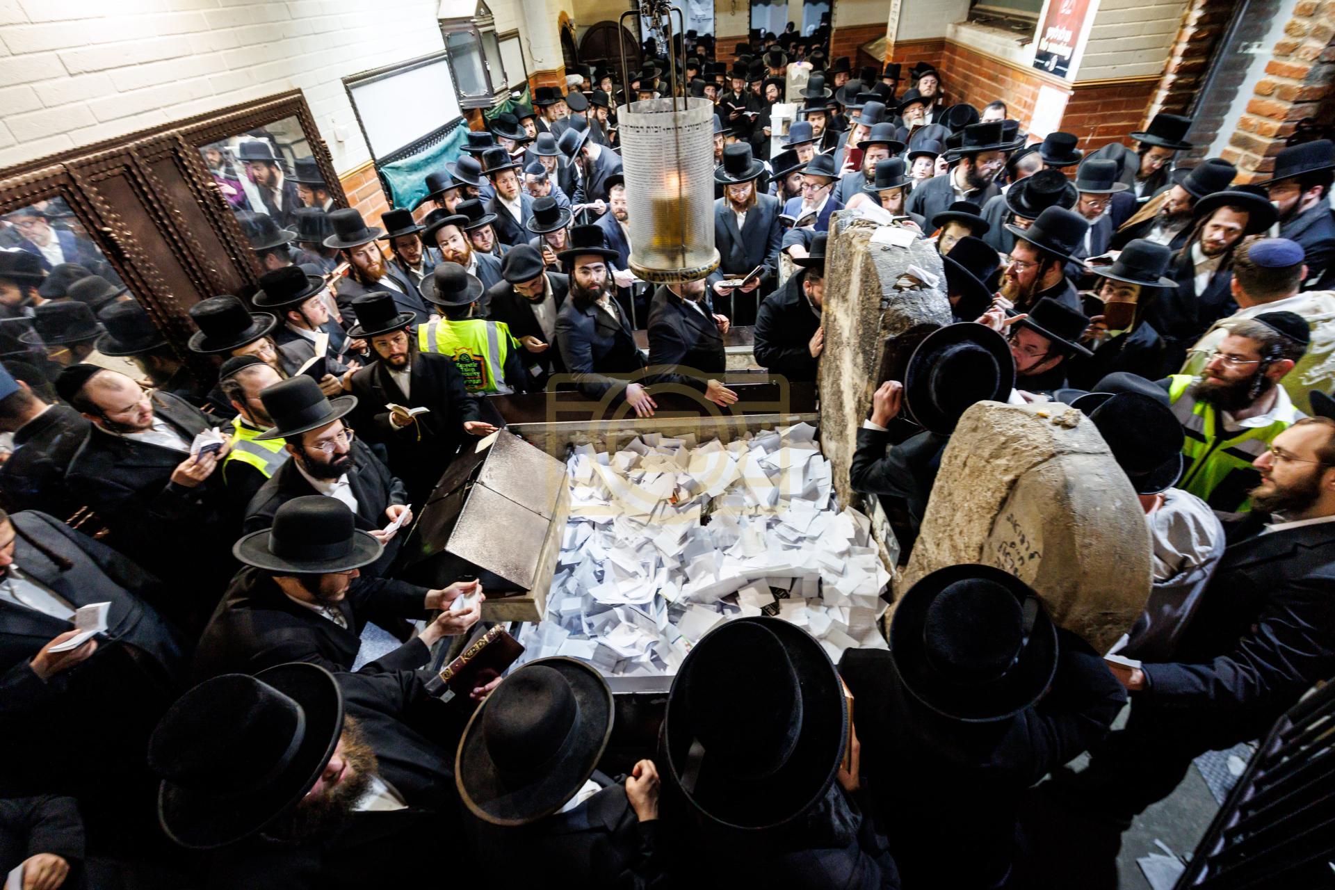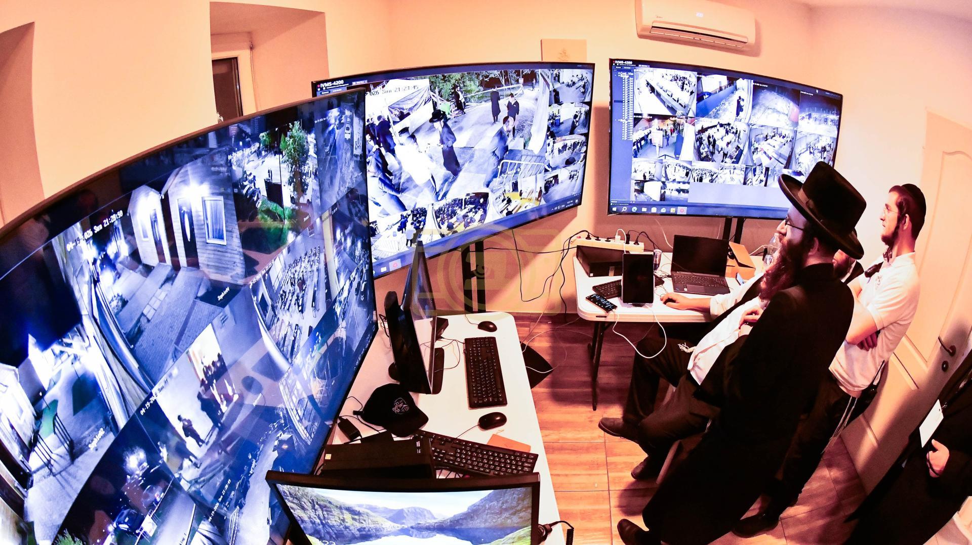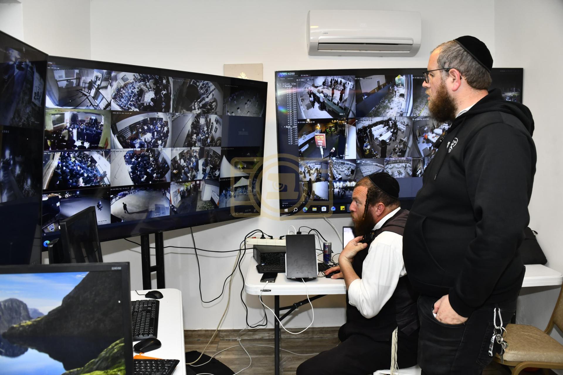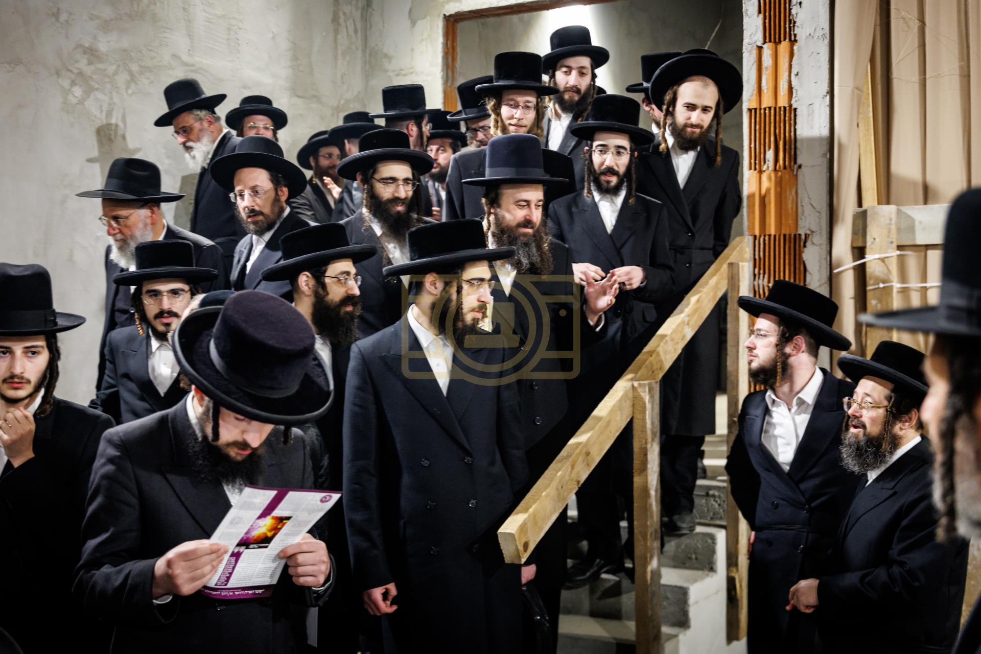 - ירושלים - עסקנים אינאיינעם מיט די פאליציי ביים אויסארבעטן די פלענער פאר די גרויסארטיגע הדלקה פון הגה"צ המשפיע רבי אלימלך בידערמאן. | זעמל