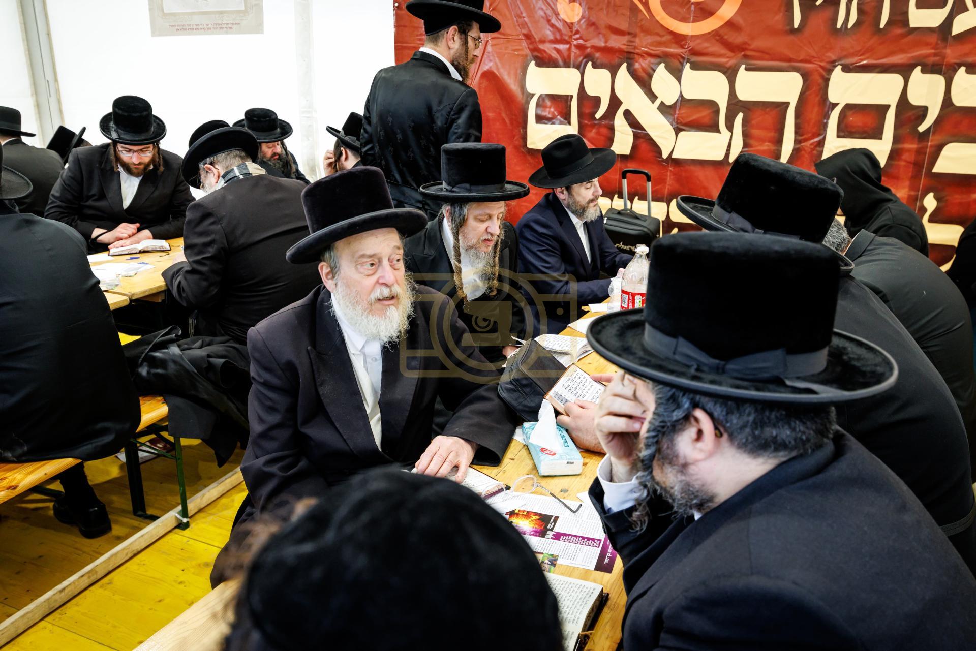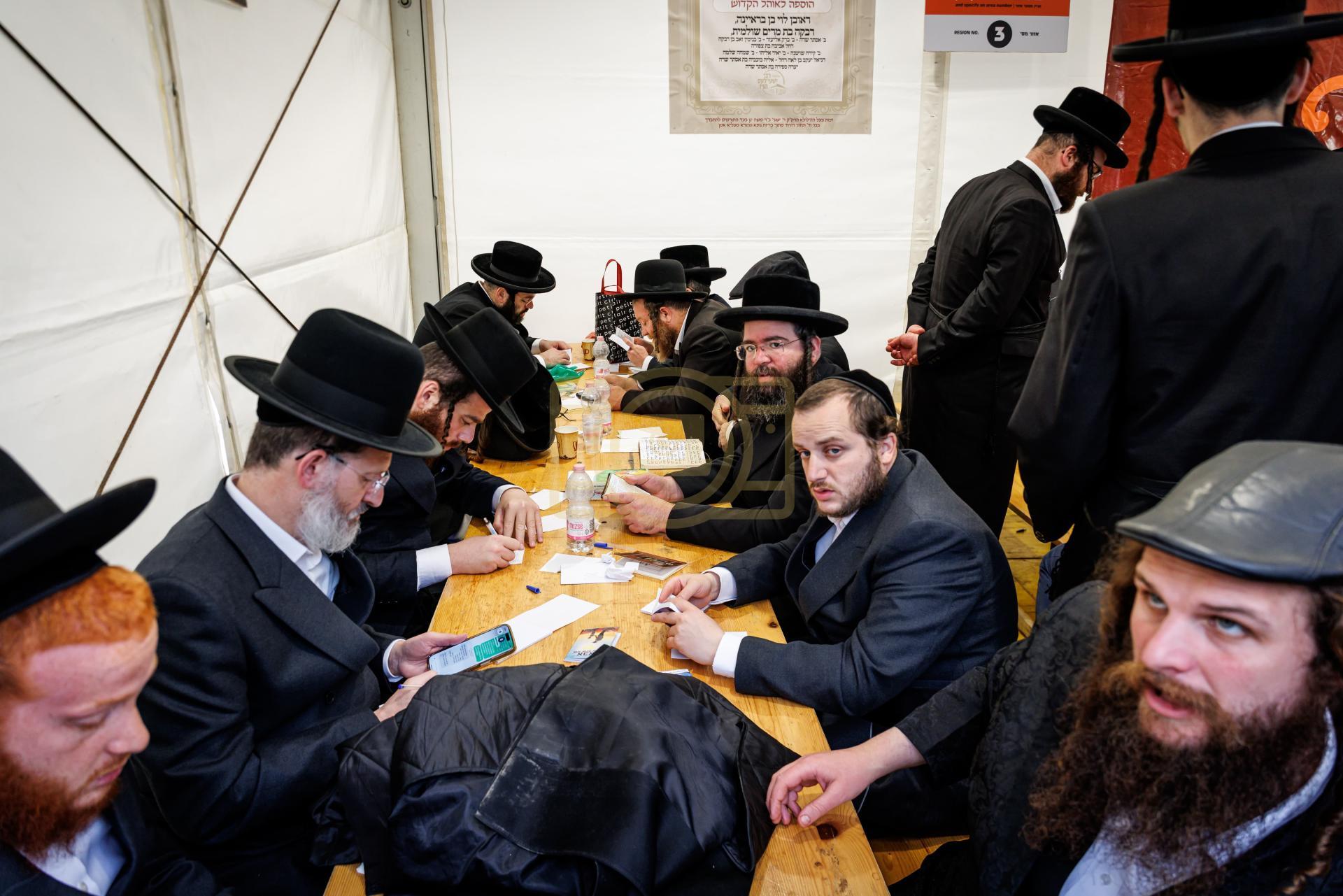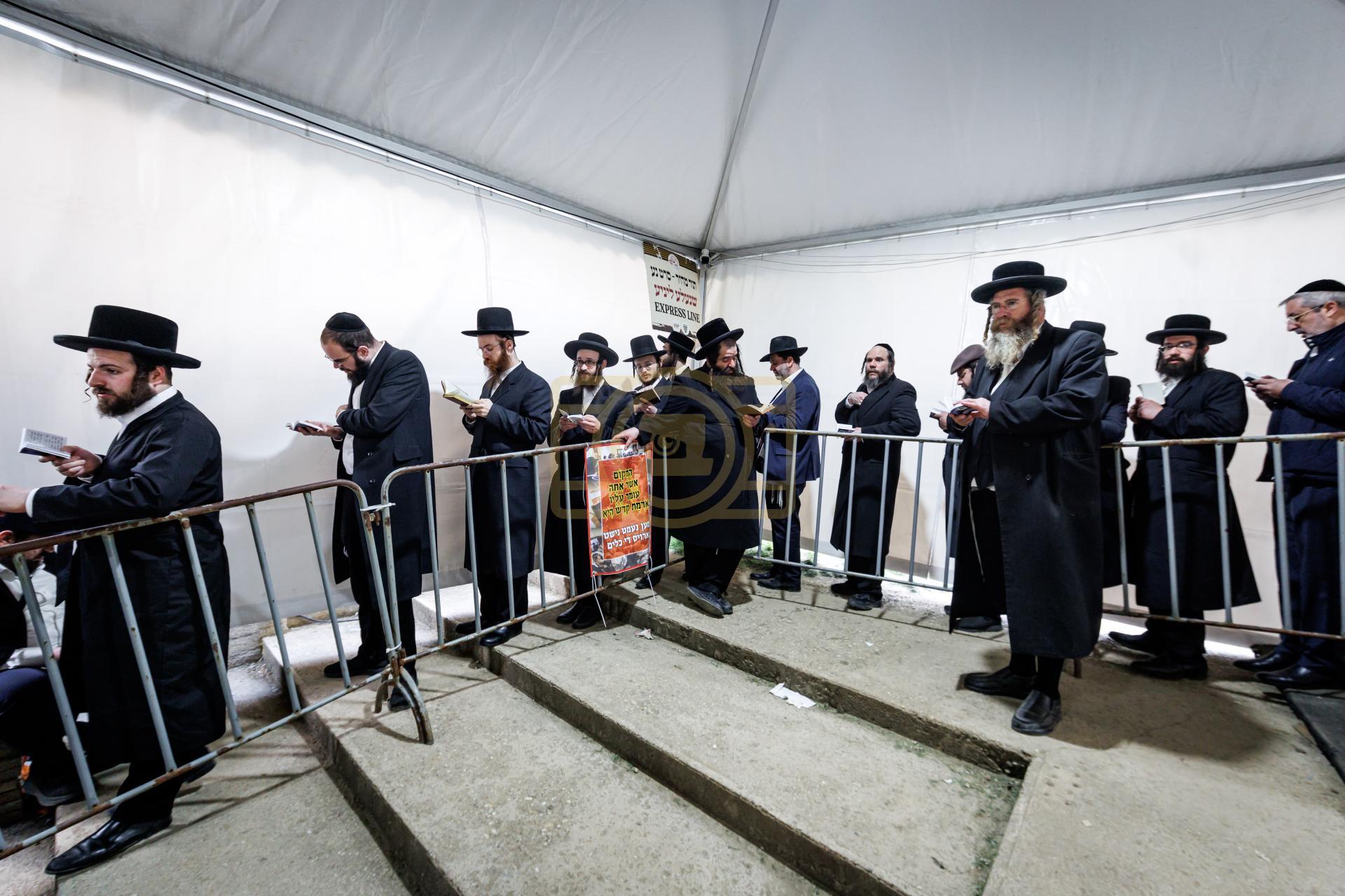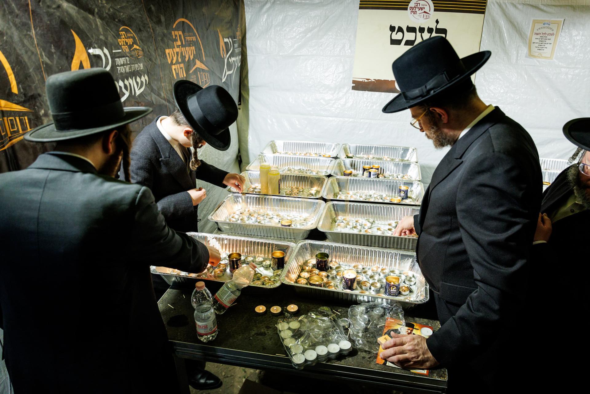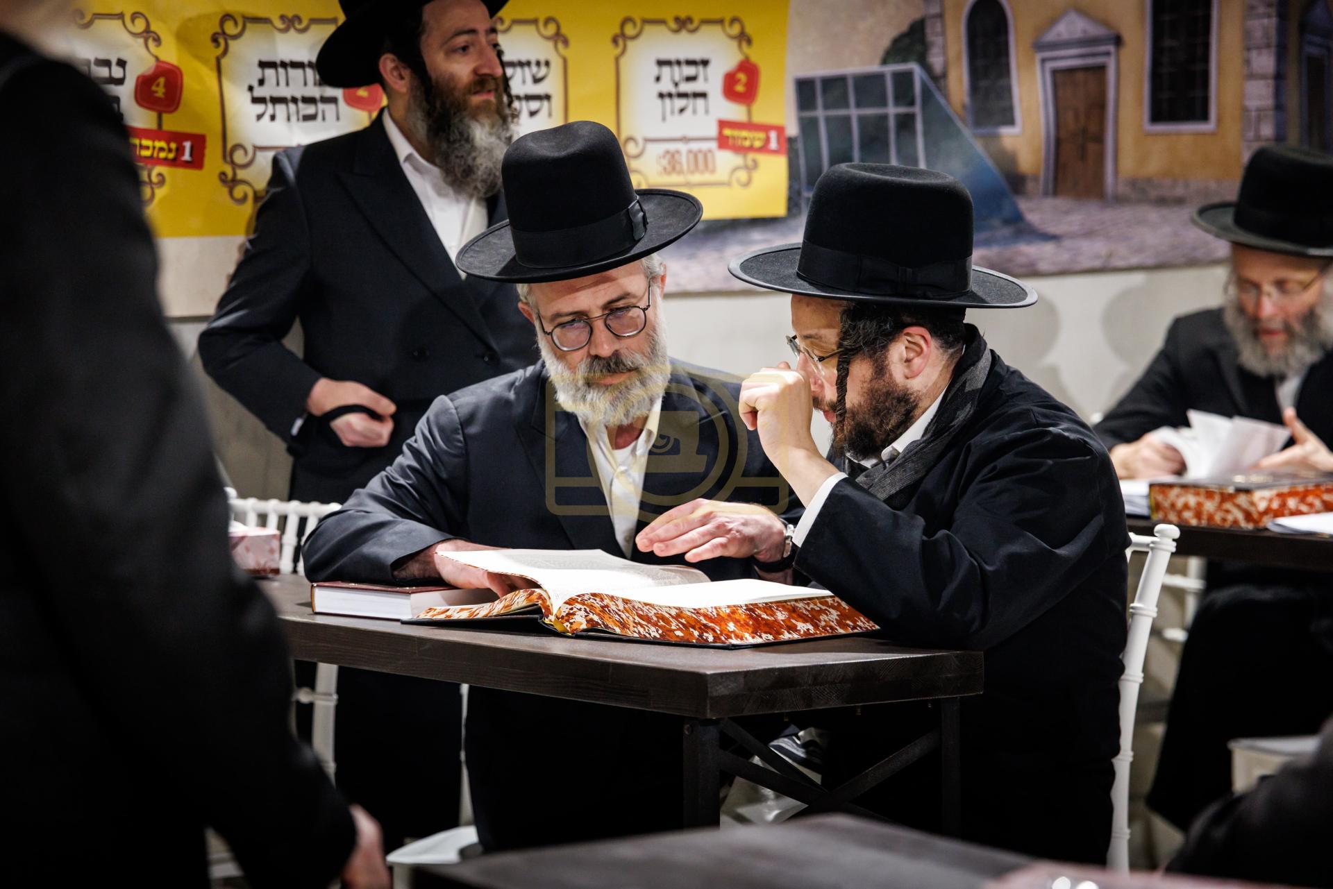 - ירושלים - עסקנים אינאיינעם מיט די פאליציי ביים אויסארבעטן די פלענער פאר די גרויסארטיגע הדלקה פון הגה"צ המשפיע רבי אלימלך בידערמאן. | זעמל