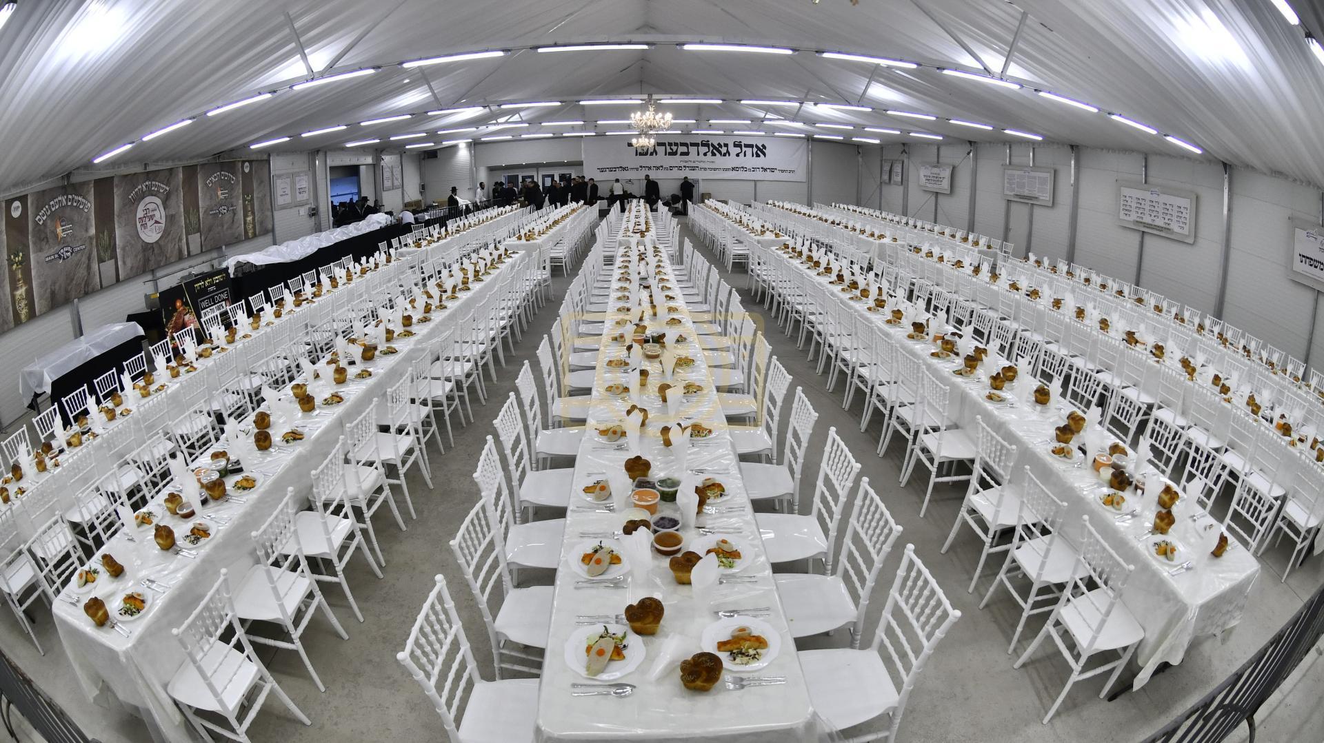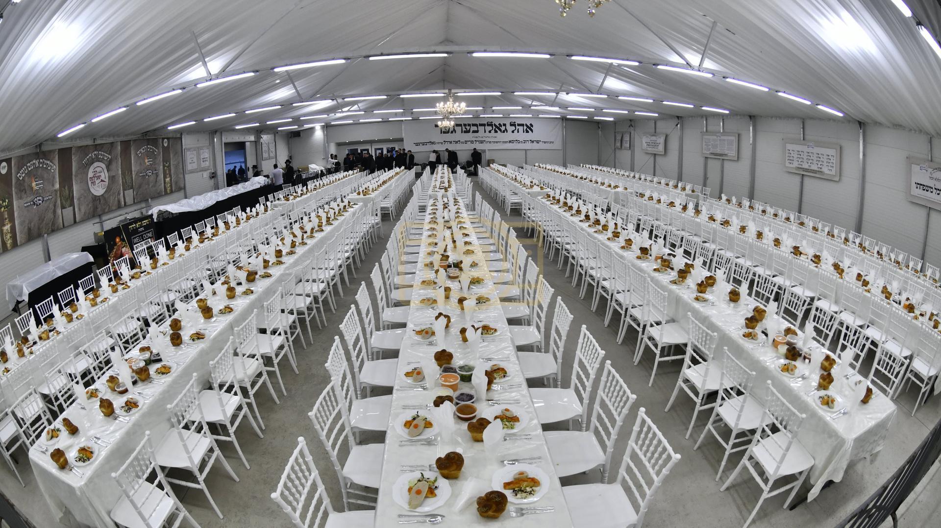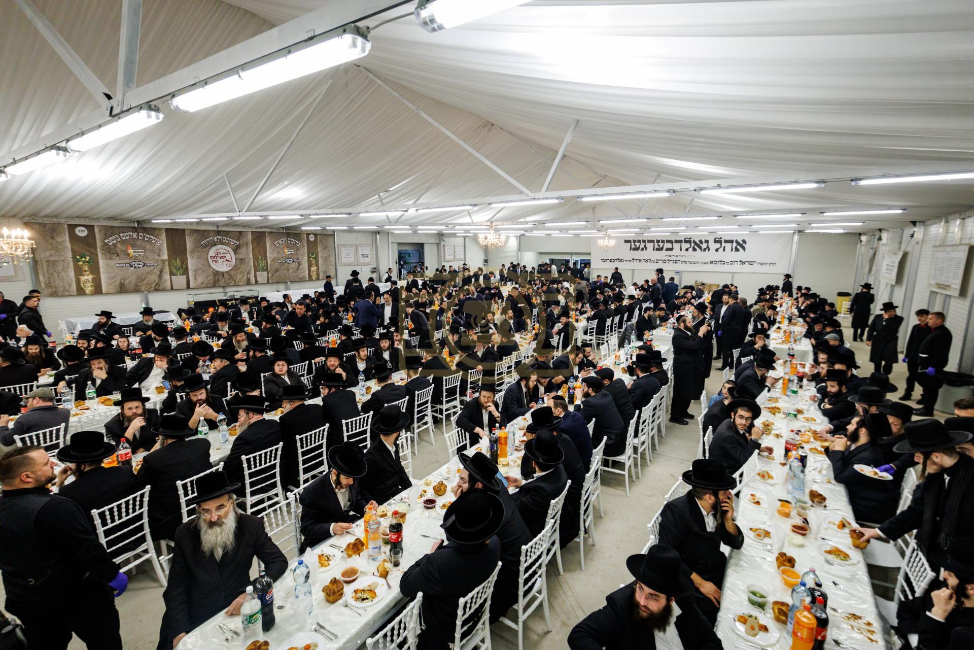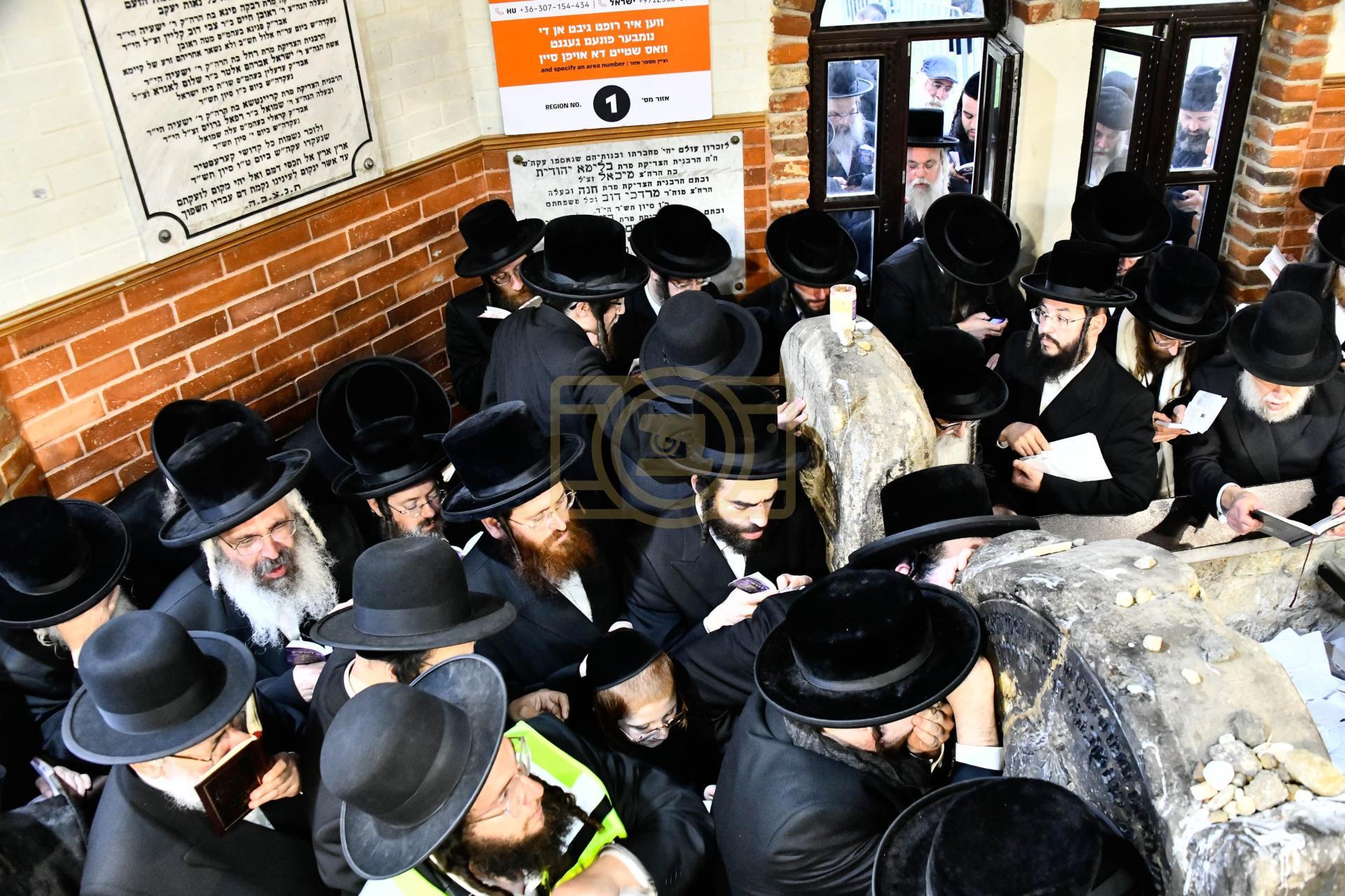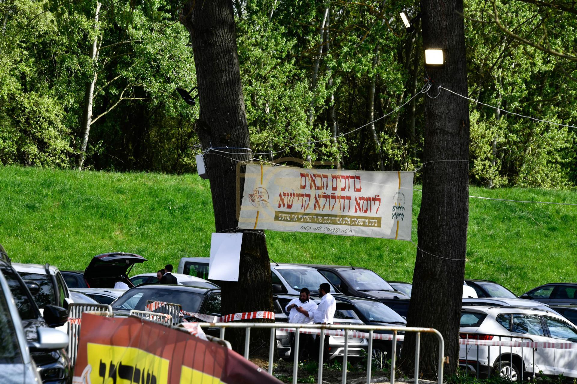 - ירושלים - עסקנים אינאיינעם מיט די פאליציי ביים אויסארבעטן די פלענער פאר די גרויסארטיגע הדלקה פון הגה"צ המשפיע רבי אלימלך בידערמאן. | זעמל