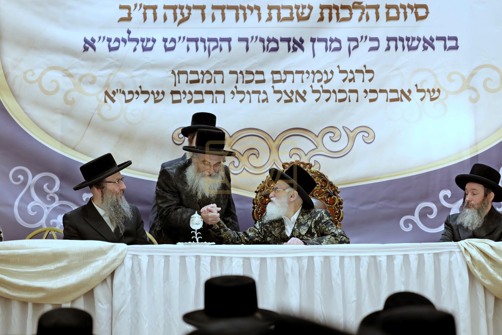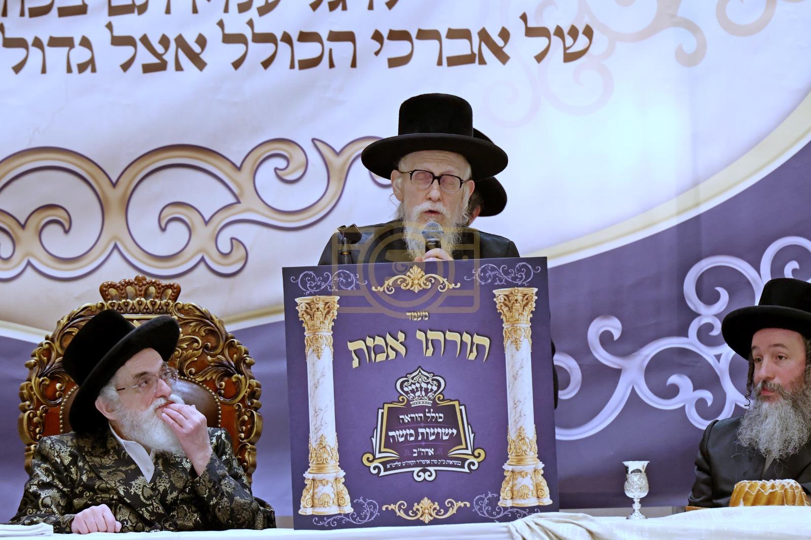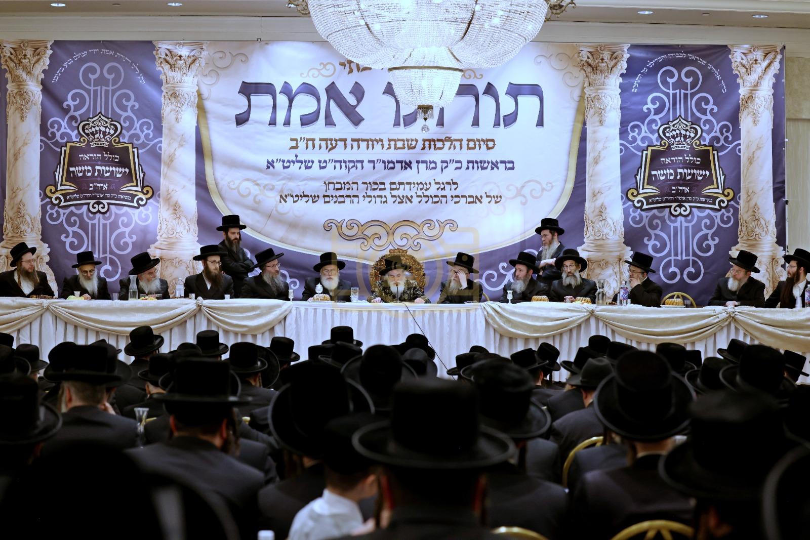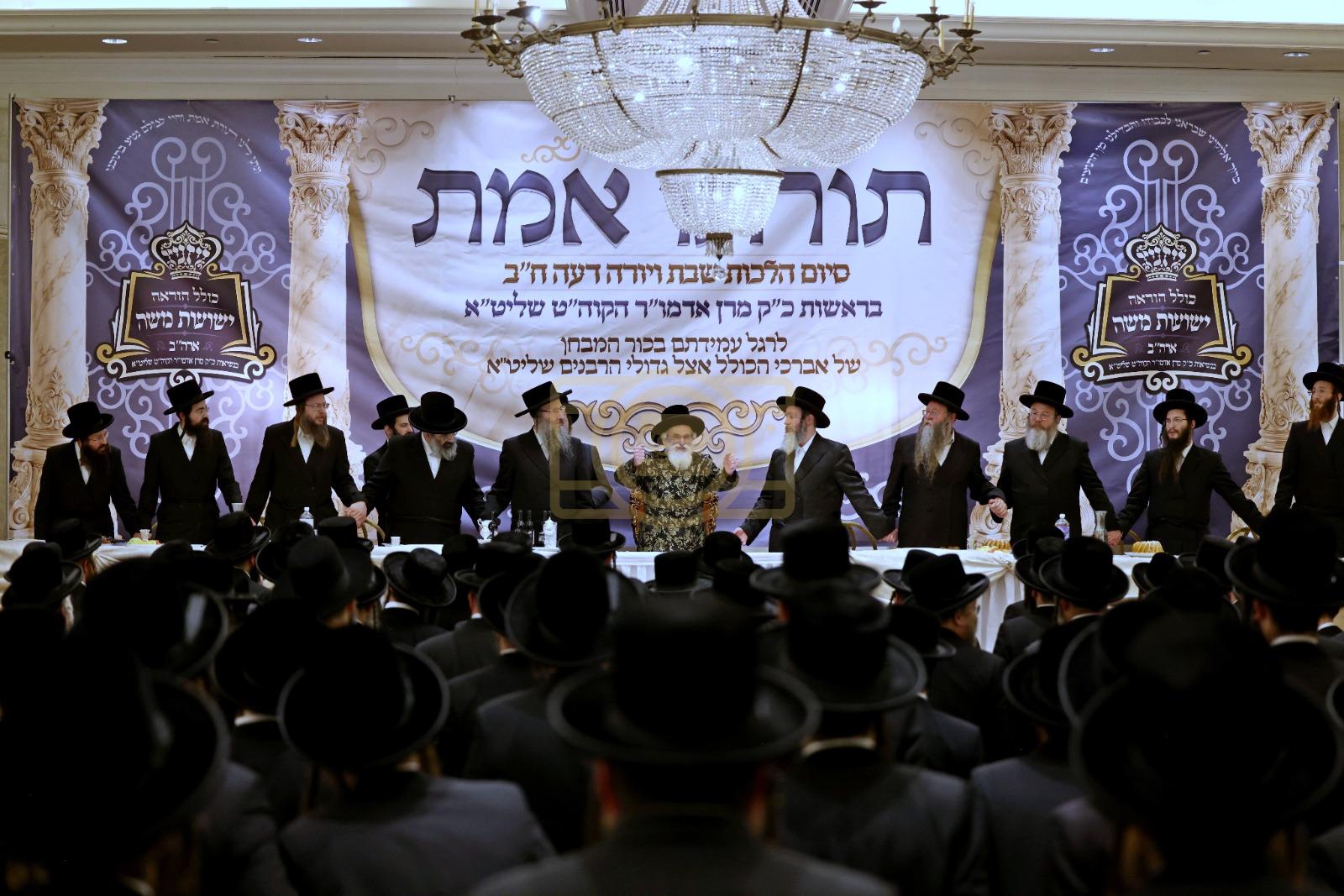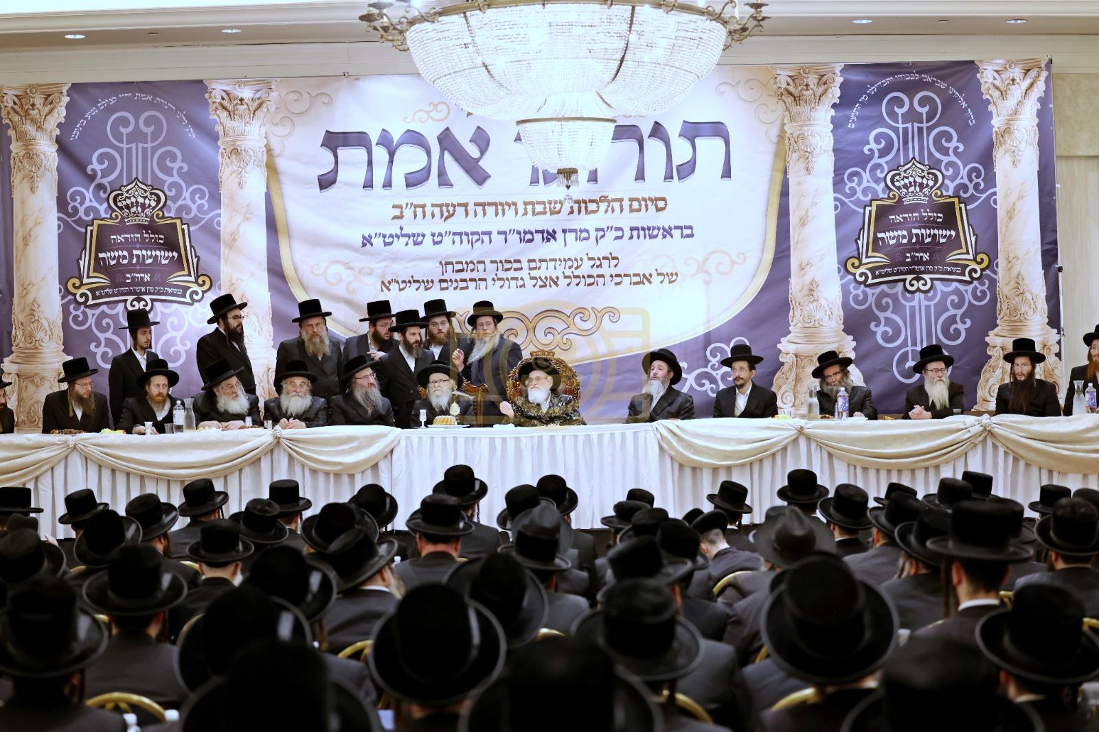 מעמד כבוד התורה תורתו אמת בראשות כ"ק אדמו"ר מוויזניץ שליט"א פאר צענדליגע אינגעלייט וואס האבן זיך פארהערט די הוראה אין כולל וויזניץ בארא פארק