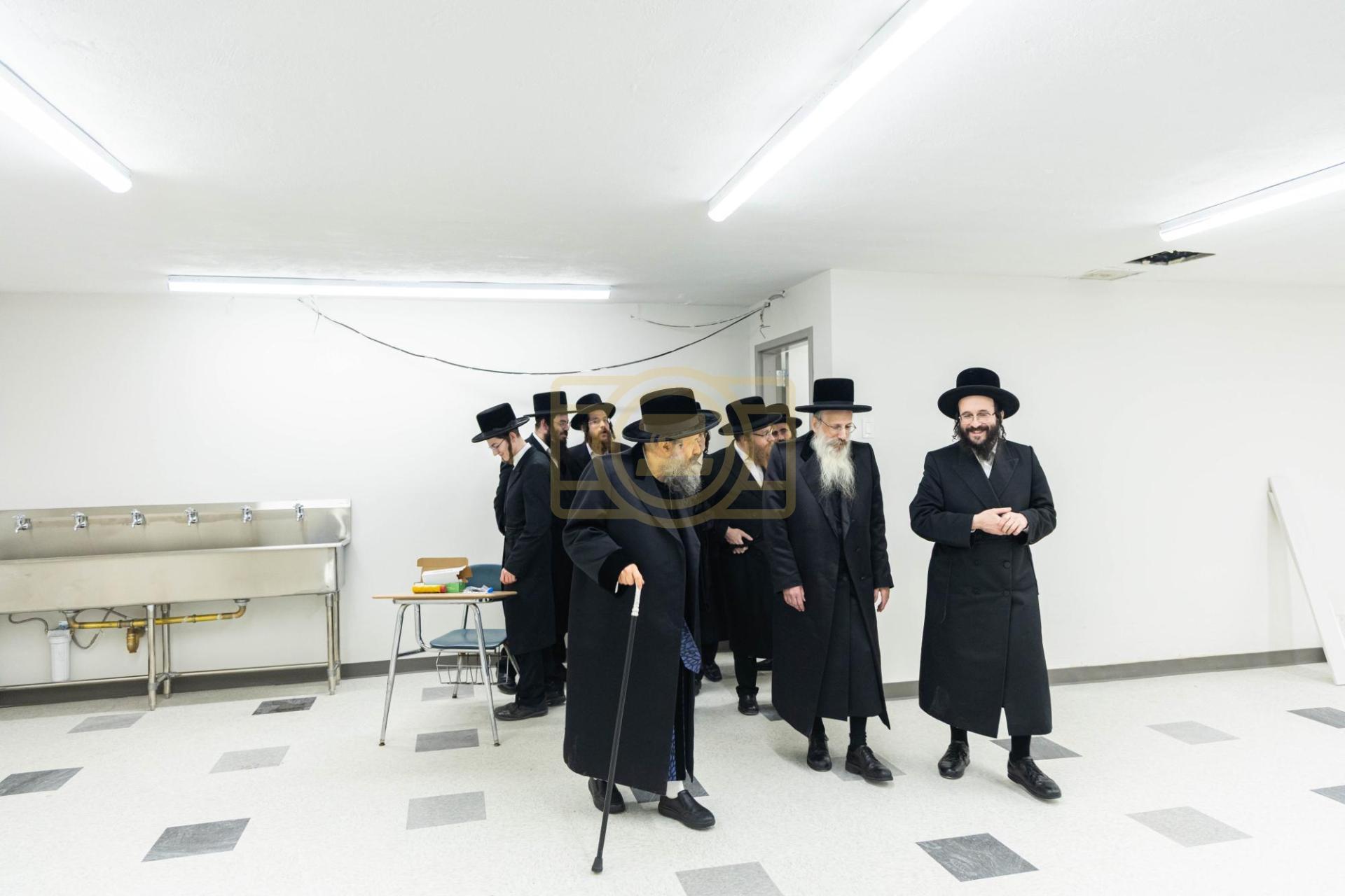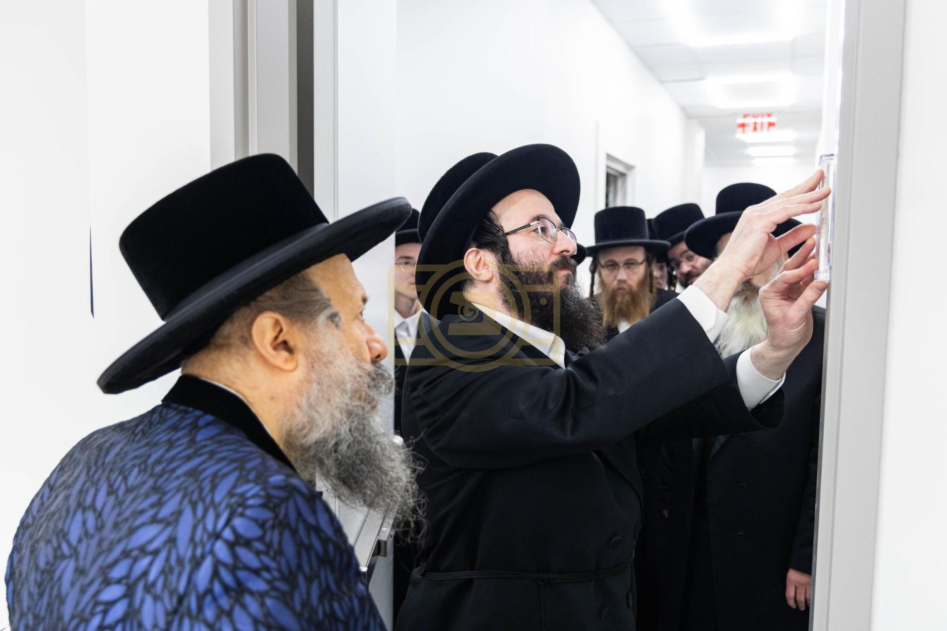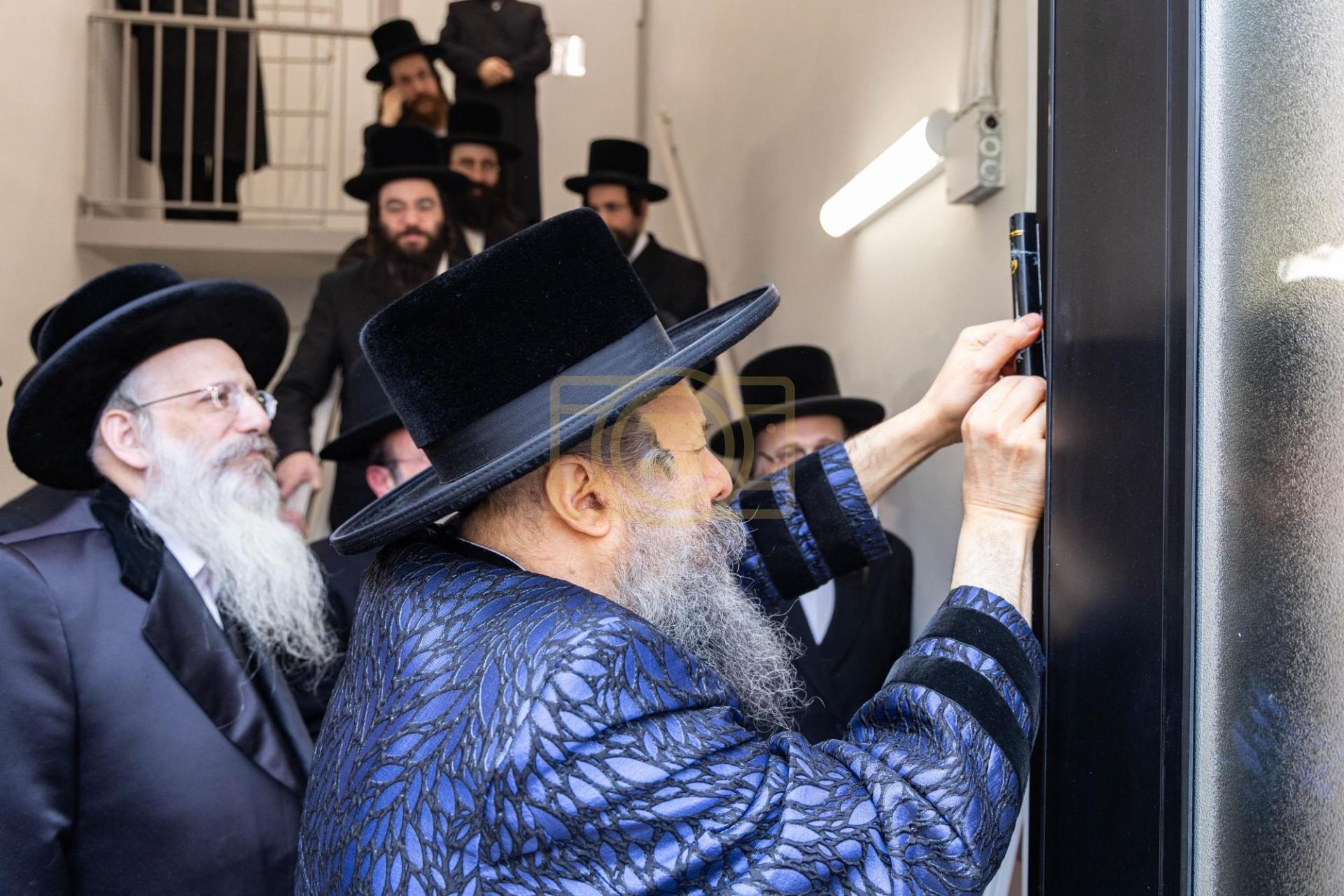 מעמד קביעת מזוזות בבנייני הישיבות קטנות‎ בראשות כ"ק אדמו"ר מבאבוב 45 שליט"א