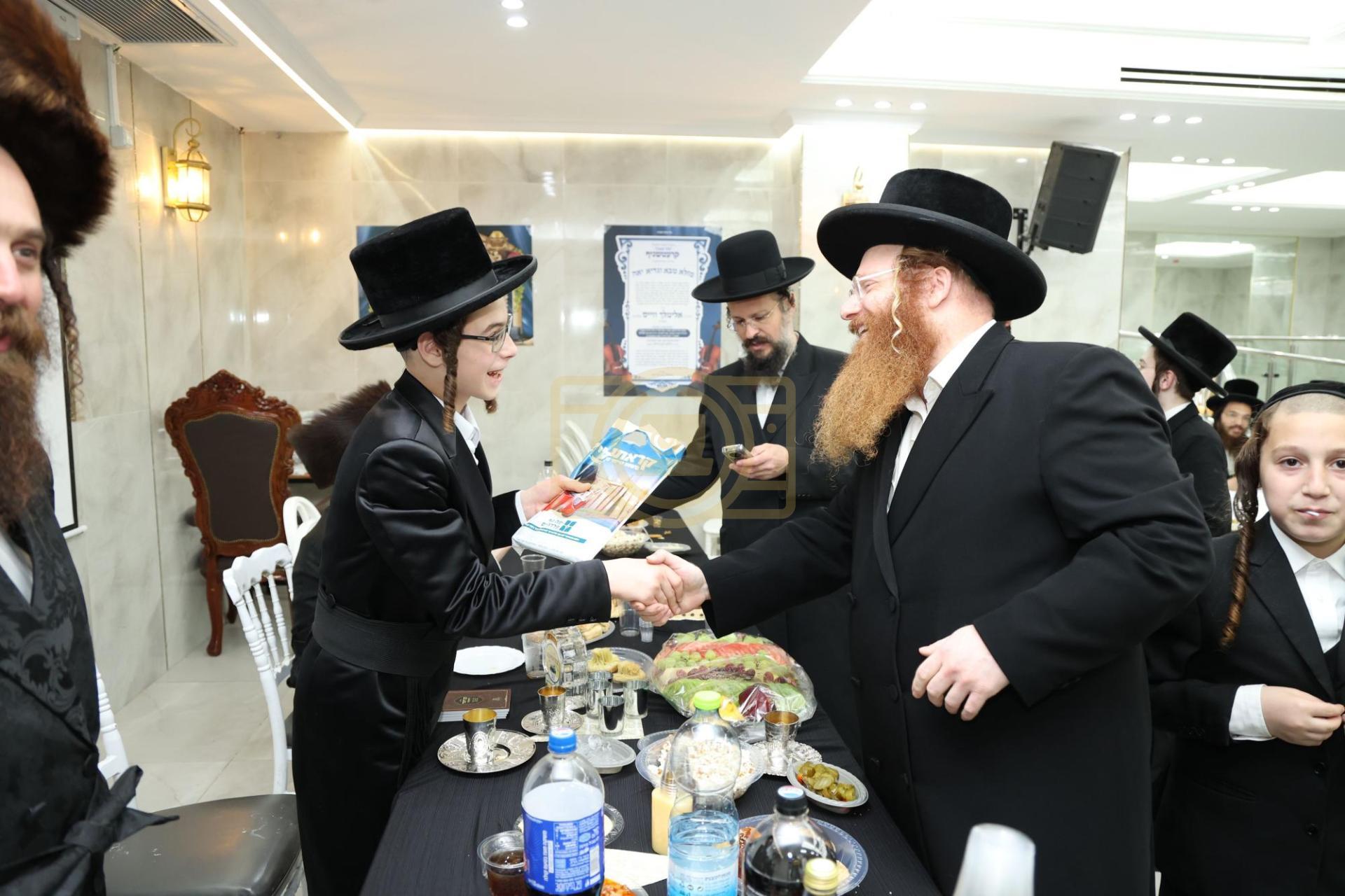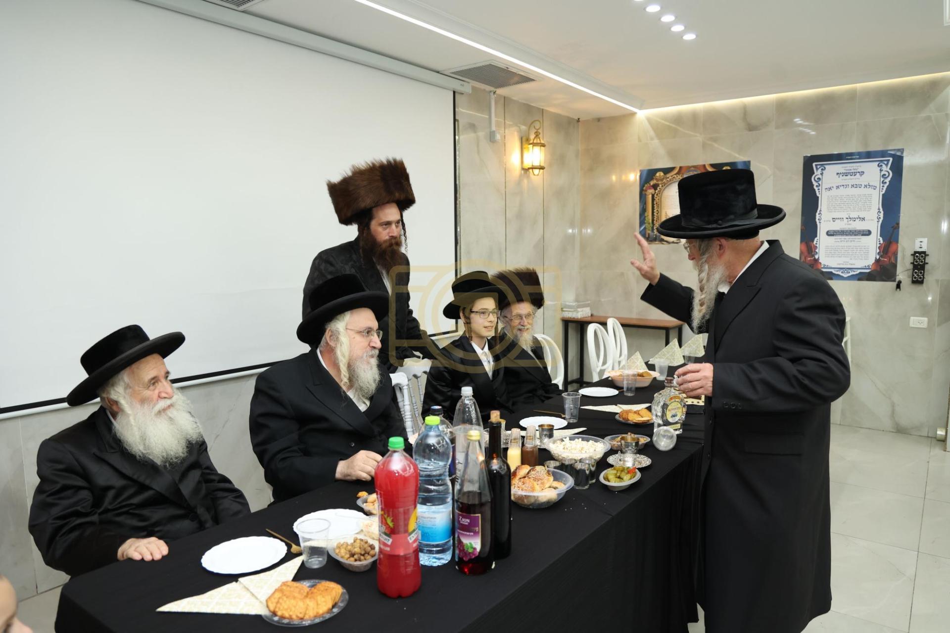 כ"ק מרן אדמו"ר מקרעטשניף שליט"א מיט נאך פילע רבנים און עסקנים ביים שמחת הבר מצוה לבן הרה"ח ר' אלימלך ווייס הי"ו משמש בקודש ויד ימינו פון האדמו"ר מקרעטשניף שליט"א