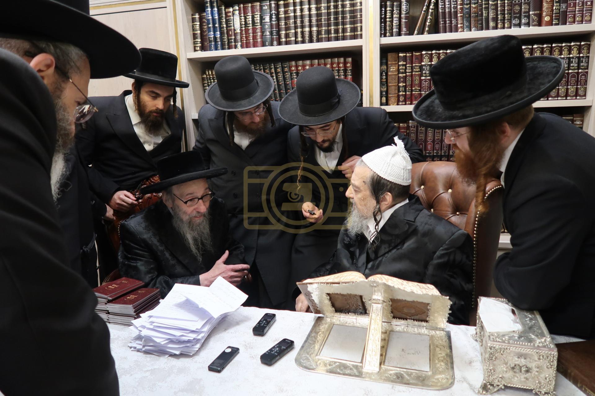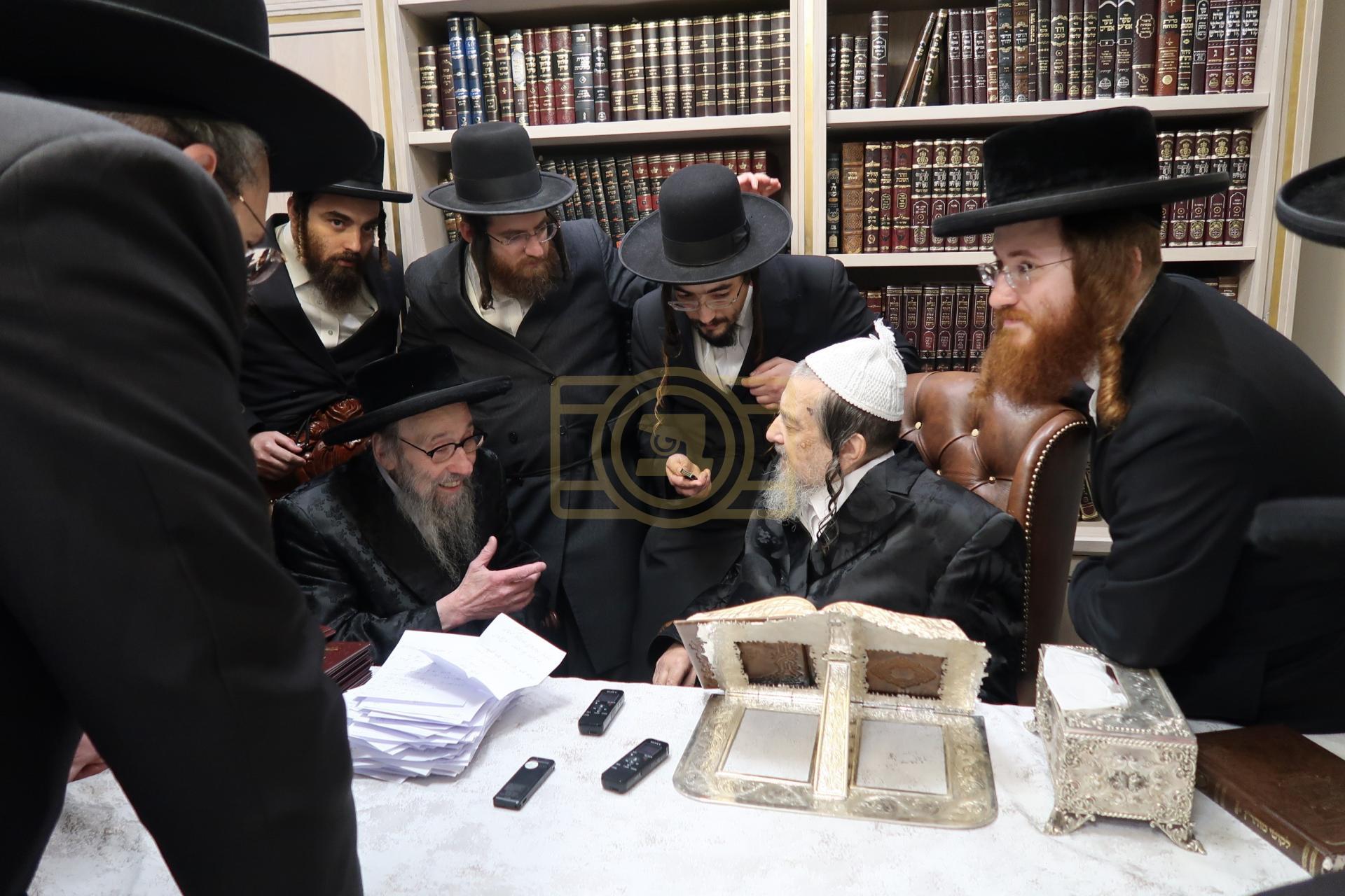 - דב"ק ביים מעמד הפרשת תרומות ומעשרות אינעם דערפל אור הגנוז נעבן אתרא קדישא מירון. |