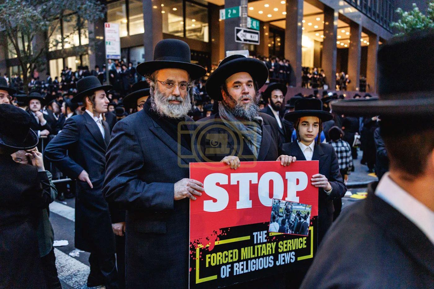 Main image for פרישע בילדער פון די נעכטיגע פראטעסט אין מאנהעטן קעגן די גזירת הגיוס