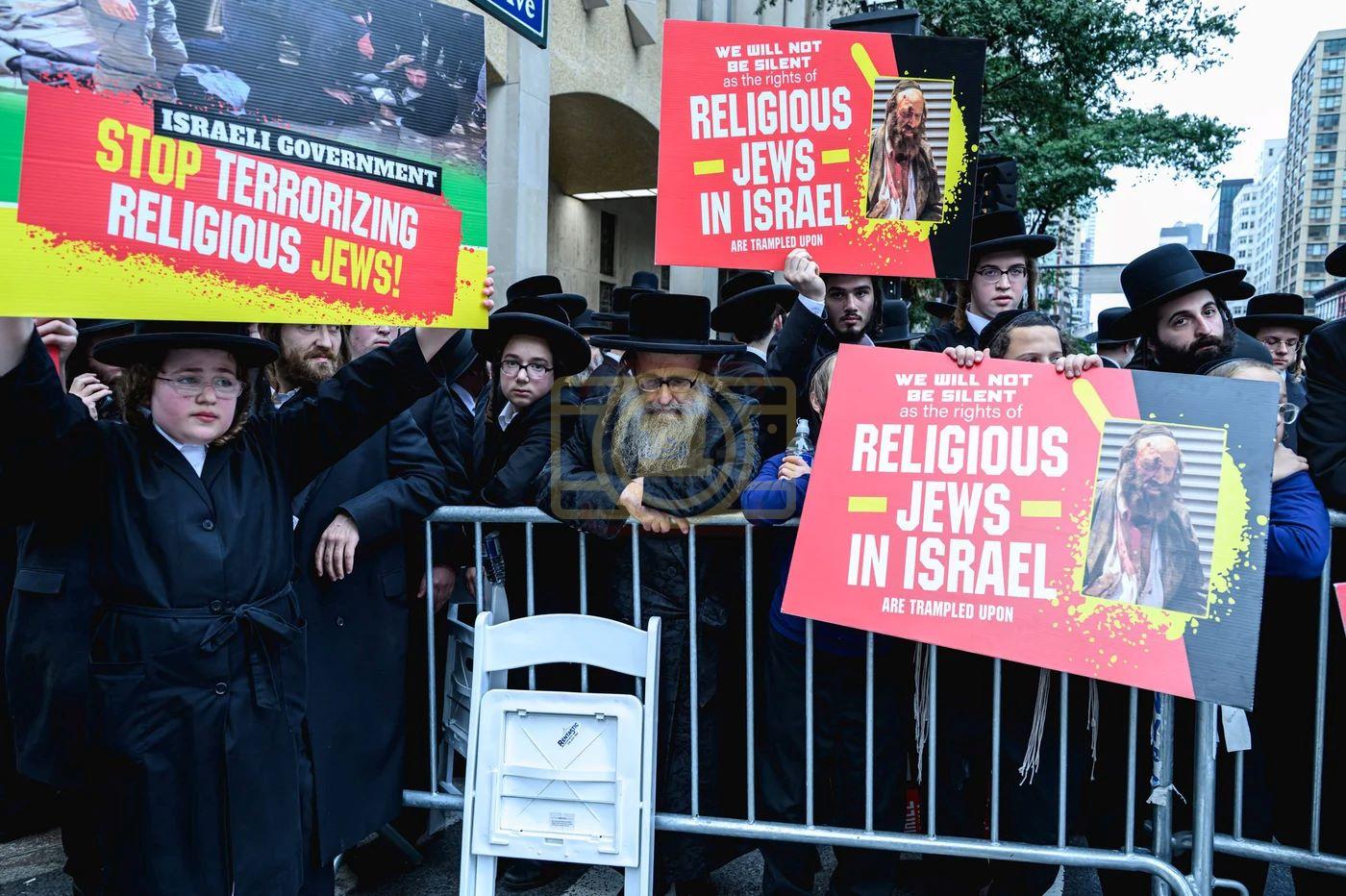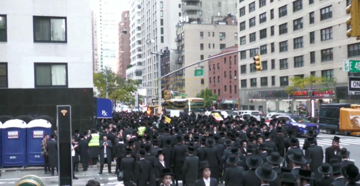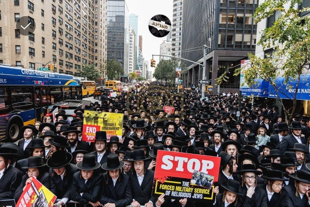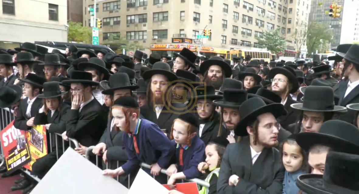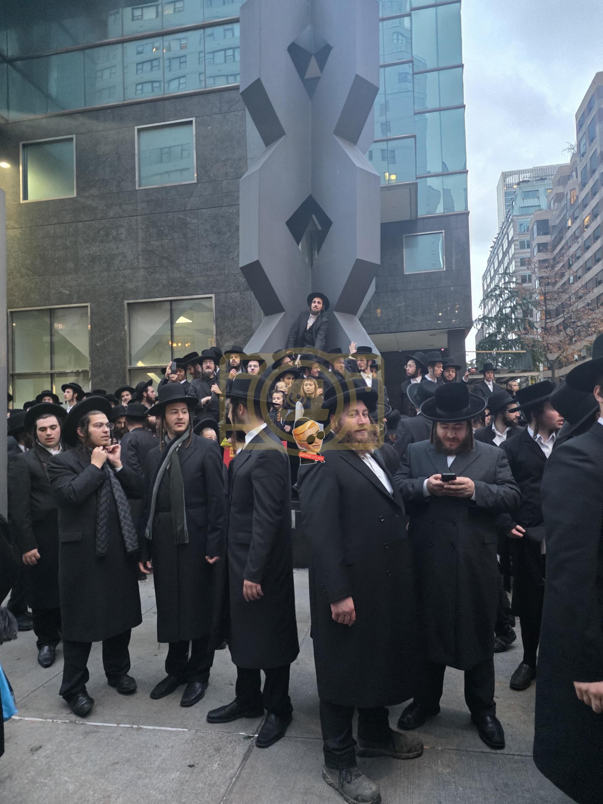 פרישע בילדער פון די נעכטיגע פראטעסט אין מאנהעטן קעגן די גזירת הגיוס