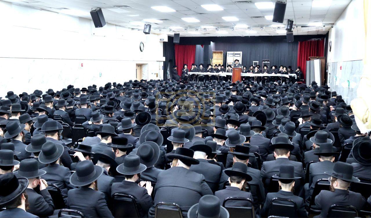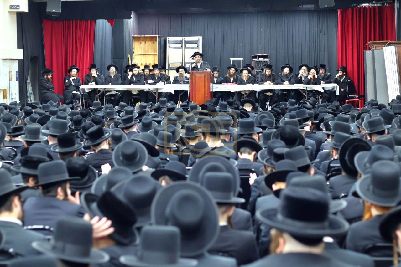 הגה"צ אבדק"ק סאטמאר וויליאמסבורג שליט"א ביים משמיע זיין דעם דרשת פתיחת הזמן פאר די קרוב צו 700 תלמידי ישיבה קטנה פון די 6 סניפי תלמידי ישיבה קטנות שע"י ממלכת התורה זונטאג חי' שרה אין די אדיטאריום בבנין הבית רחל אין וויליאמסבורג