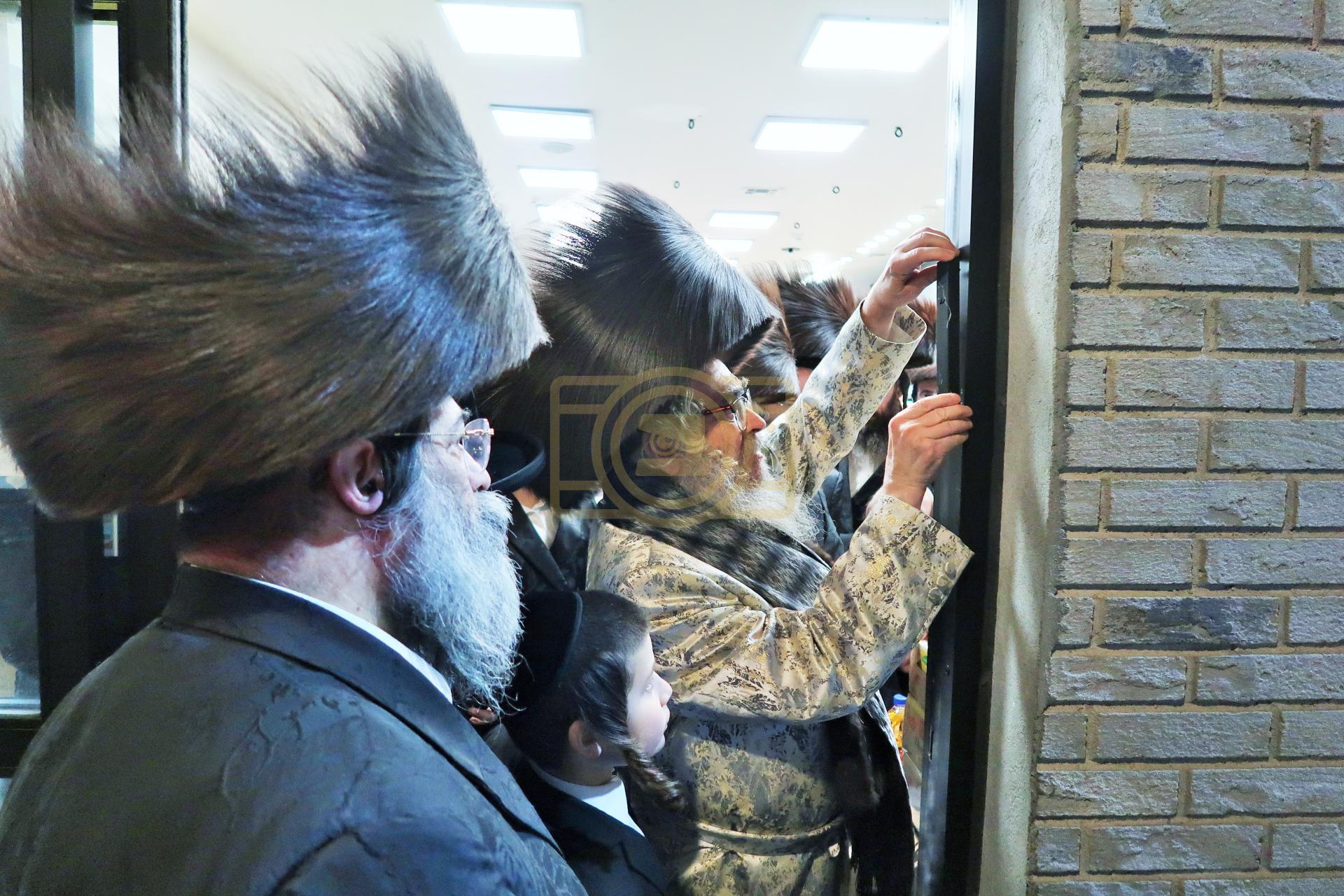 כ"ק אדמו"ר מסאטמאר שליט"א ביי קביעת מזוזה אין מיטיב געשעפט