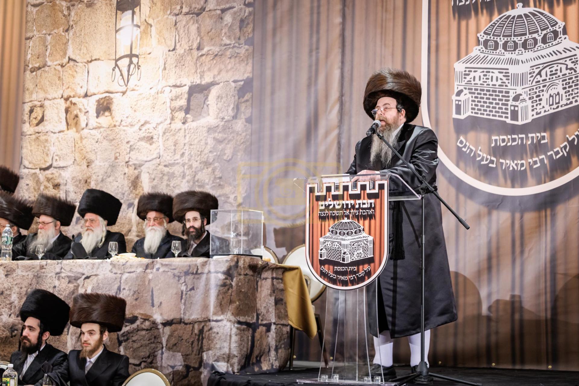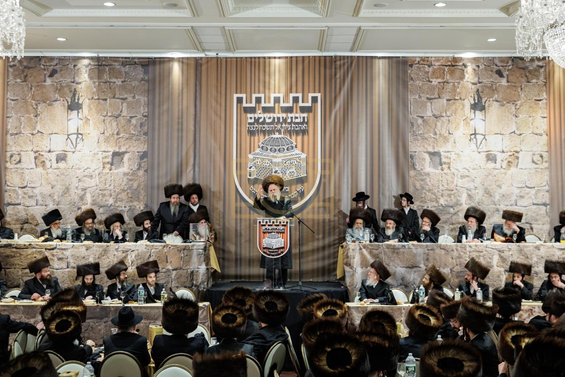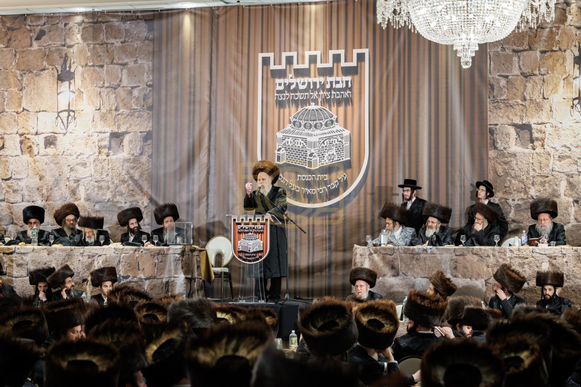 א שטארקע ערענסקייט און התפעלות האט ארומגענומען דעם זאל ווען מ'האט געהאט די כבוד צו הערן א רייכע דרשה ועדות נאמנה מכלי ראשון איבער די ריזיגע פעולות צדקה וחסד פונעם כולל דורך ידידנו הנאמן בנן של קדושים וגדולים הרבני הנגיד החסיד הרב שמואל ישראל הלוי איש הורוויץ שליט"א וואס האט זוכה געווען בנוסף צו זיינע פולע מעשי צדקה וחסד צו קויפן די זכות און ווערן די עמוד התווך פונעם תמיכת חג הפסח תשפ"ו דורכ'ן כולל לאלפי עניי ארה"ק, און לכבוד דעם אפגעשטאט א הערליכע באזוך אינעם היסטארישן לשכת הכולל אין ירושלים, ווי דער נגיד האט ארויסגעברענגט די אויסטערלישע התרגשות צוזעענדיג די ארכיוון פון בריוון און כתבי קודש מאבותינו ורבותינו הקדושים, און פרעזענליך מעיד געווען איבער די אויסערגעווענליכע וועלט פון חסד וואס גייט ארויס פונעם לשכת הכולל און ווערט פארשפרייט איבער גאנץ ארץ ישראל פאר רבבות אידן וואס זענען אנגעוויזן אין דעם, ווערטער וואס האבן אפגעקלינגען בלב כל השומעים.