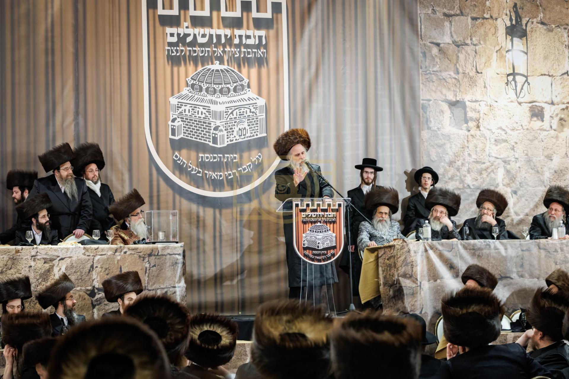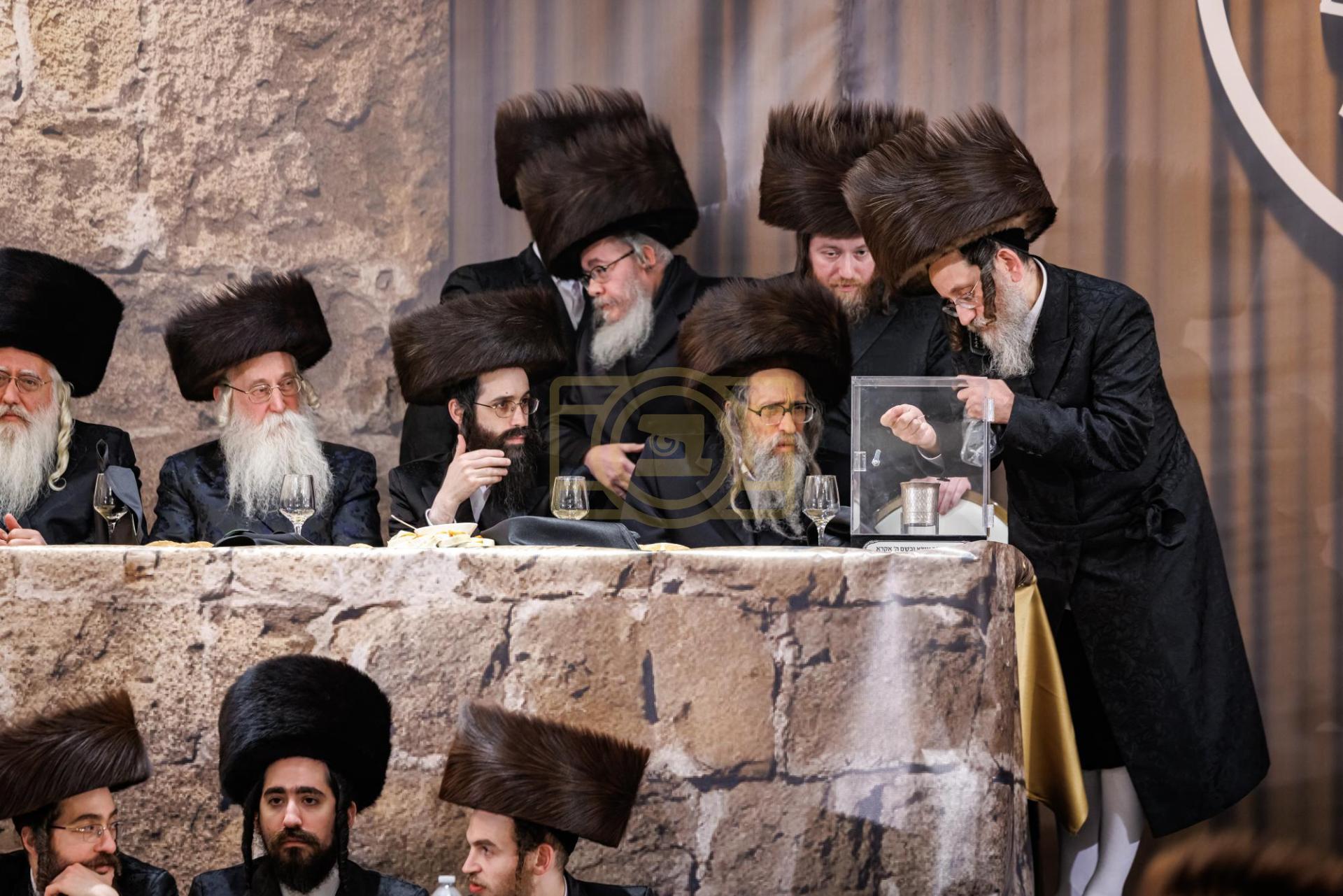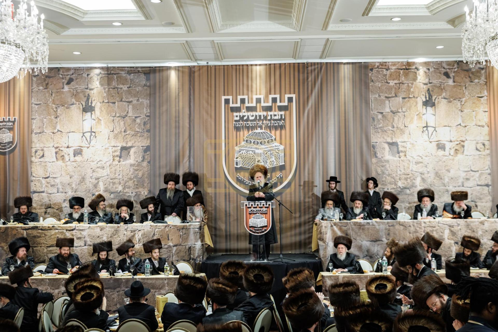 א שטארקע ערענסקייט און התפעלות האט ארומגענומען דעם זאל ווען מ'האט געהאט די כבוד צו הערן א רייכע דרשה ועדות נאמנה מכלי ראשון איבער די ריזיגע פעולות צדקה וחסד פונעם כולל דורך ידידנו הנאמן בנן של קדושים וגדולים הרבני הנגיד החסיד הרב שמואל ישראל הלוי איש הורוויץ שליט"א וואס האט זוכה געווען בנוסף צו זיינע פולע מעשי צדקה וחסד צו קויפן די זכות און ווערן די עמוד התווך פונעם תמיכת חג הפסח תשפ"ו דורכ'ן כולל לאלפי עניי ארה"ק, און לכבוד דעם אפגעשטאט א הערליכע באזוך אינעם היסטארישן לשכת הכולל אין ירושלים, ווי דער נגיד האט ארויסגעברענגט די אויסטערלישע התרגשות צוזעענדיג די ארכיוון פון בריוון און כתבי קודש מאבותינו ורבותינו הקדושים, און פרעזענליך מעיד געווען איבער די אויסערגעווענליכע וועלט פון חסד וואס גייט ארויס פונעם לשכת הכולל און ווערט פארשפרייט איבער גאנץ ארץ ישראל פאר רבבות אידן וואס זענען אנגעוויזן אין דעם, ווערטער וואס האבן אפגעקלינגען בלב כל השומעים.