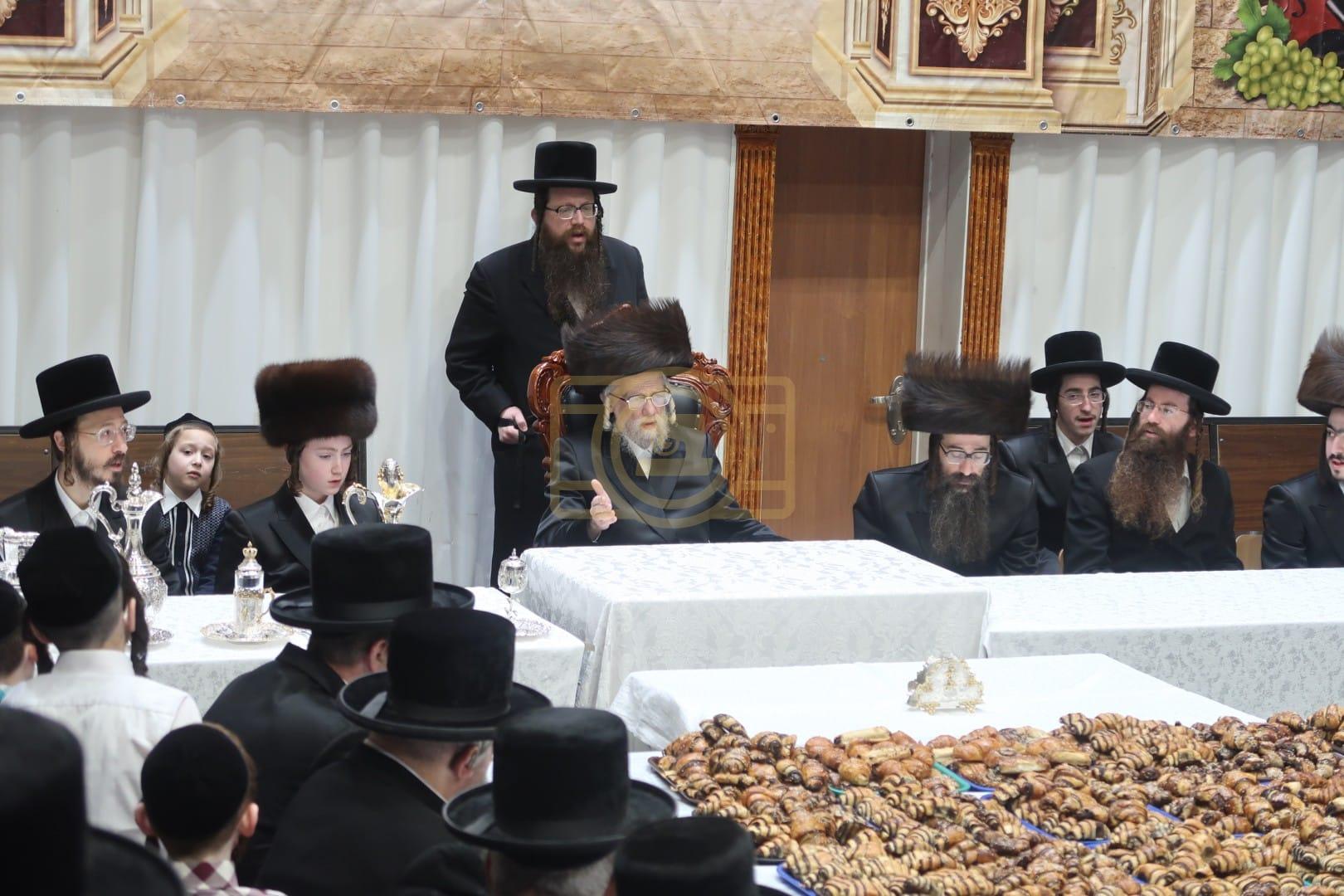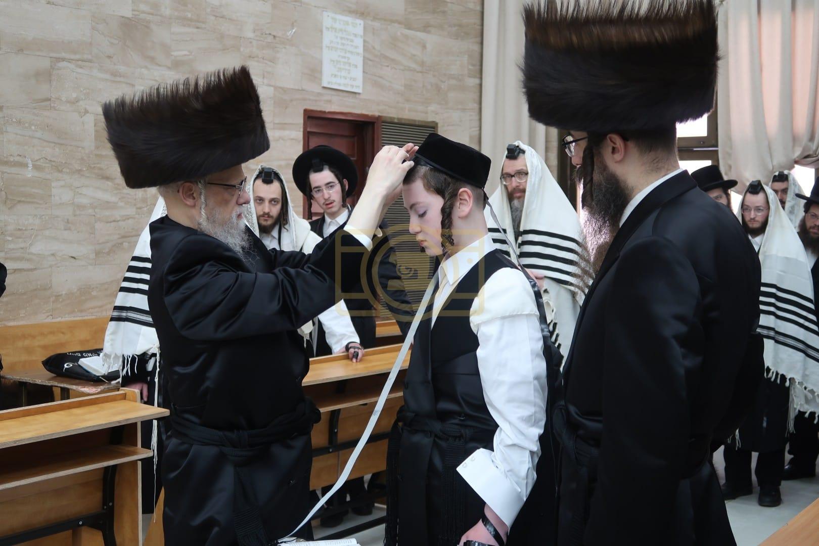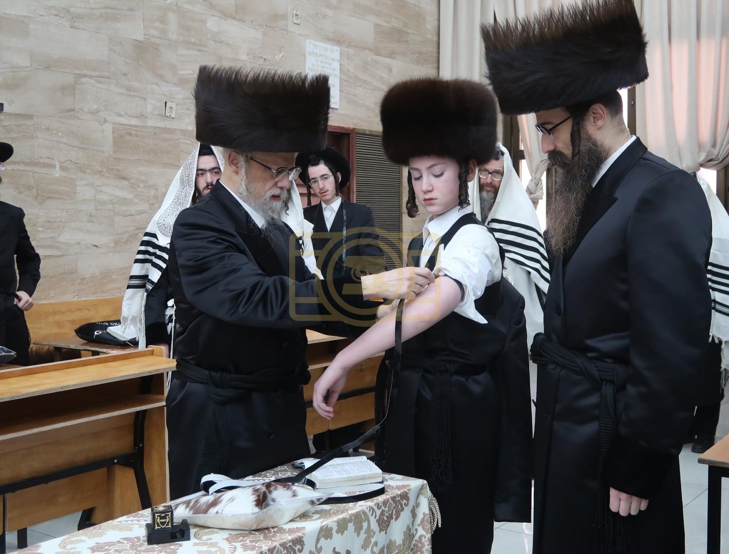 כ"ק אדמו"ר מסערט וויזניץ שליט"א בהנחת תפילין לנכדו.