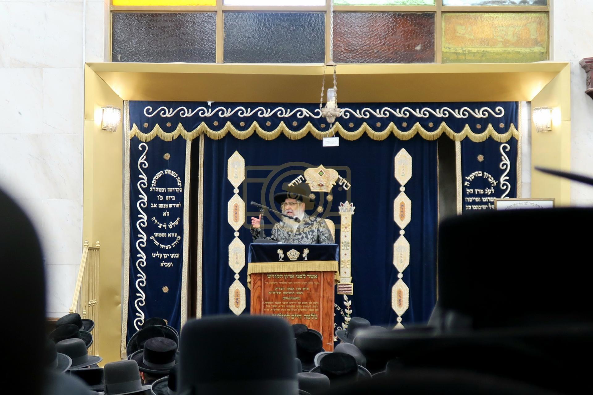 כ"ק אדמו"ר מסאטמאר שליט"א ביי פתיחת הזמן צו איבער 1,300 תלמידי המתיבתא