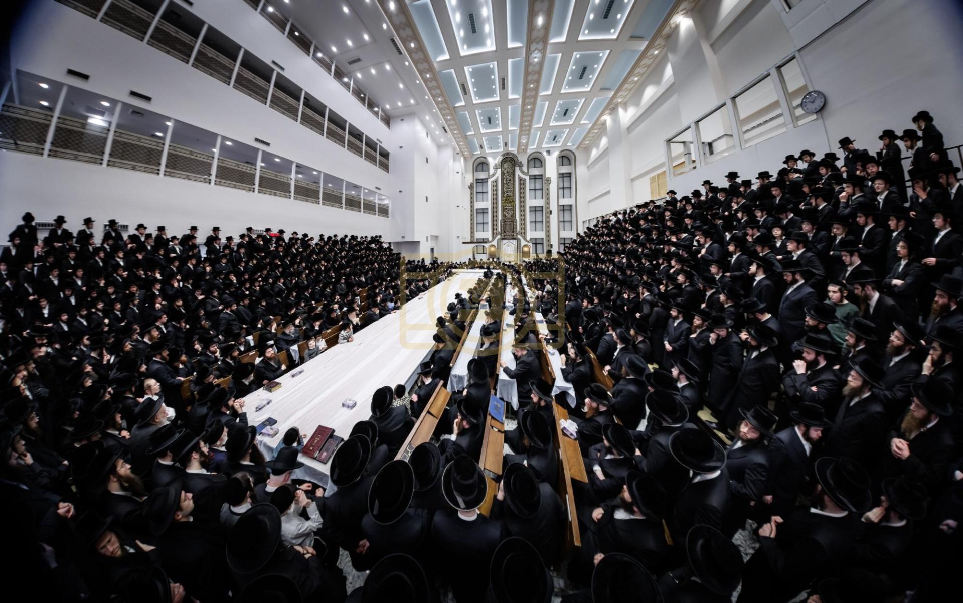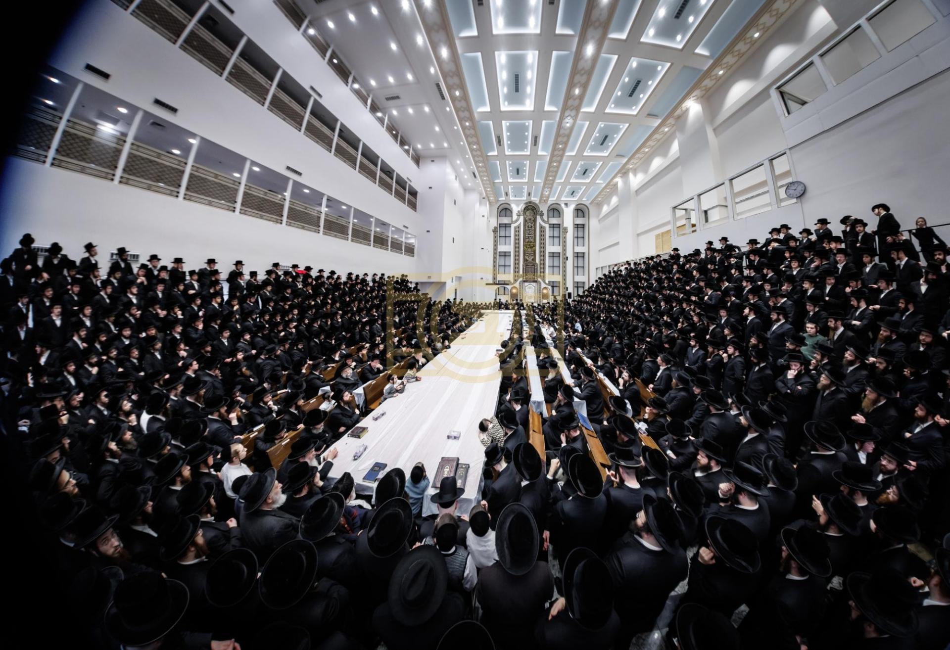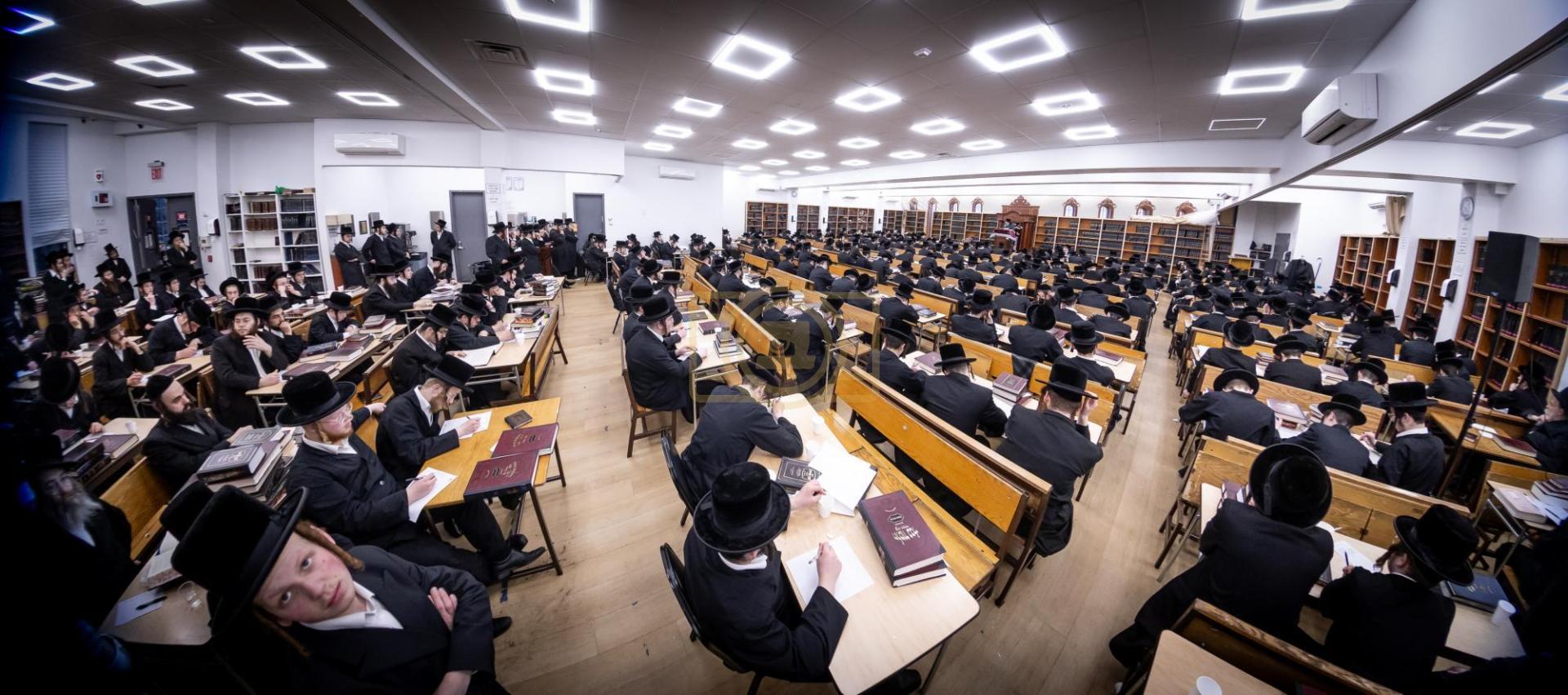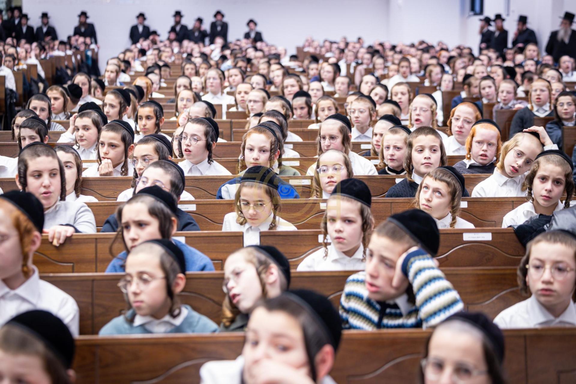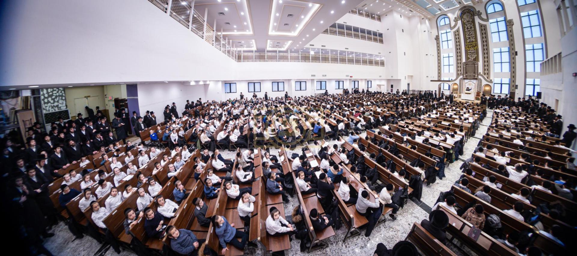 מעמד חלוקת חנוכה געלט לאלפי התלמידים של הכיתות הגבוהות של הת"ת בבארא פארק, יוניאן ומאנסי, שהתקיימה בהיכל ביהמ"ד הגדול
