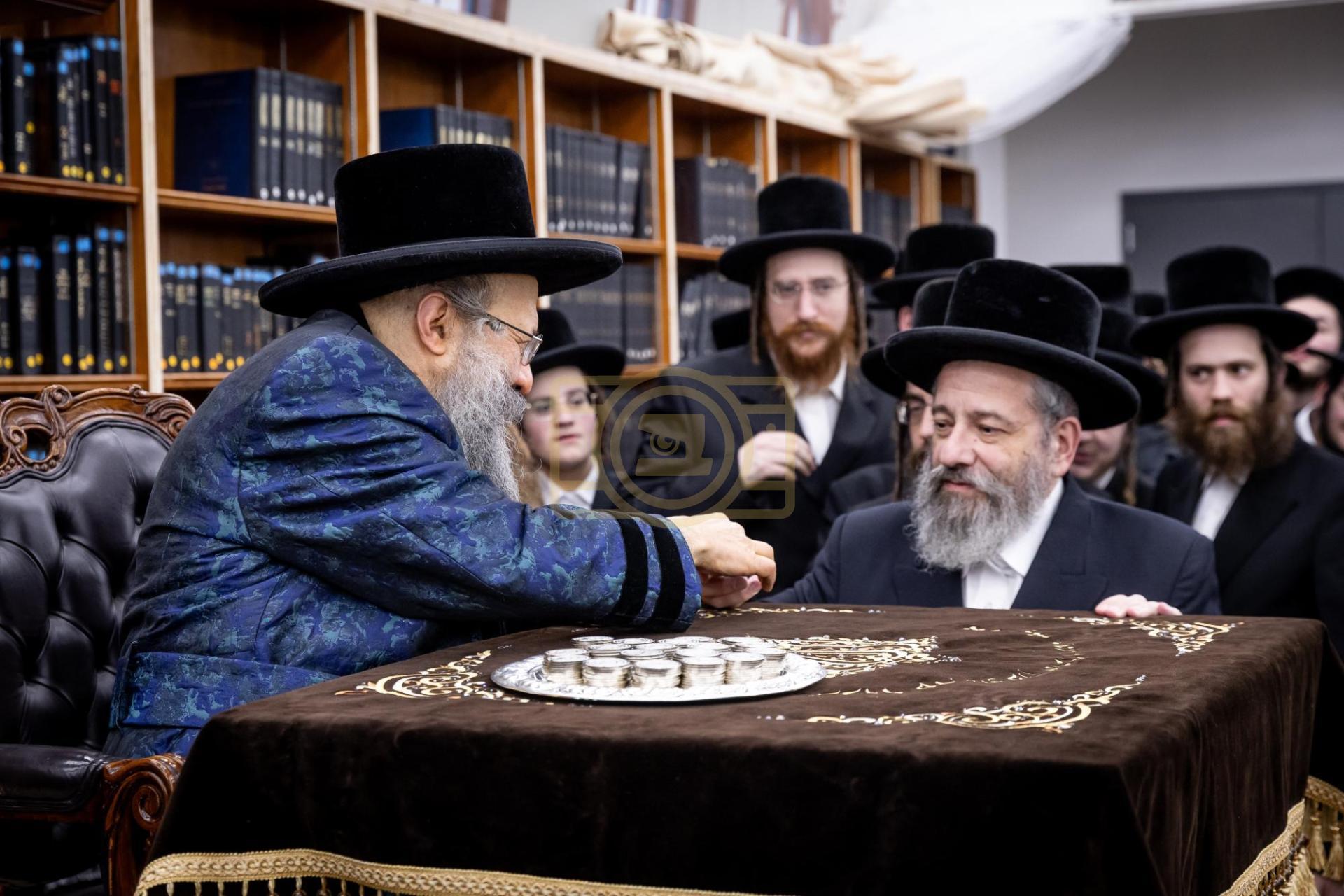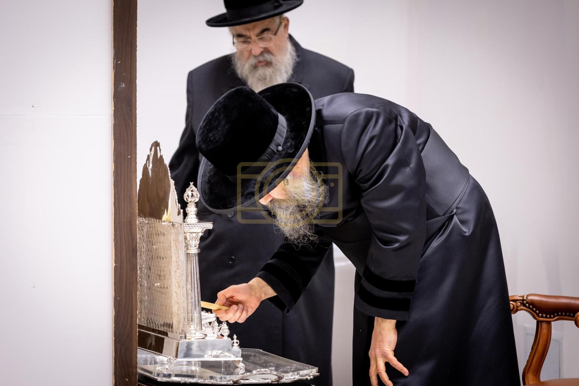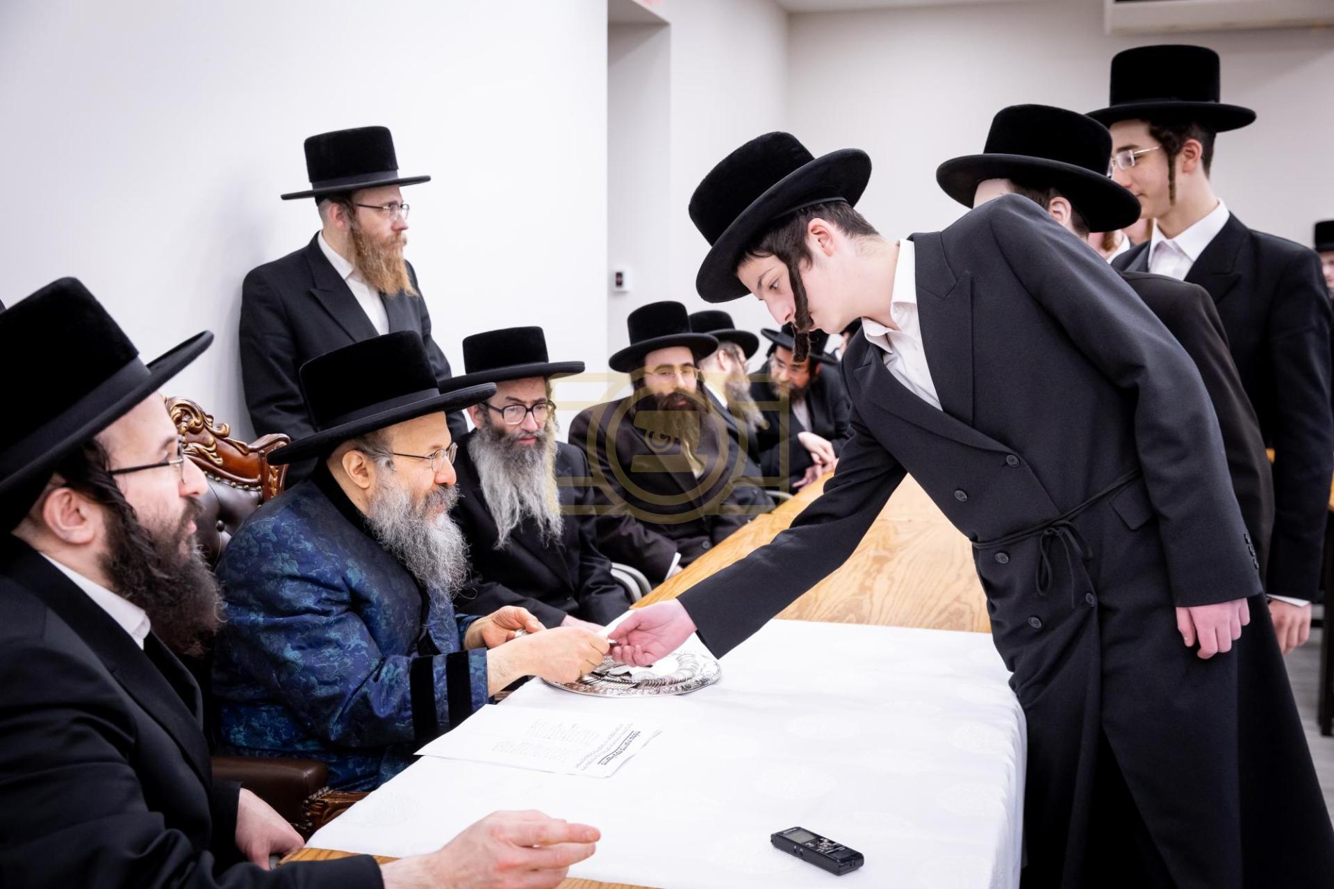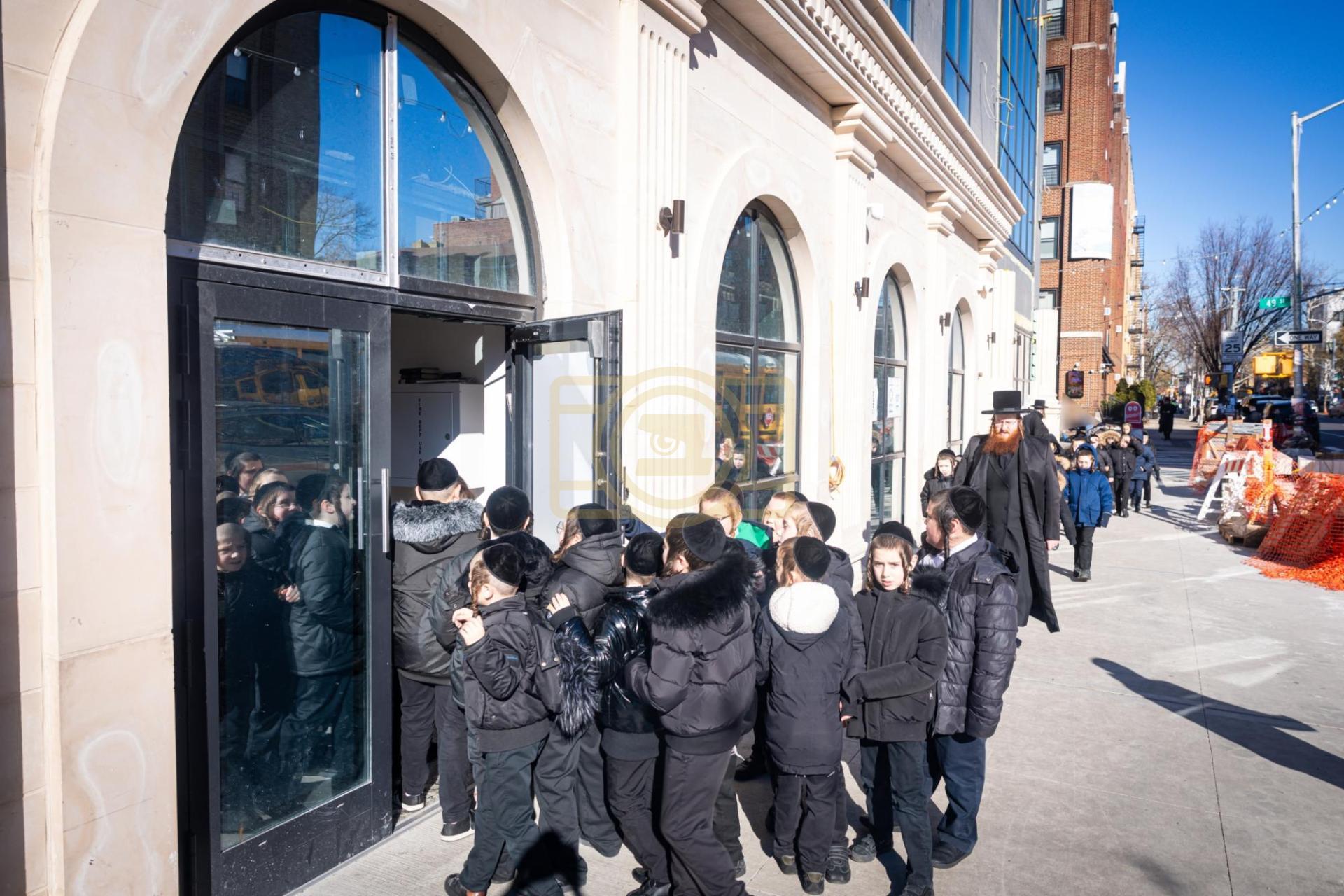 חלוקת חנוכה געלט לתלמידים עד גיל כיתה ב' בבנין הת"ת ברח' 20 ששופץ לאחרונה, וכן קביעת מזוזה ע"י האדמו"ר וע"י הרב יעקב יוסף שטיינמעץ מנכ"ל המוסדות