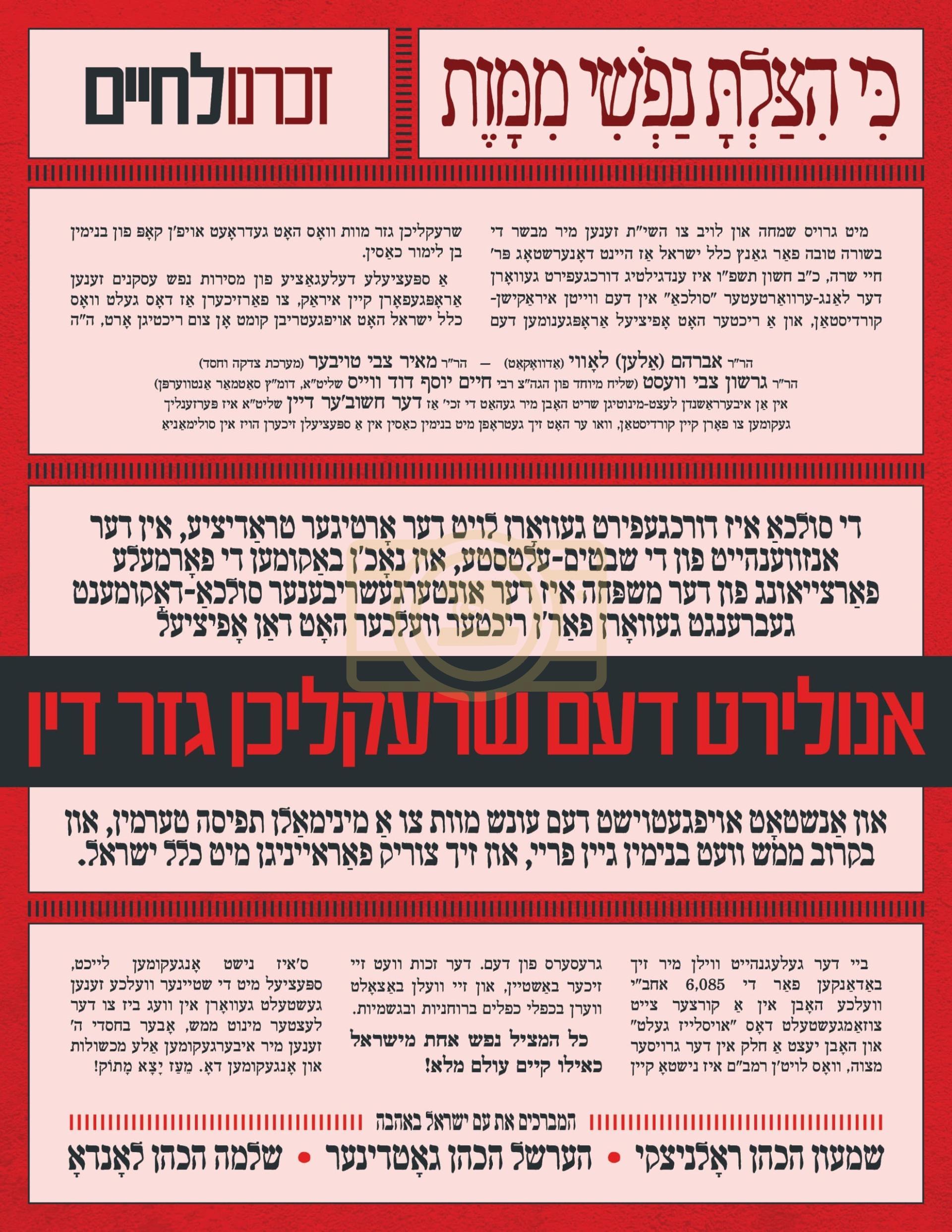 נאך לאנגע יארן פון שתדלנות האבן זיך אין די לעצטערע חדשים א גרופע היימישע עסקנים און אדוואקאטן אריינגעלייגט צו אנולירן דעם טויט אורטייל דורך א ׳סולכא׳ פראצעדור ווי די פאמיליע פארגעבט אויף זייער קלאגע פאר א גרויסע סומע געלט, טויזנטער אידן האבן זיך אנגעשלאסן אין דעם קאמפיין און עס איז געשאפן געווארן די נויטיגע סומע צו איבערבעטן די פאמיליע.