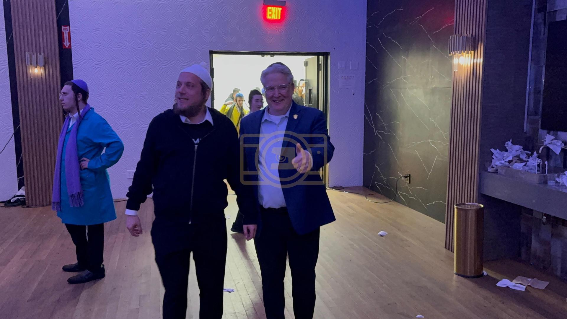 סטעיט סענעטאר ביל וועבער און אסעמבלימאן אהרן בנציון ווידער באטייליגן זיך פורים ביי היימישע אידן