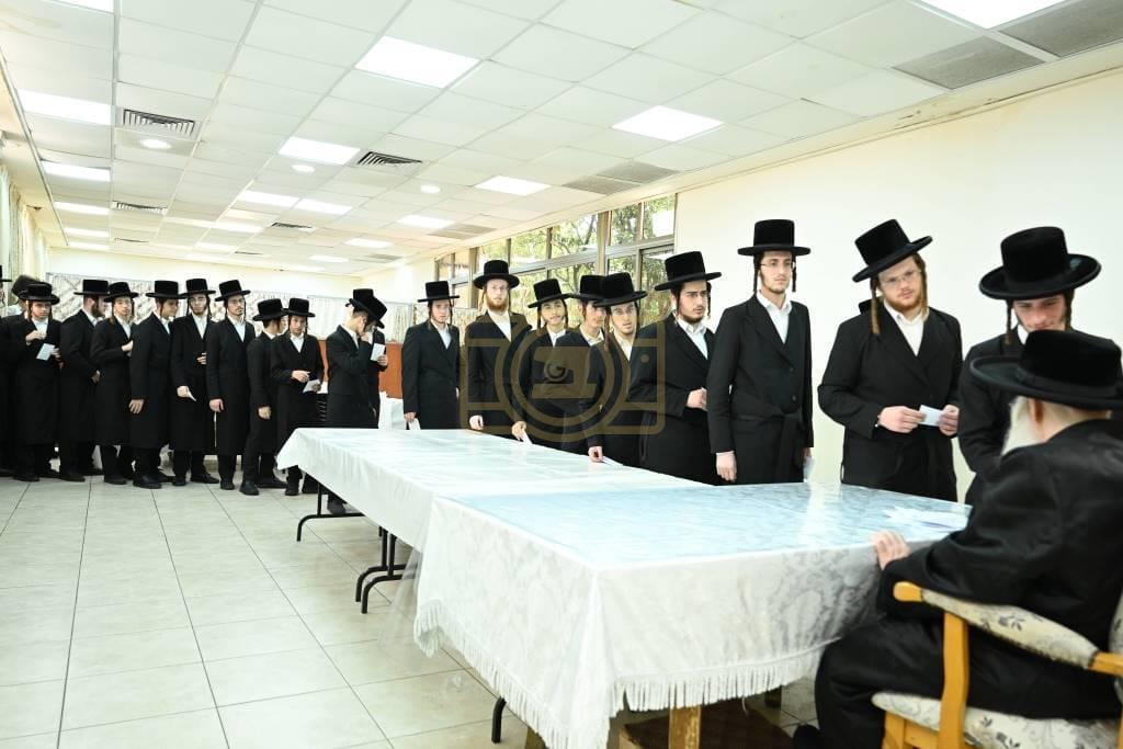 בחורי ישיבות צאנז ביי קבלת קהל ביי כ"ק אדמו"ר מצאנז שליט"א