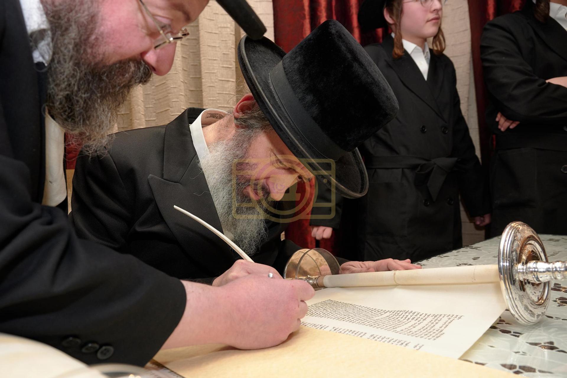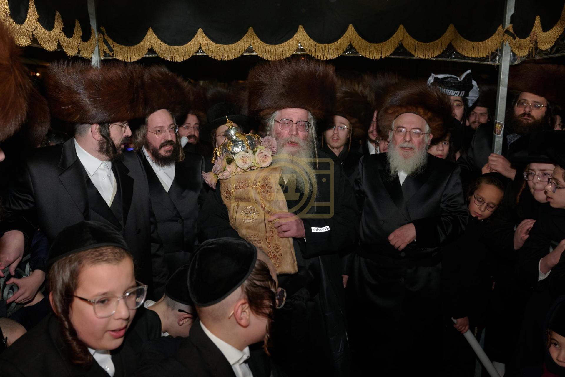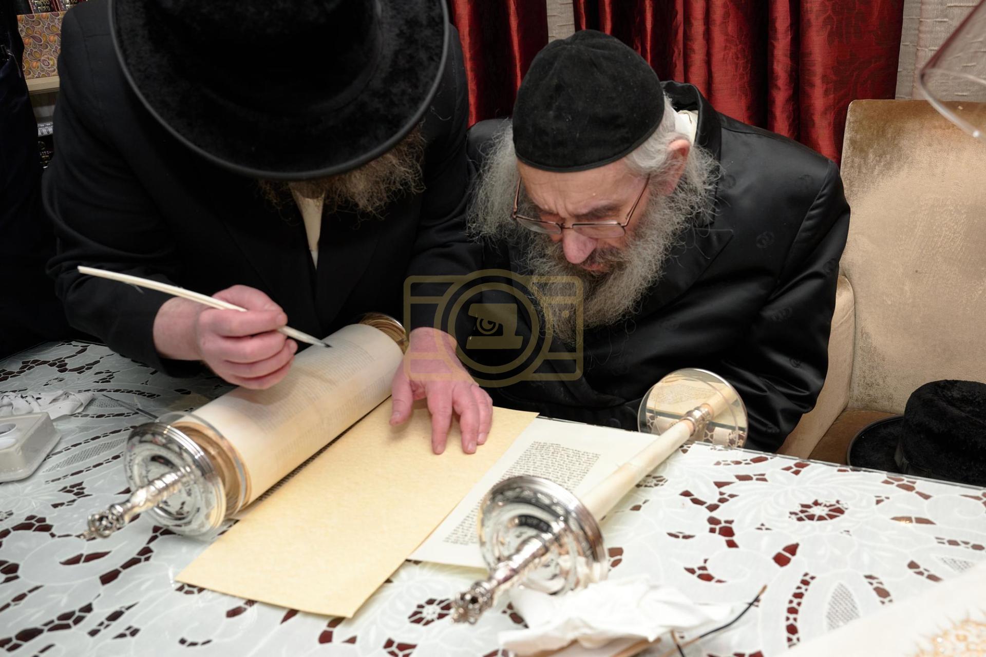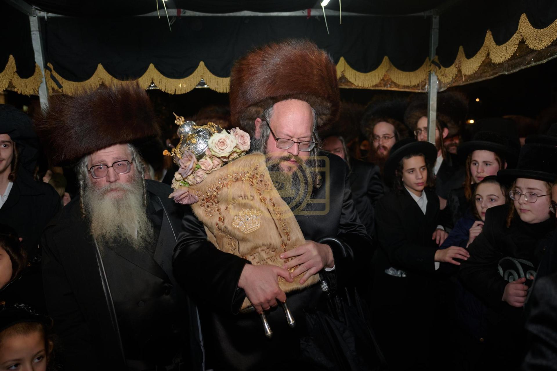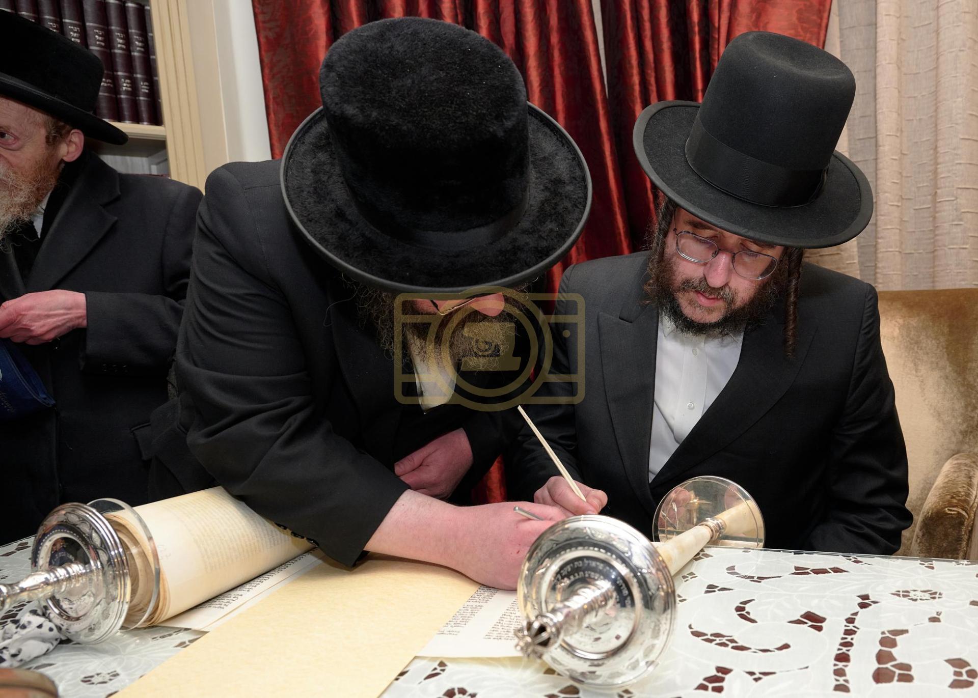 הערליכע הכנסת ספר תורה צום ביהמ"ד קיט"ל סאטמאר לאנדאן דורכן ראה"ק הרבני הנגיד ר' בעריש בערגער הי"ו לע"נ זיינע עלטערן ע"ה - מוצש"ק פ' תולדות