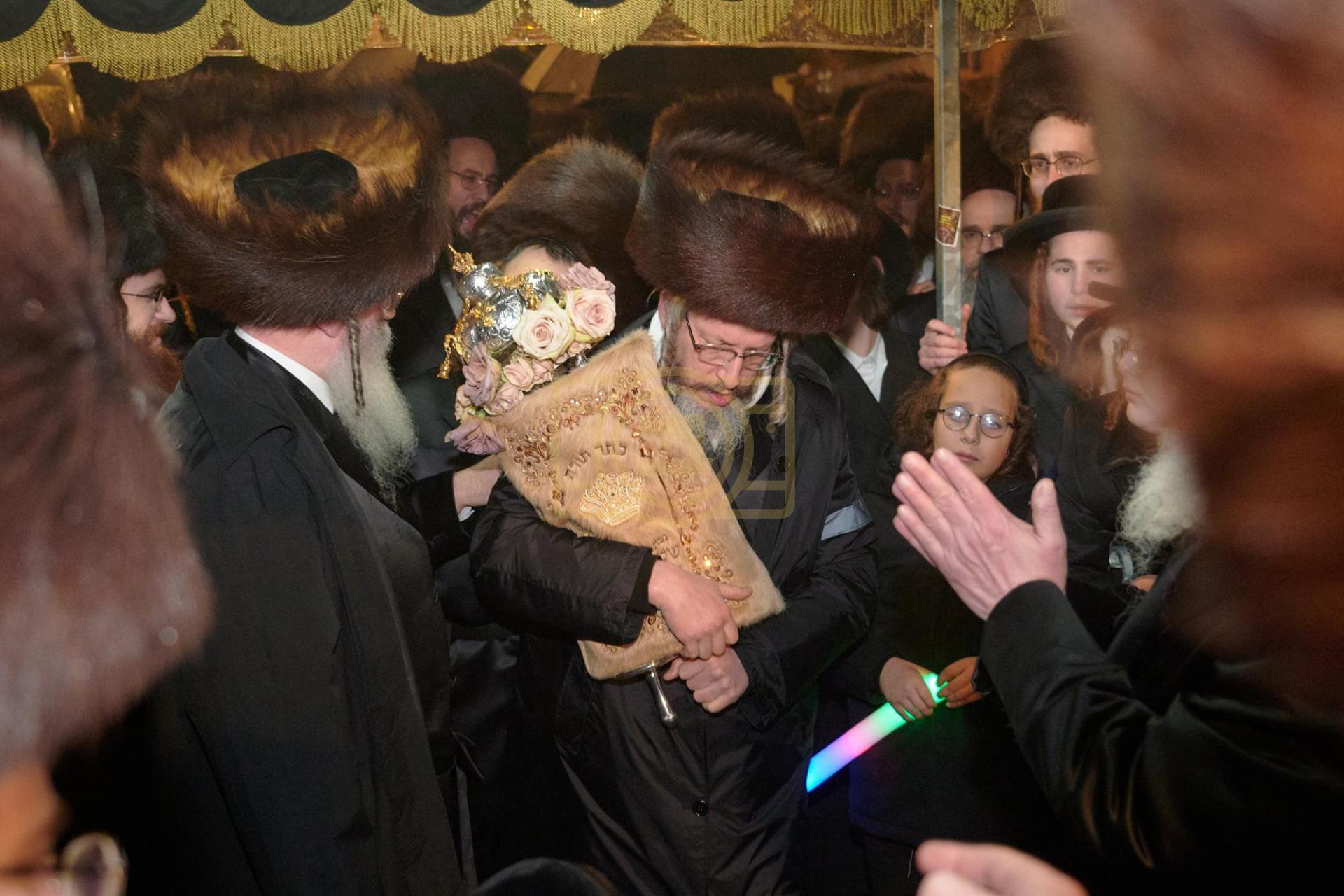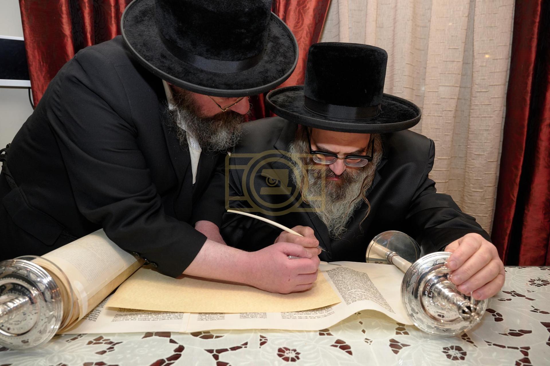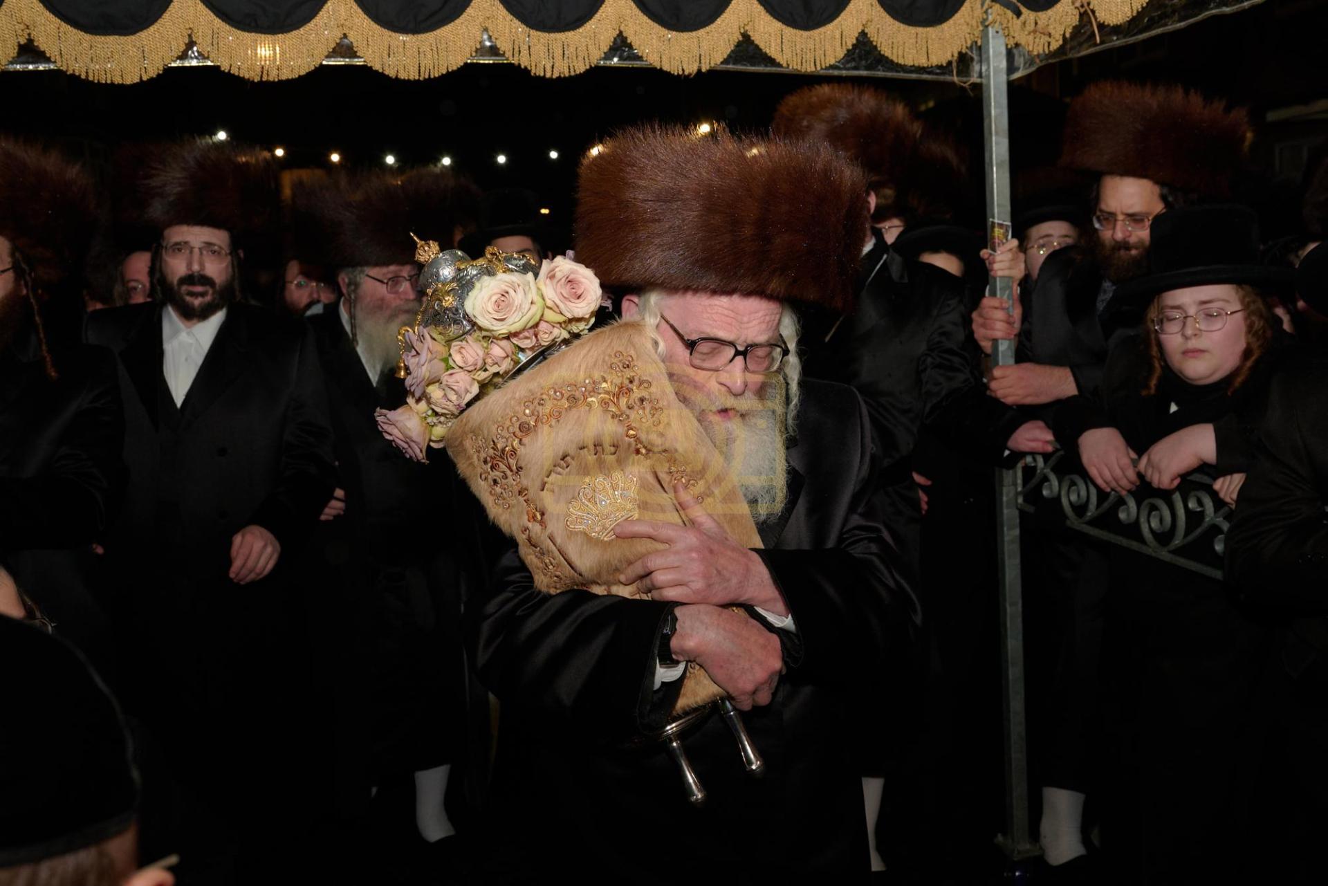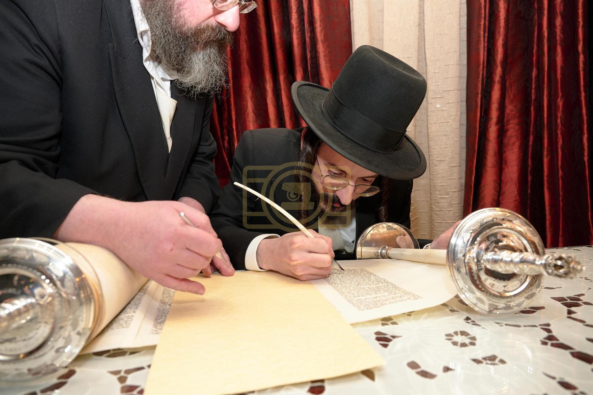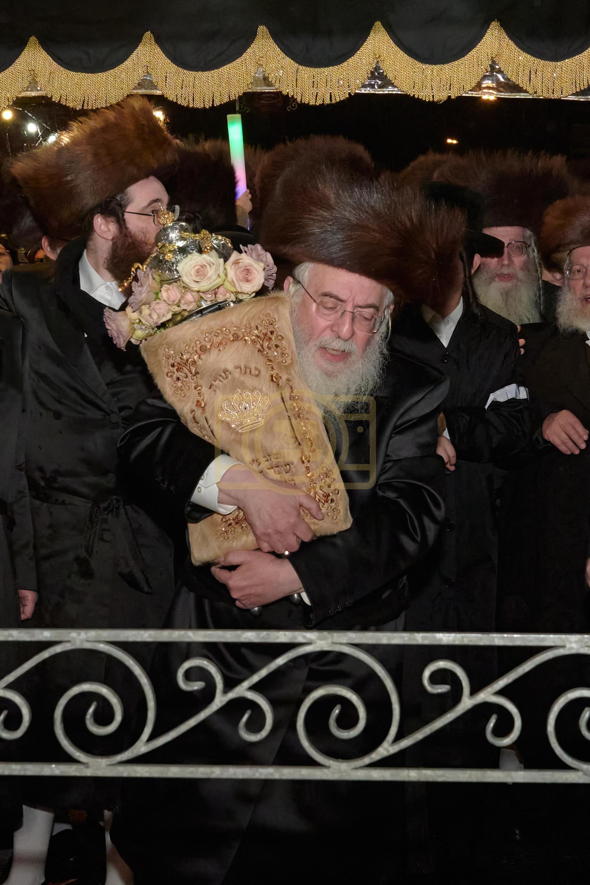 הערליכע הכנסת ספר תורה צום ביהמ"ד קיט"ל סאטמאר לאנדאן דורכן ראה"ק הרבני הנגיד ר' בעריש בערגער הי"ו לע"נ זיינע עלטערן ע"ה - מוצש"ק פ' תולדות