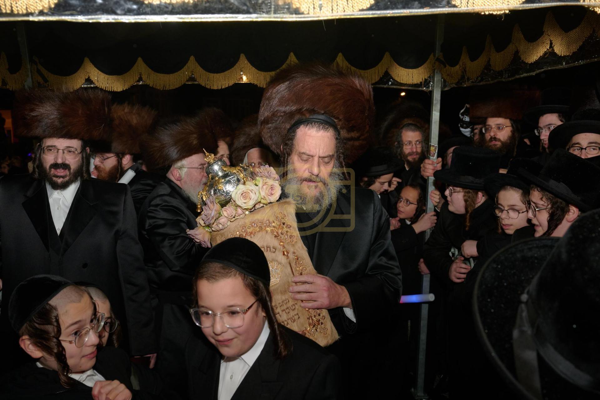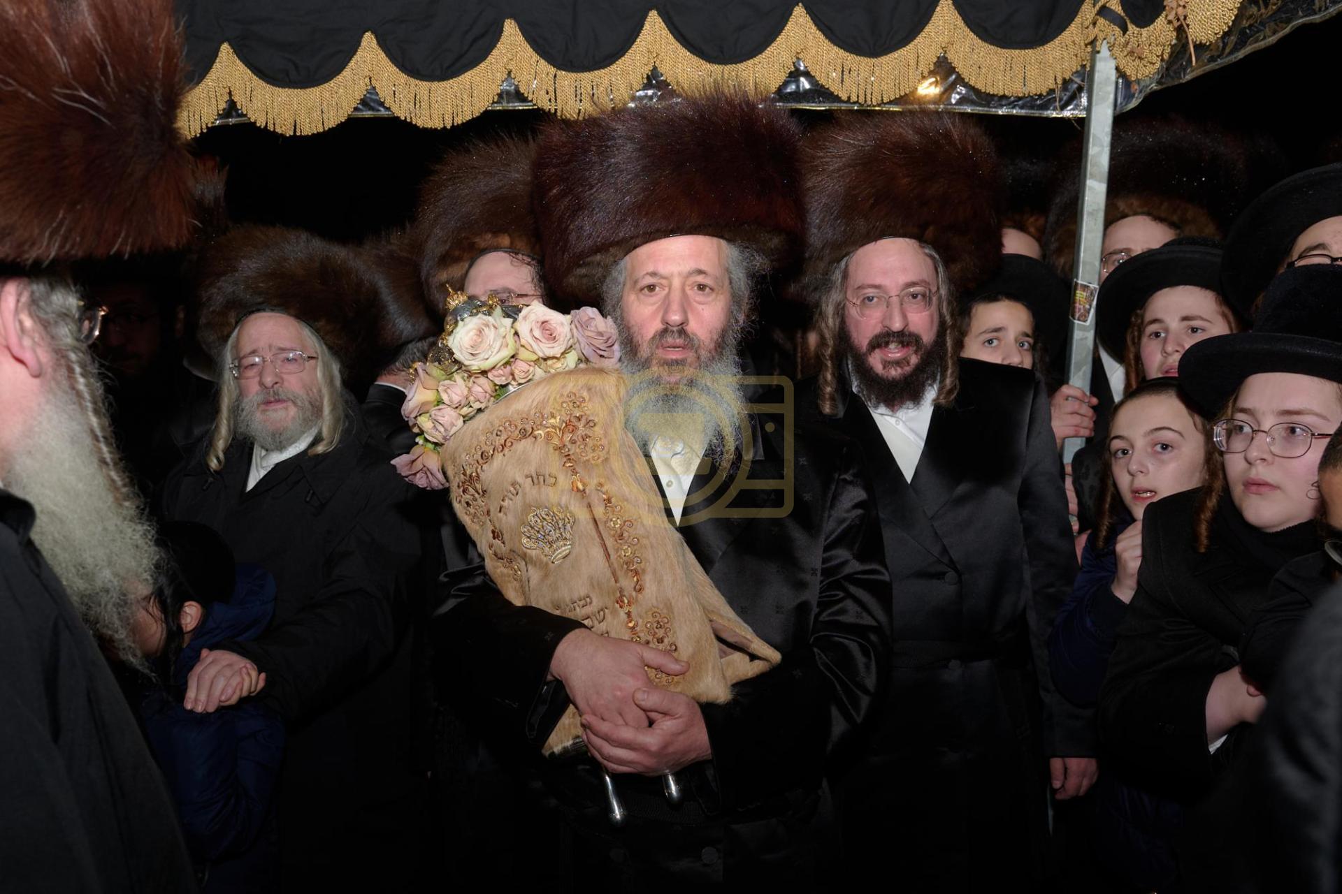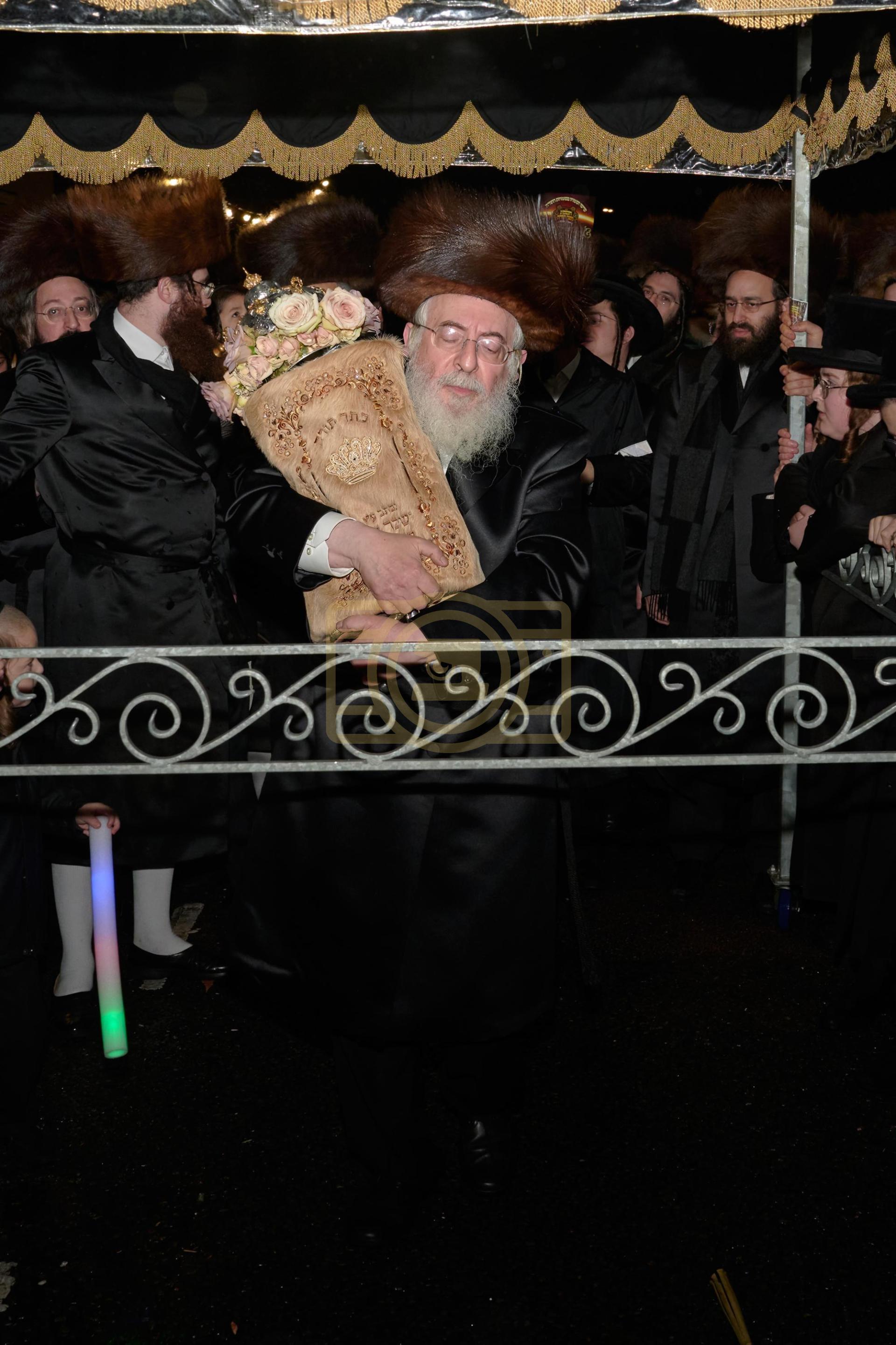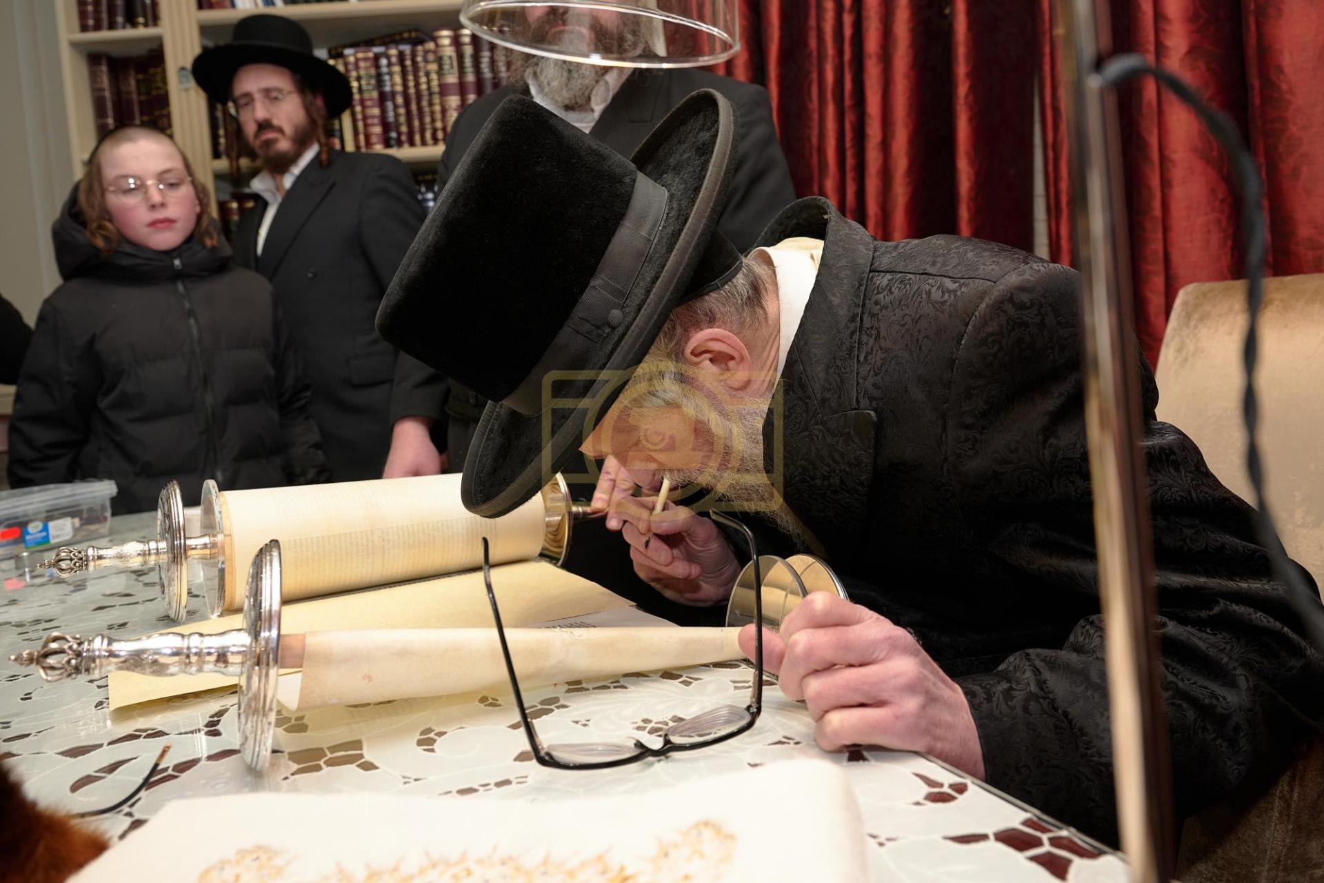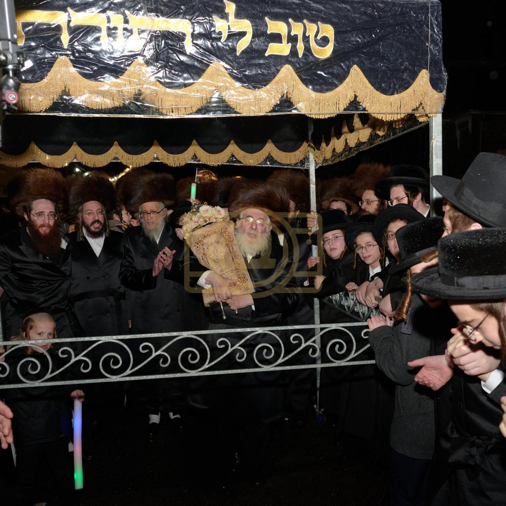 הערליכע הכנסת ספר תורה צום ביהמ"ד קיט"ל סאטמאר לאנדאן דורכן ראה"ק הרבני הנגיד ר' בעריש בערגער הי"ו לע"נ זיינע עלטערן ע"ה - מוצש"ק פ' תולדות