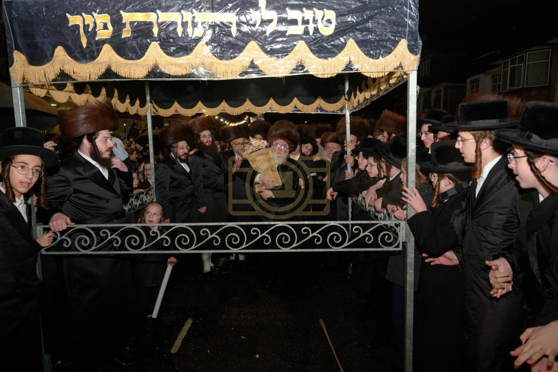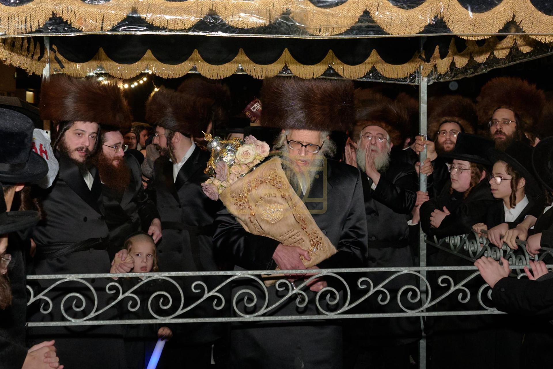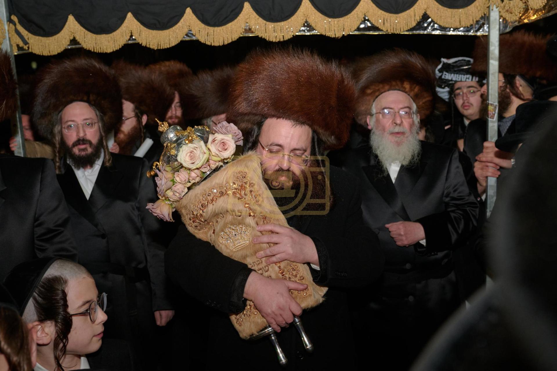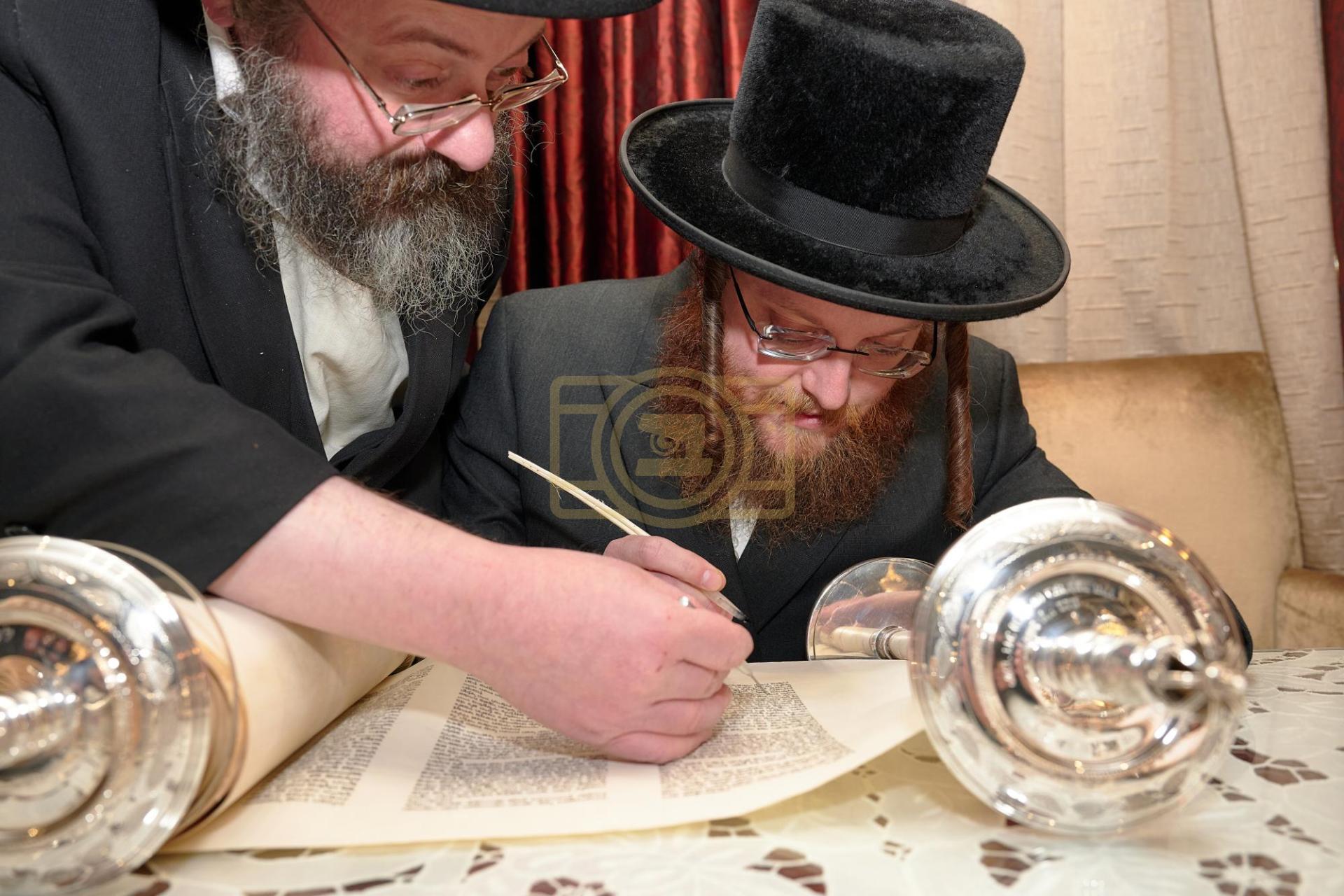 הערליכע הכנסת ספר תורה צום ביהמ"ד קיט"ל סאטמאר לאנדאן דורכן ראה"ק הרבני הנגיד ר' בעריש בערגער הי"ו לע"נ זיינע עלטערן ע"ה - מוצש"ק פ' תולדות