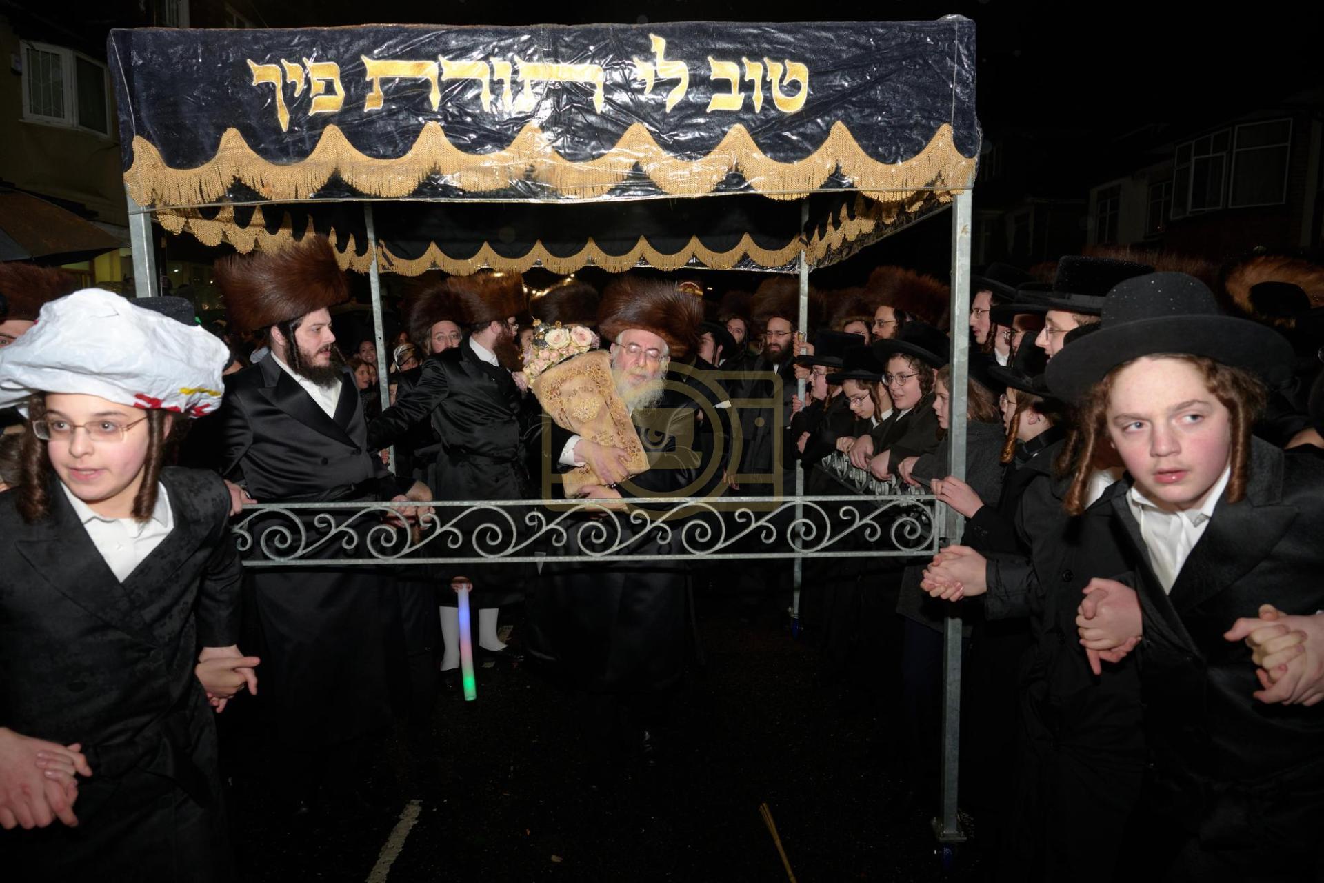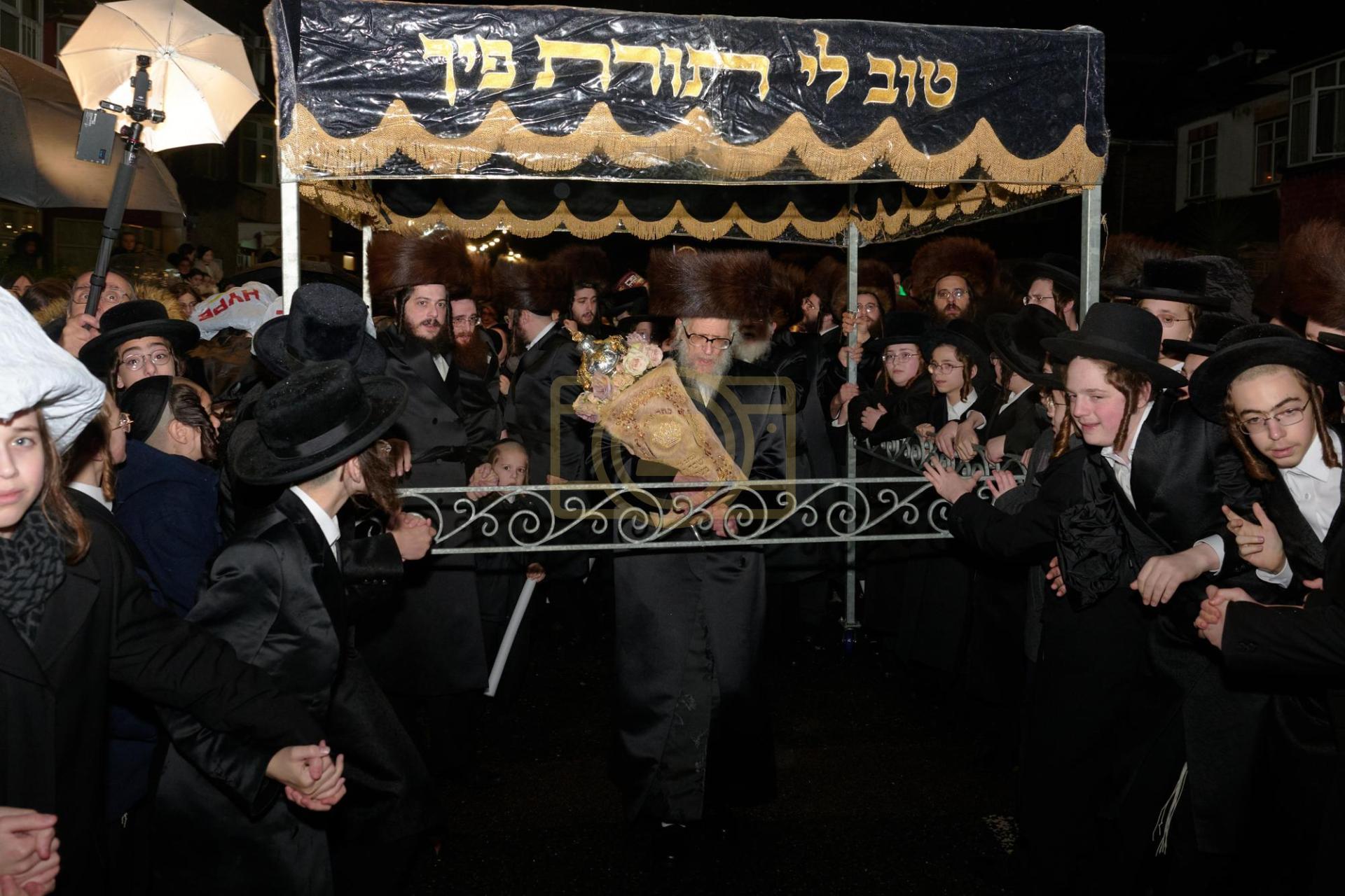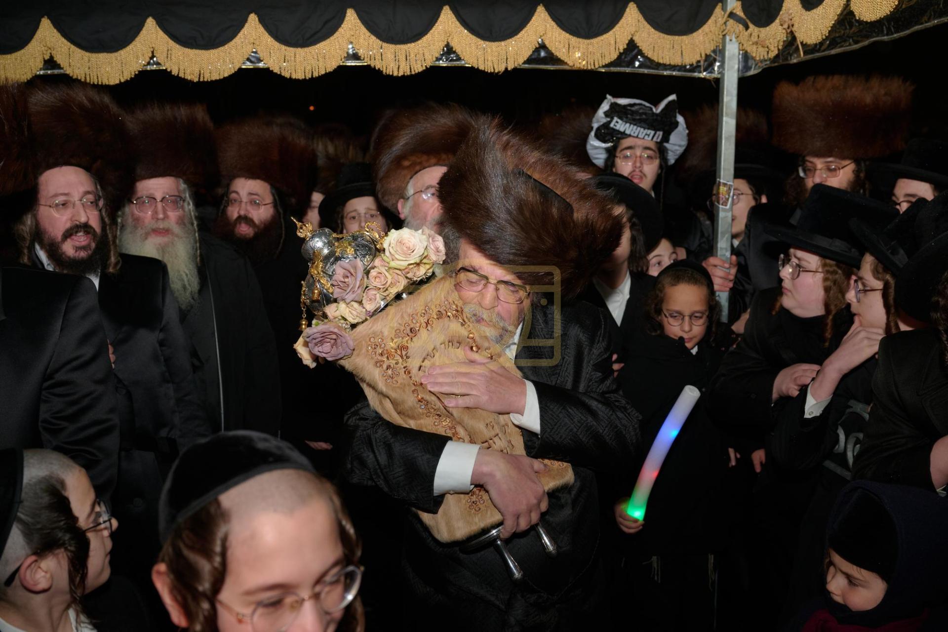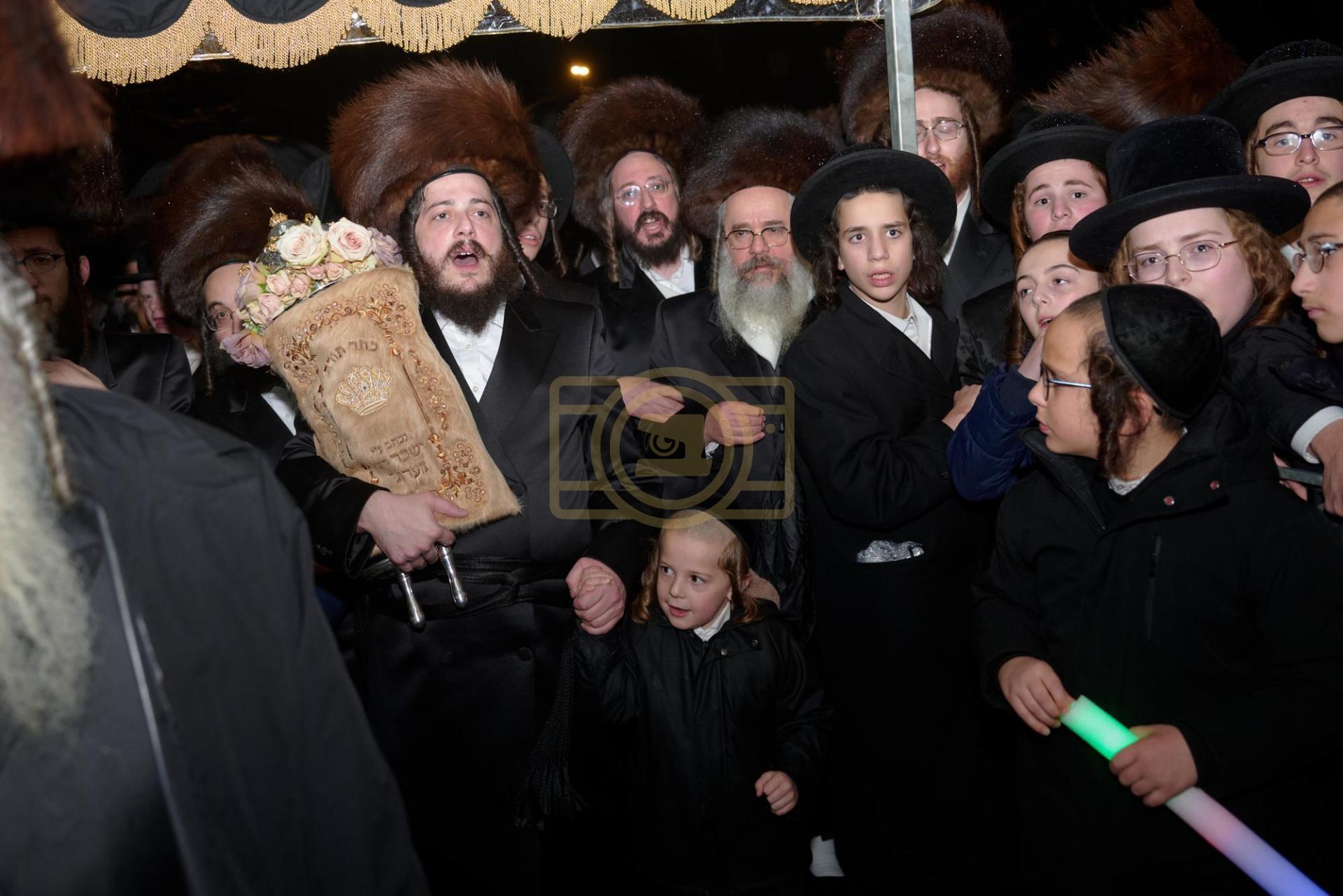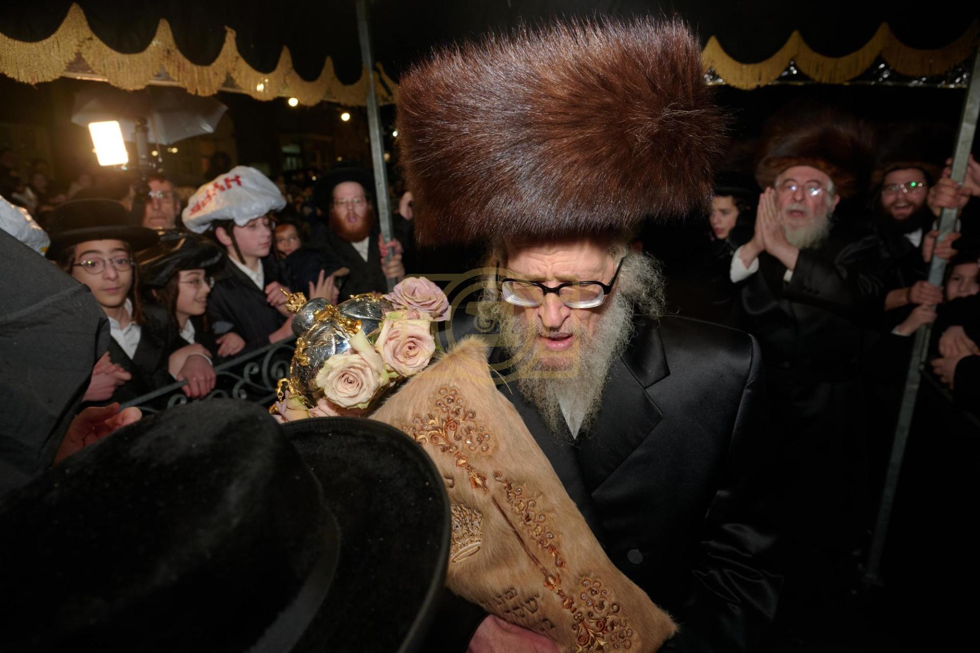 הערליכע הכנסת ספר תורה צום ביהמ"ד קיט"ל סאטמאר לאנדאן דורכן ראה"ק הרבני הנגיד ר' בעריש בערגער הי"ו לע"נ זיינע עלטערן ע"ה - מוצש"ק פ' תולדות