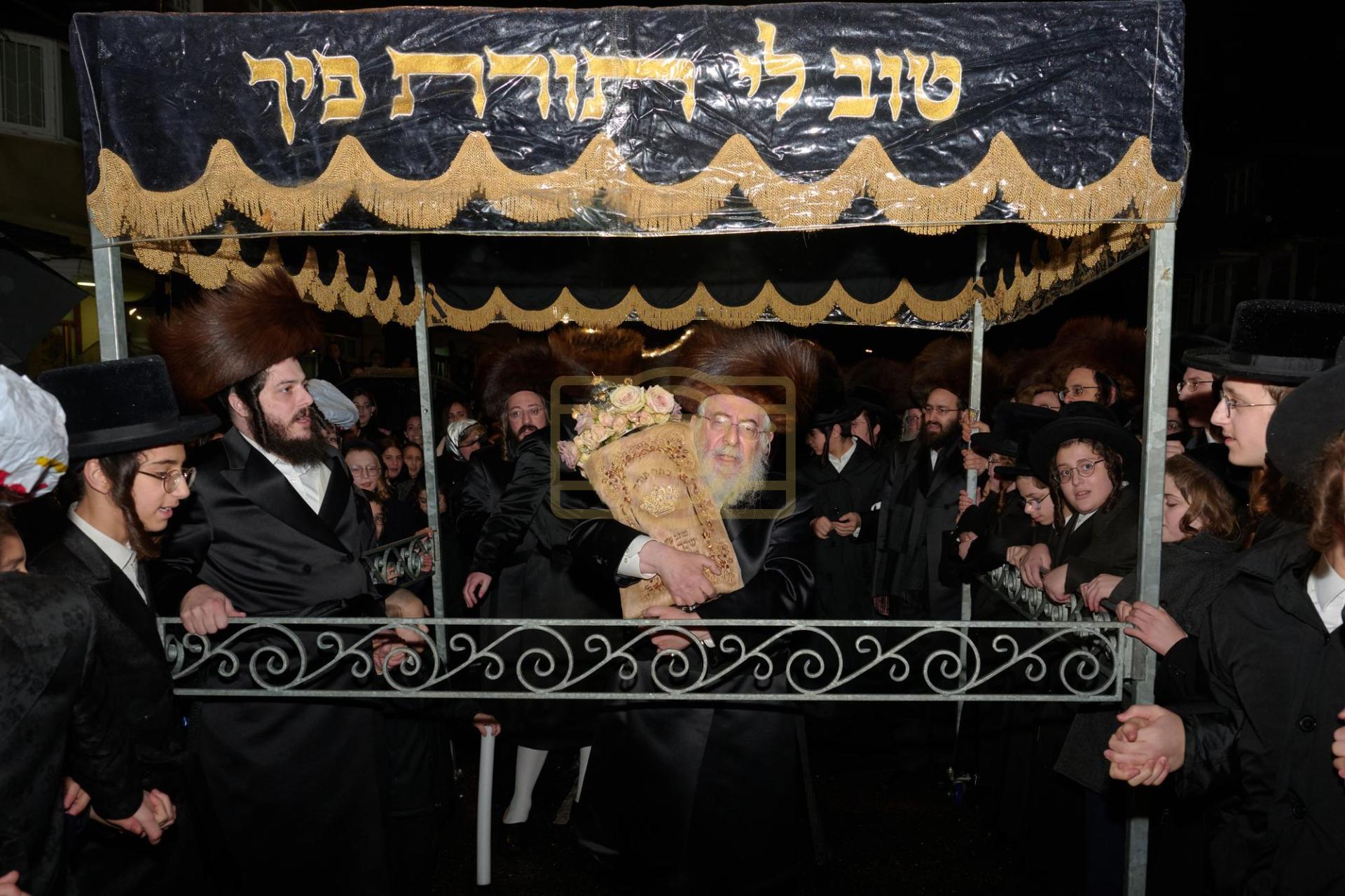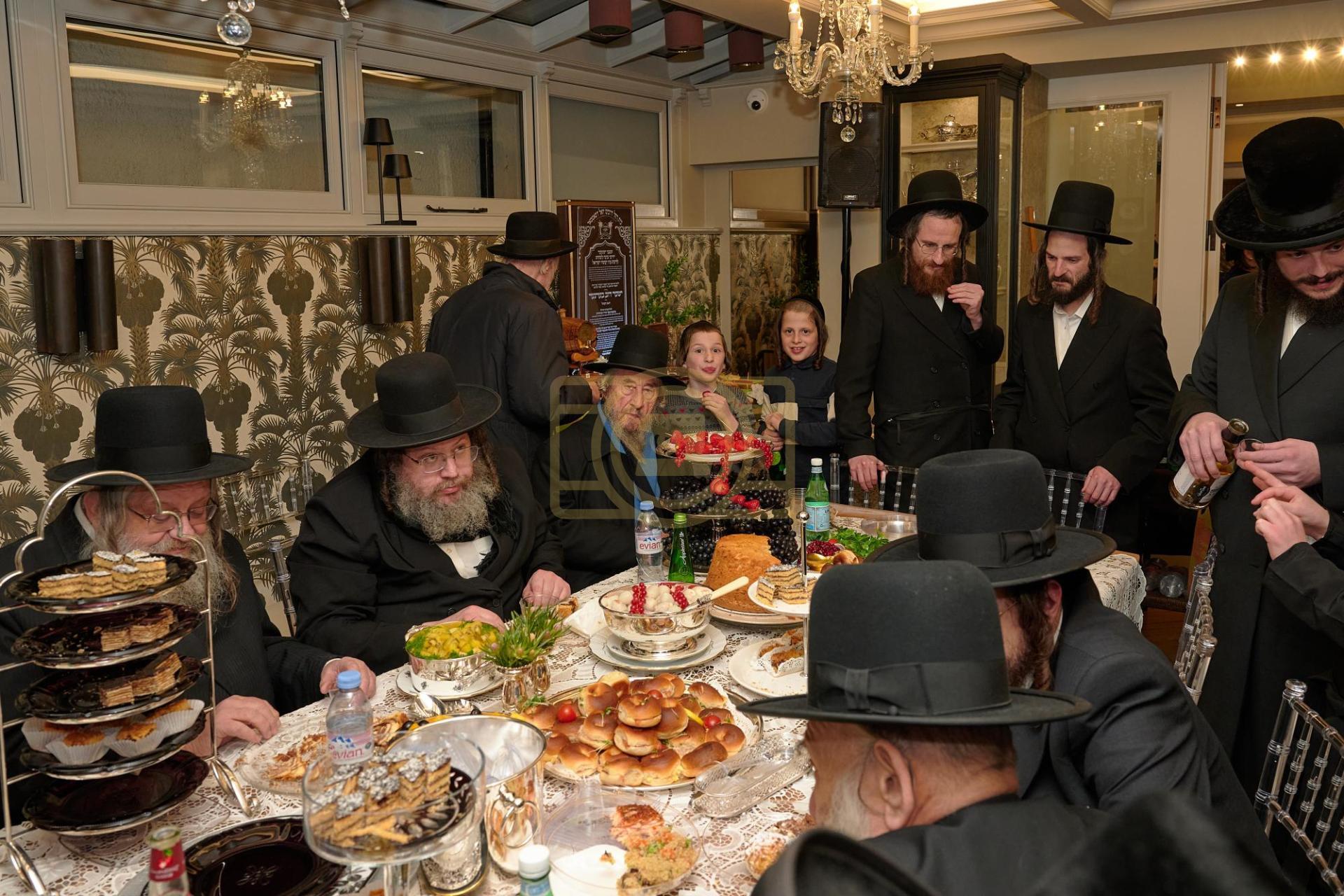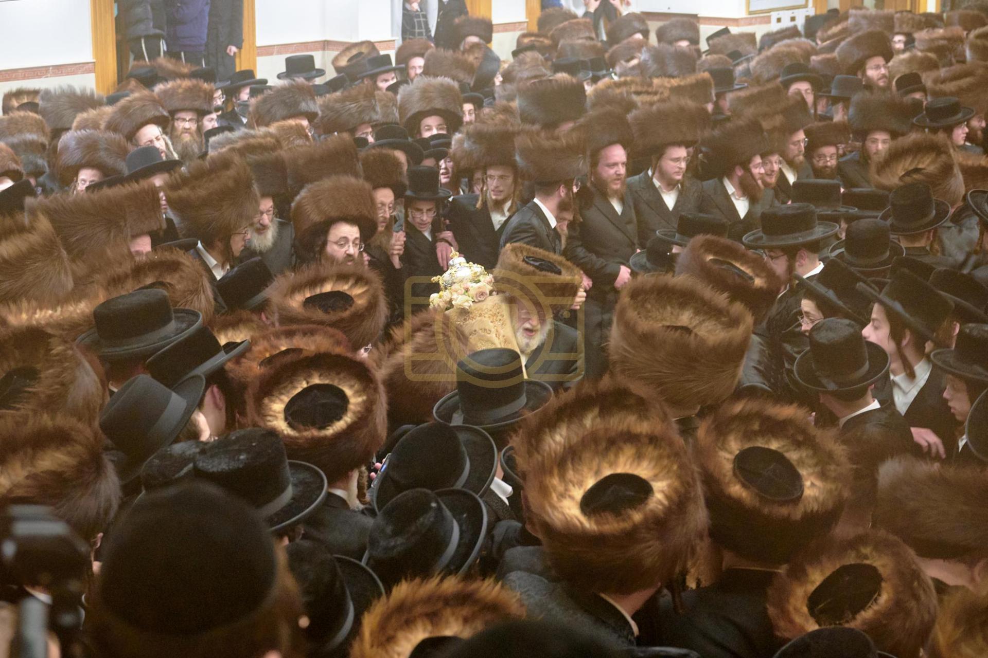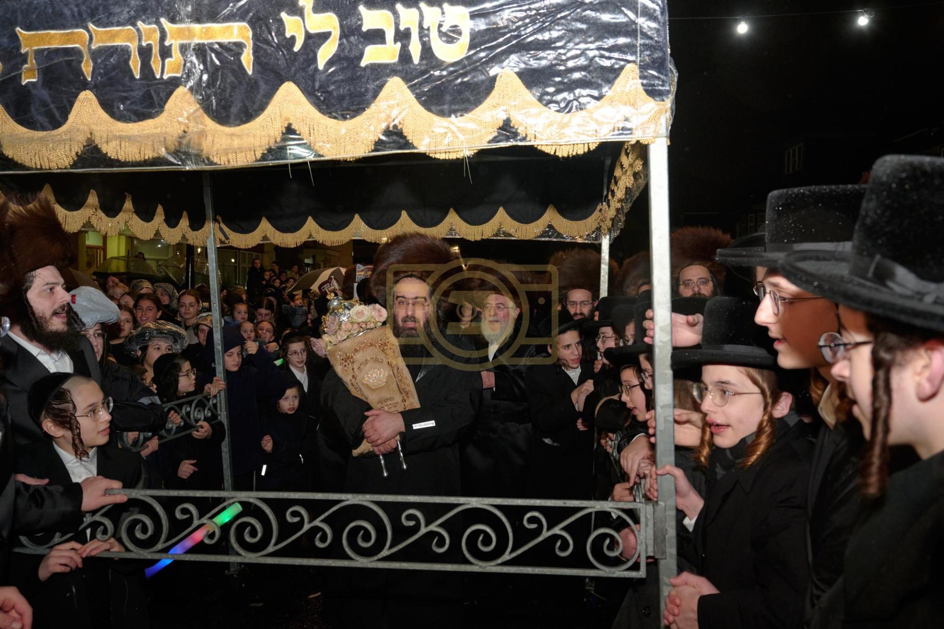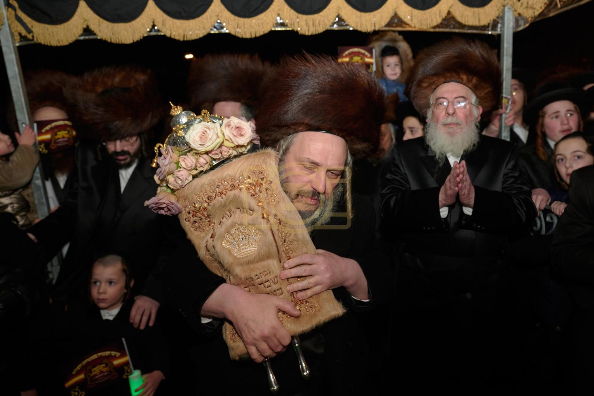 הערליכע הכנסת ספר תורה צום ביהמ"ד קיט"ל סאטמאר לאנדאן דורכן ראה"ק הרבני הנגיד ר' בעריש בערגער הי"ו לע"נ זיינע עלטערן ע"ה - מוצש"ק פ' תולדות