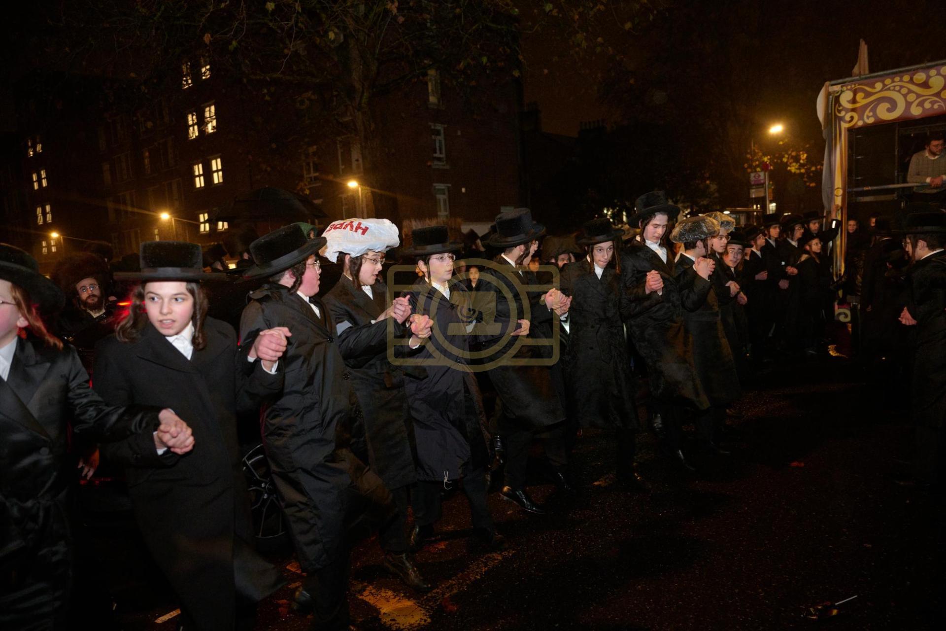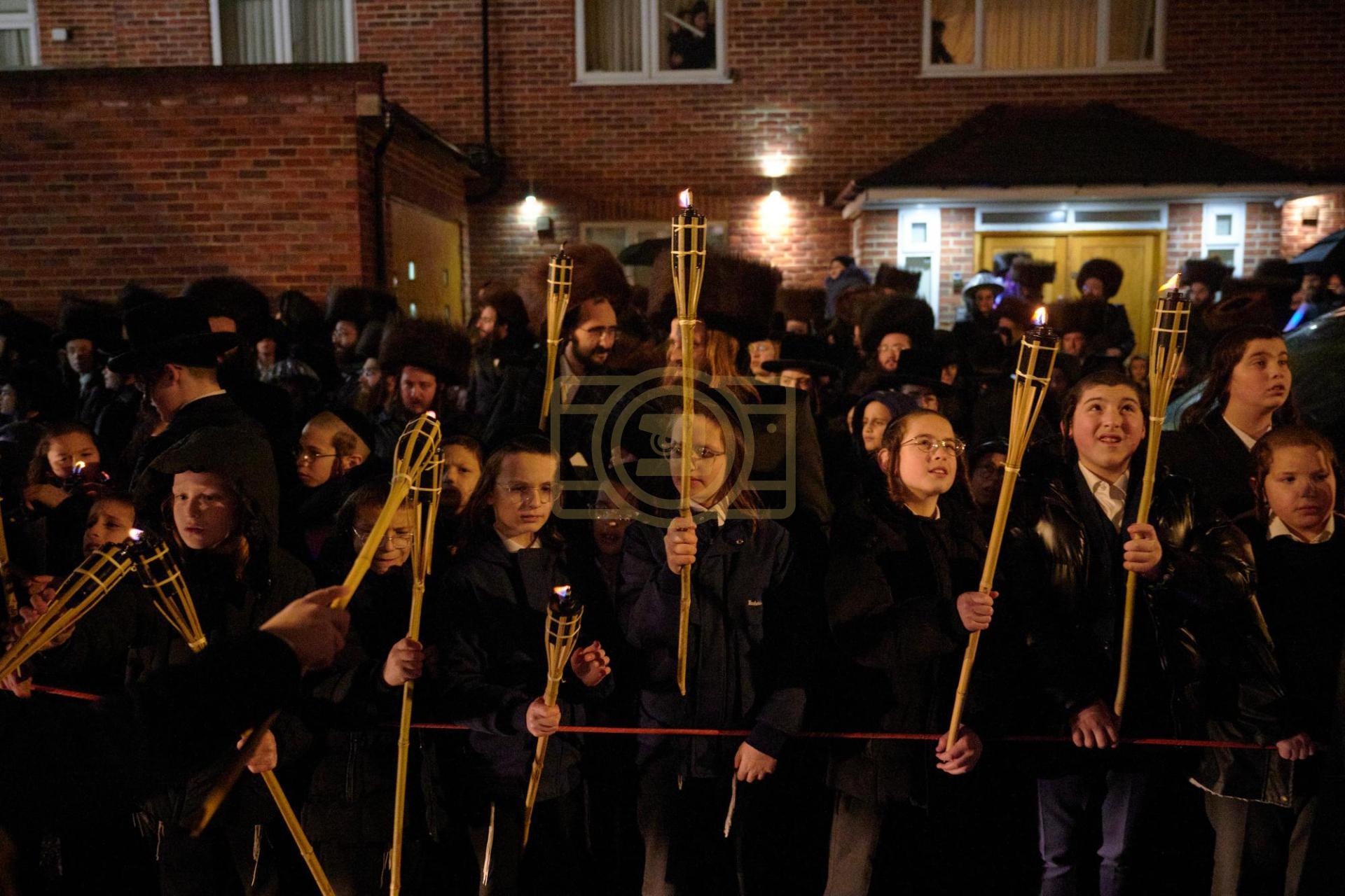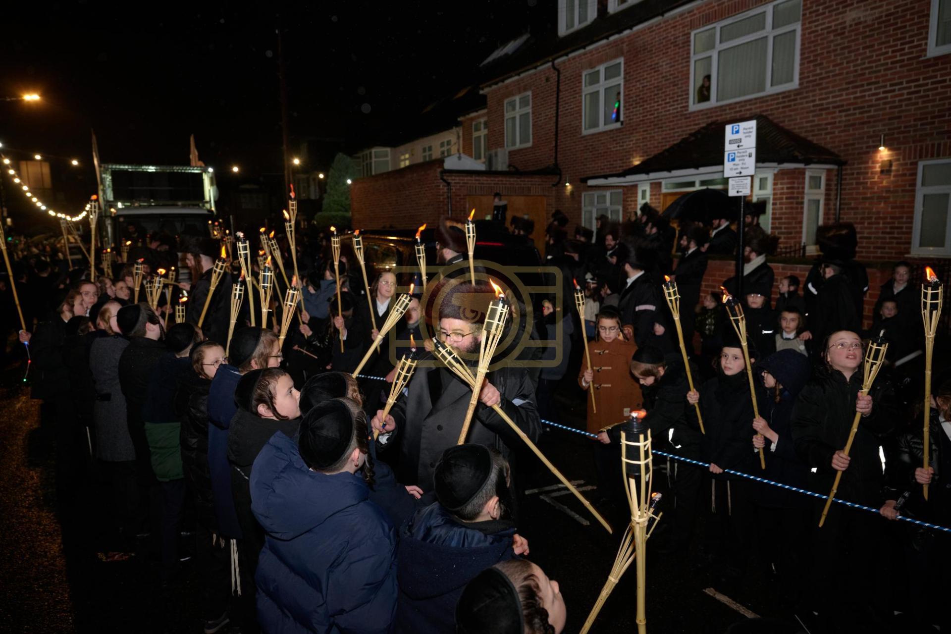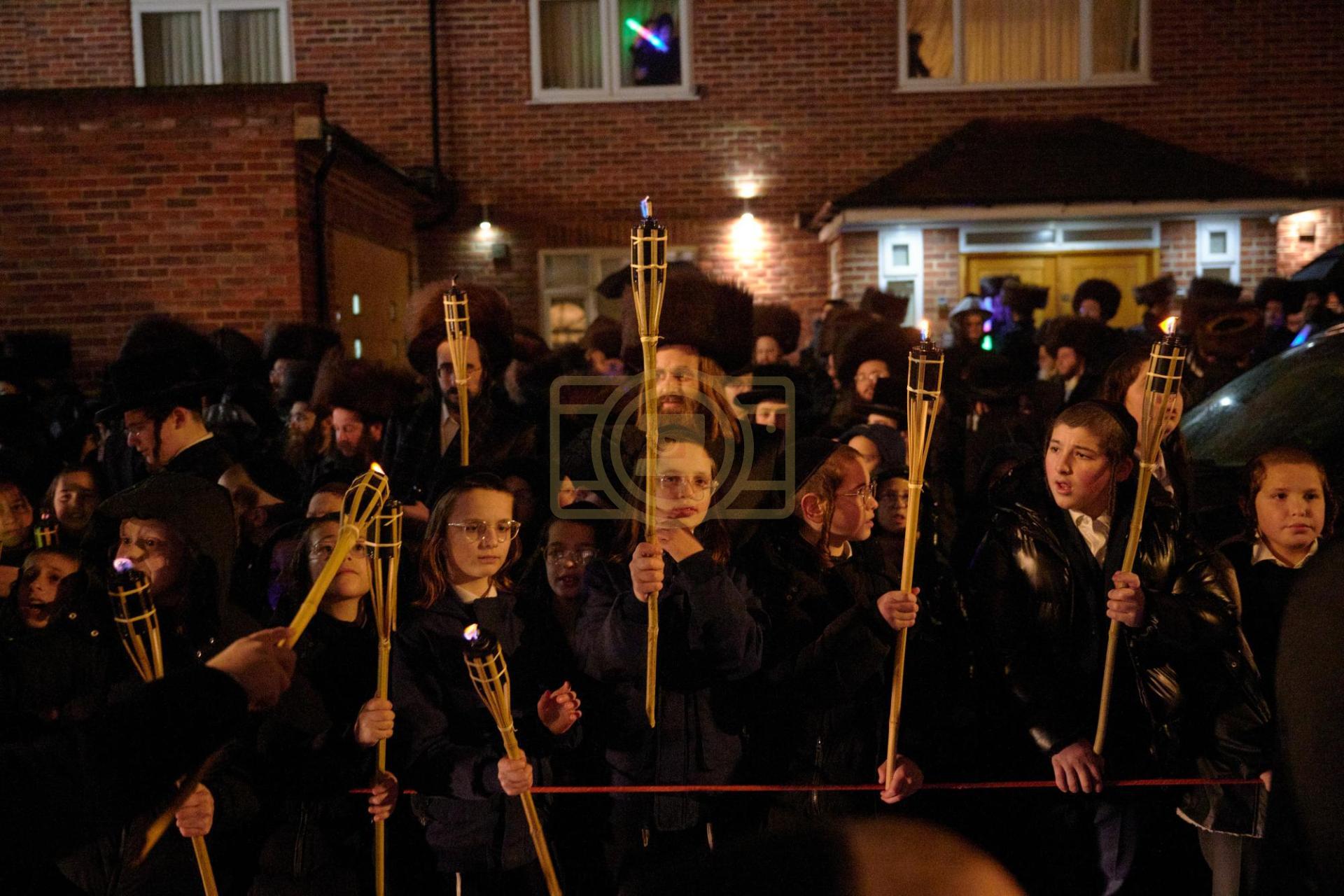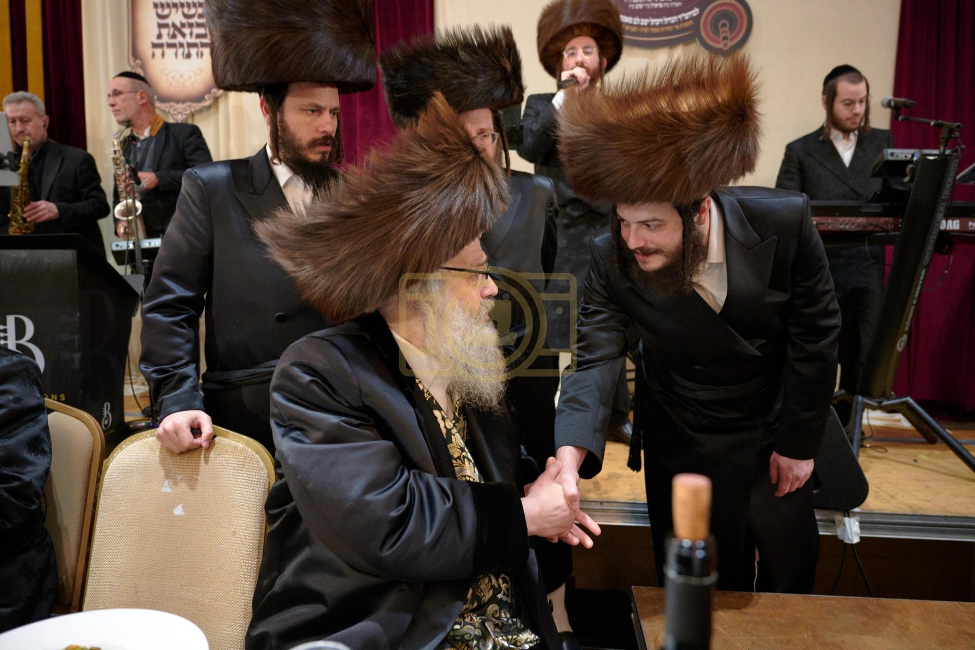 הערליכע הכנסת ספר תורה צום ביהמ"ד קיט"ל סאטמאר לאנדאן דורכן ראה"ק הרבני הנגיד ר' בעריש בערגער הי"ו לע"נ זיינע עלטערן ע"ה - מוצש"ק פ' תולדות