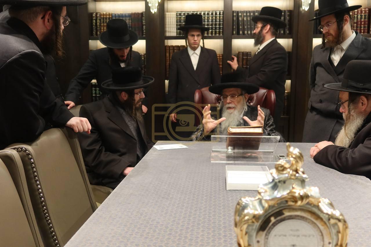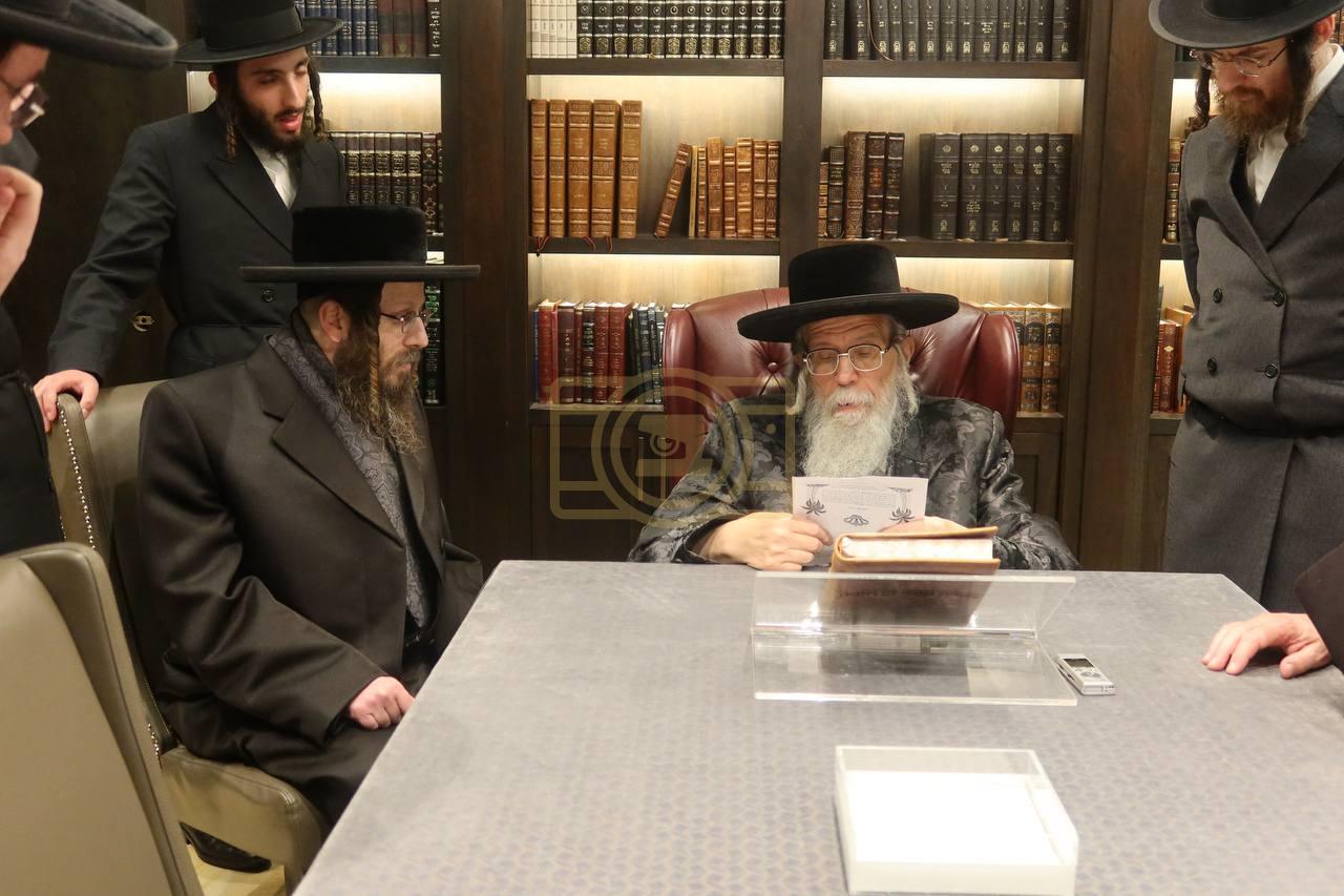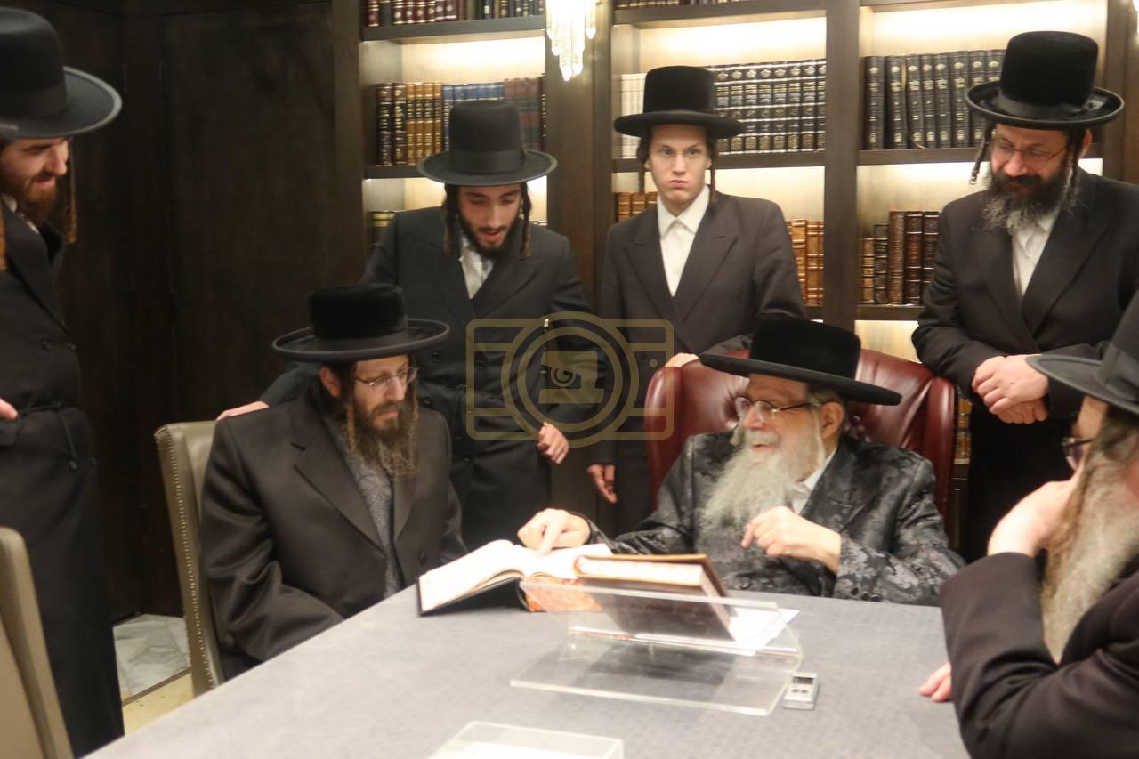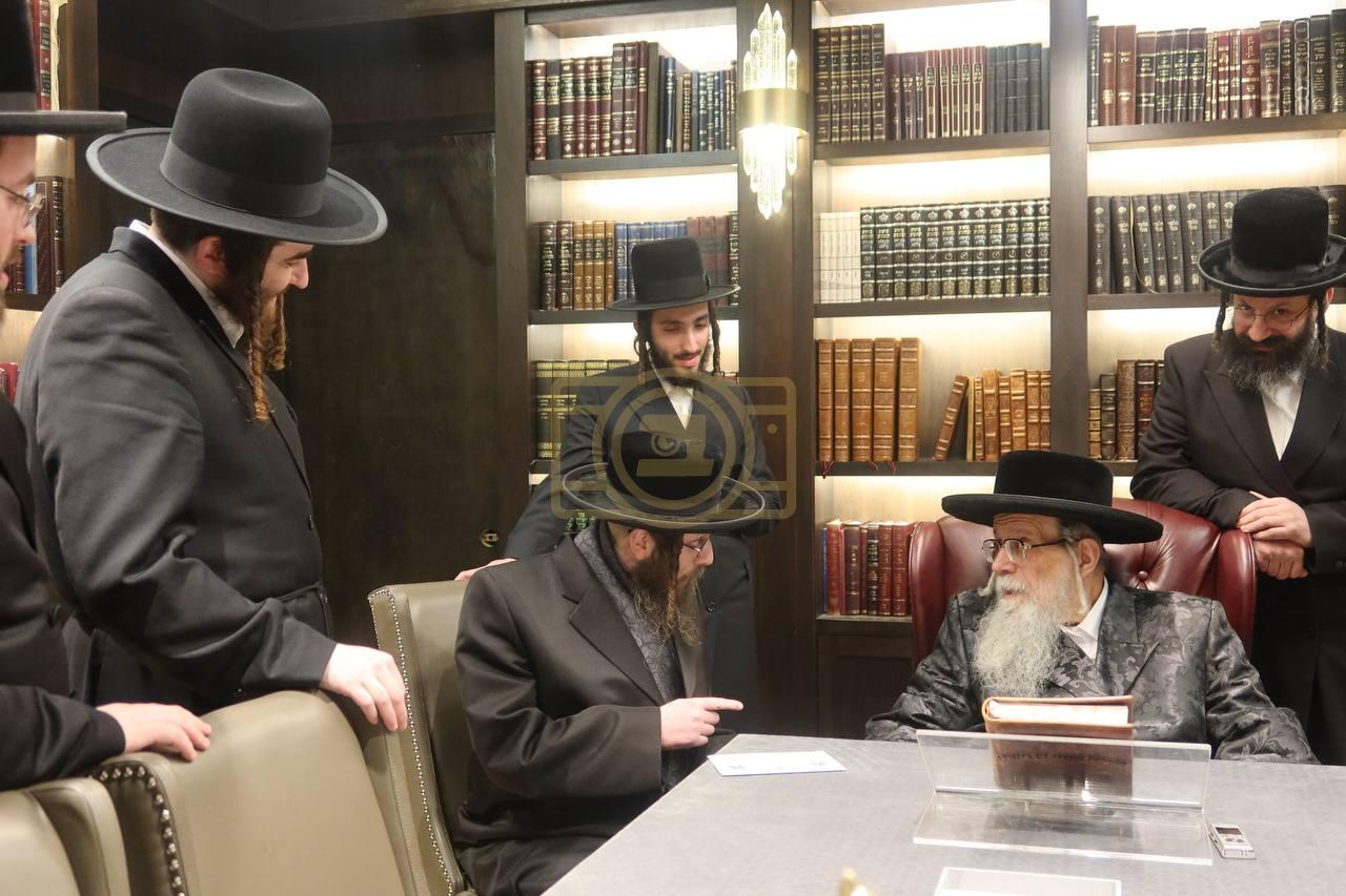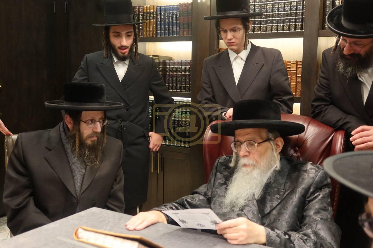 הגה"צ ר' יואל גלאנץ שליט"א חתן הגה"צ אבדק"ק סאטמאר וומסב"ג שליט"א בבתי אדמורי"ם ורבנים איינצולאדענען צום היסטארישן חתונה פון בתו הכלה עלטסטע אור אייניקל פון כ"ק אדמו"ר מסאטמאר שליט"א