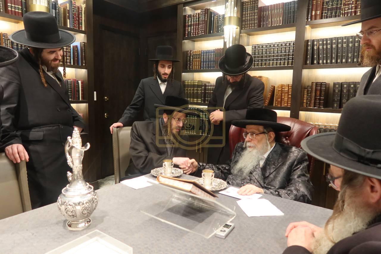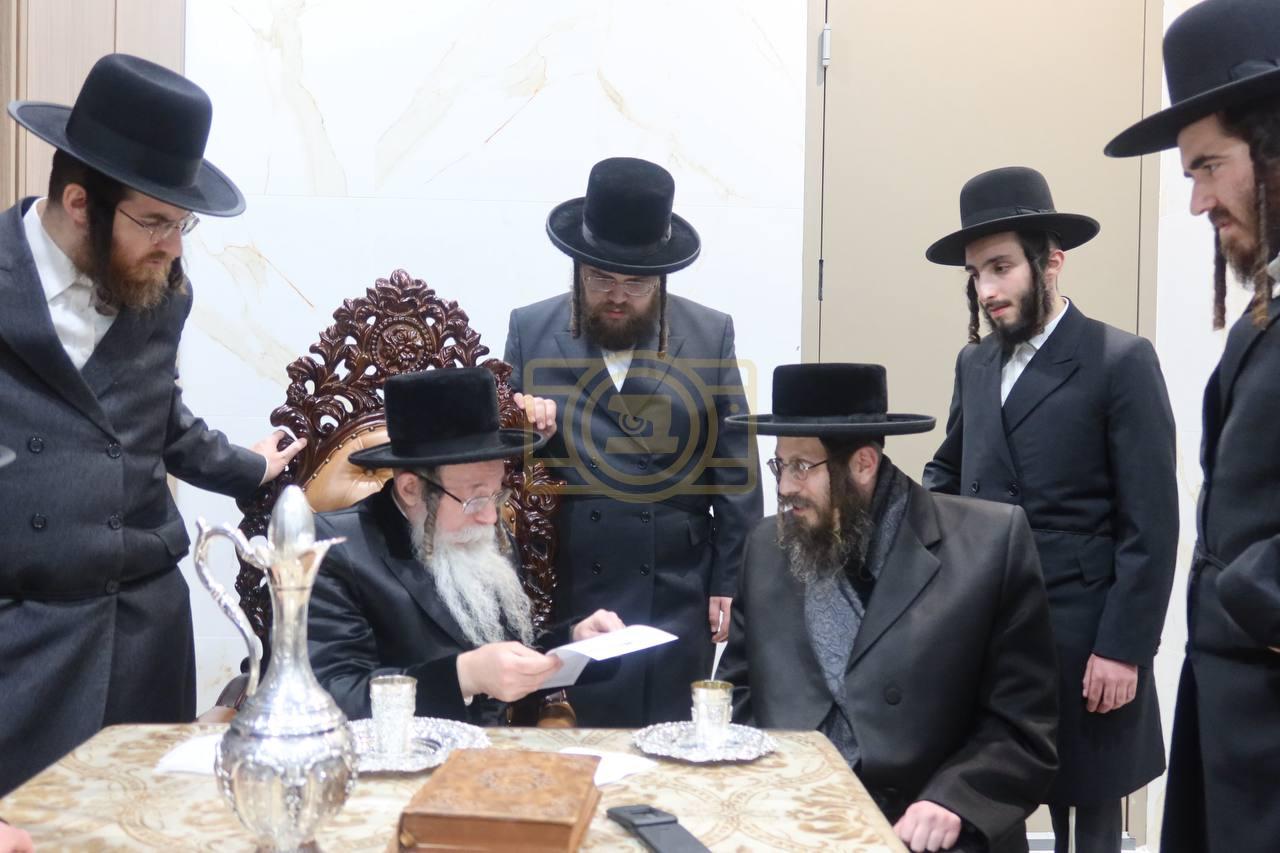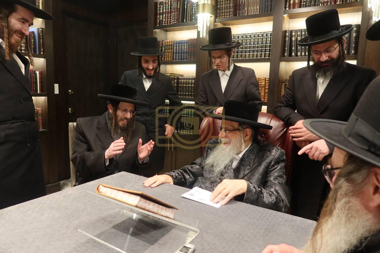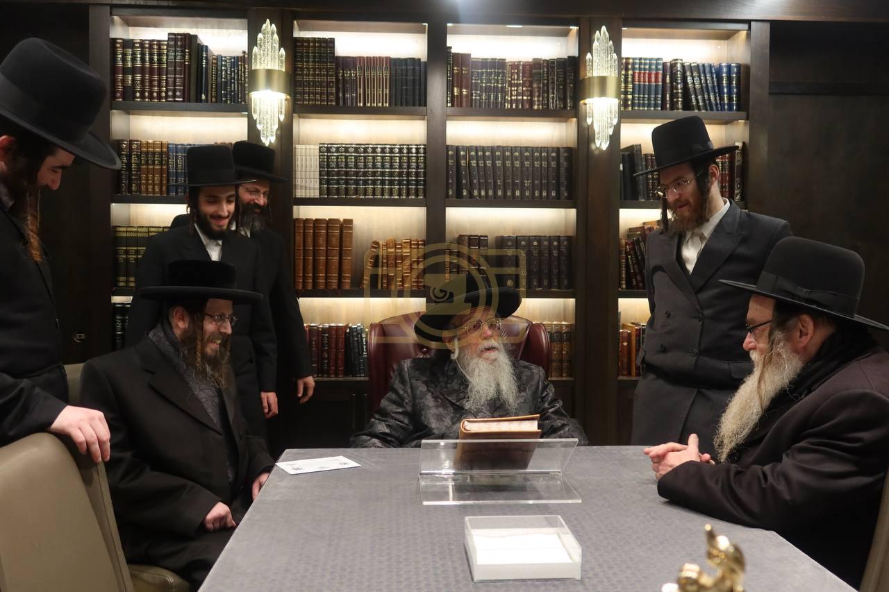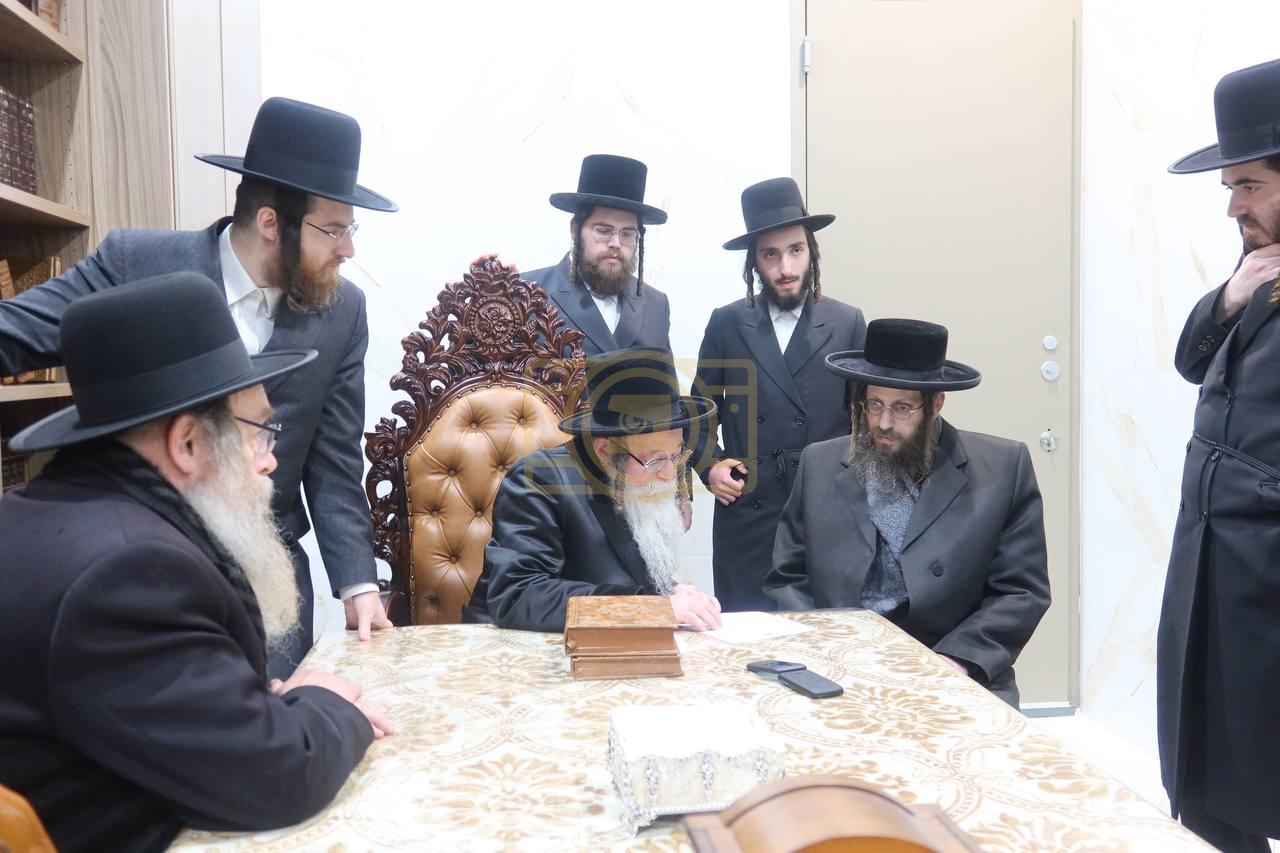 הגה"צ ר' יואל גלאנץ שליט"א חתן הגה"צ אבדק"ק סאטמאר וומסב"ג שליט"א בבתי אדמורי"ם ורבנים איינצולאדענען צום היסטארישן חתונה פון בתו הכלה עלטסטע אור אייניקל פון כ"ק אדמו"ר מסאטמאר שליט"א