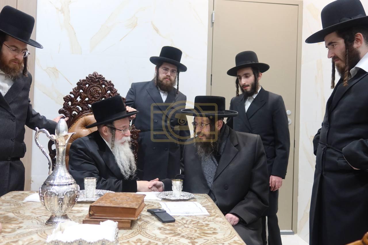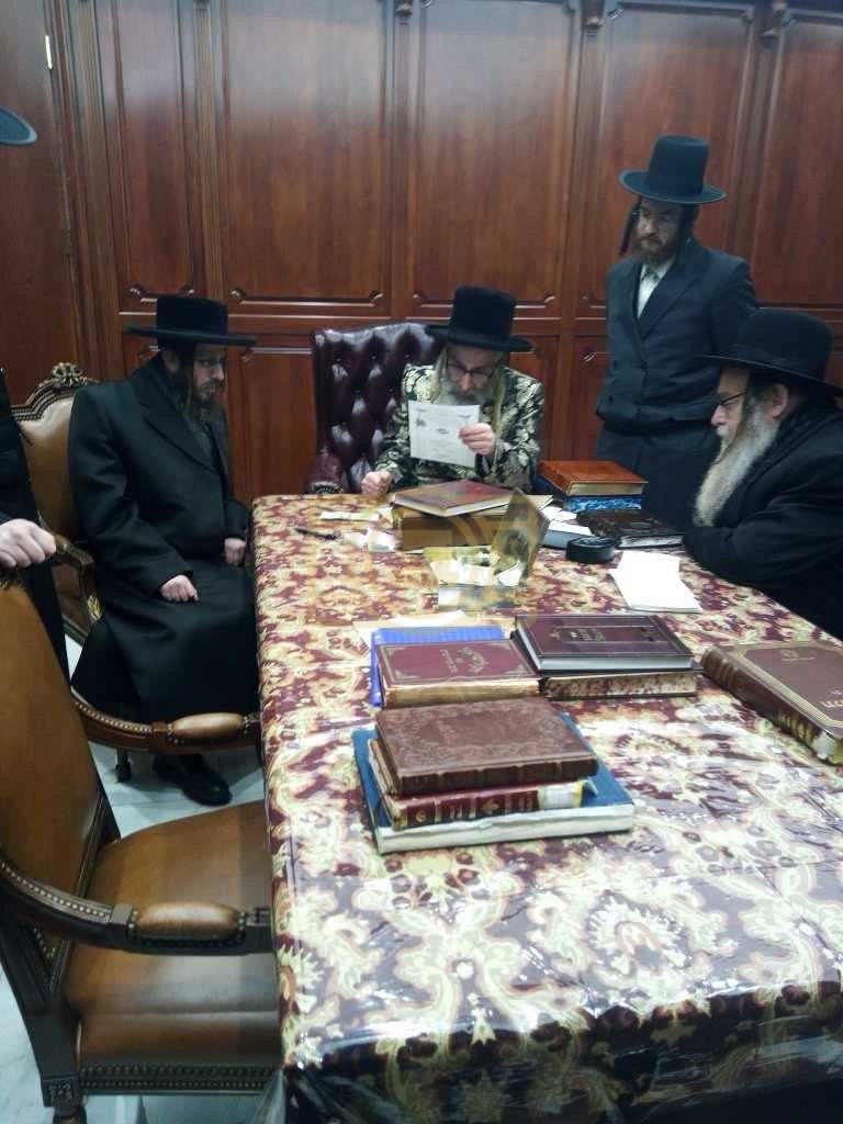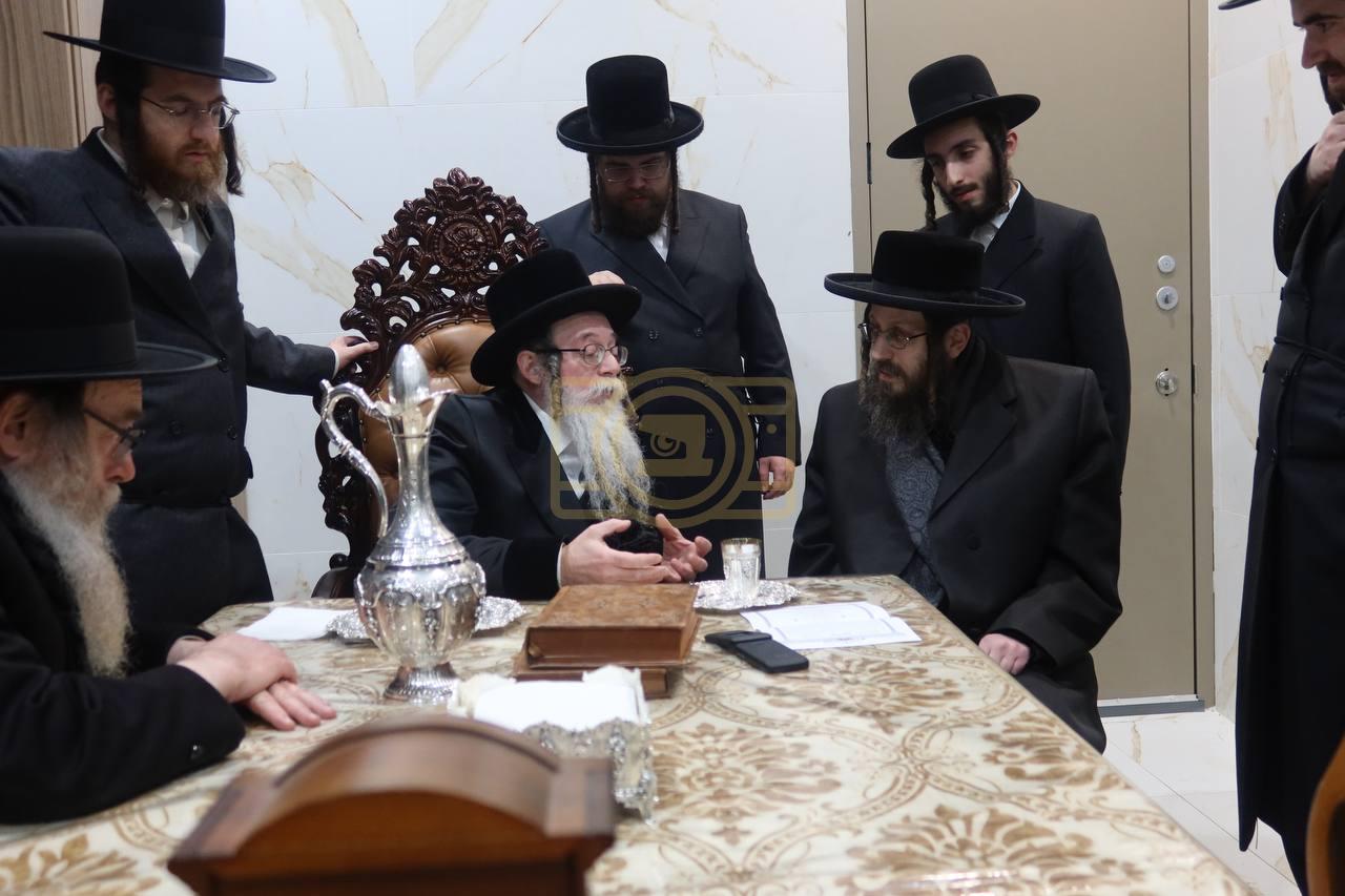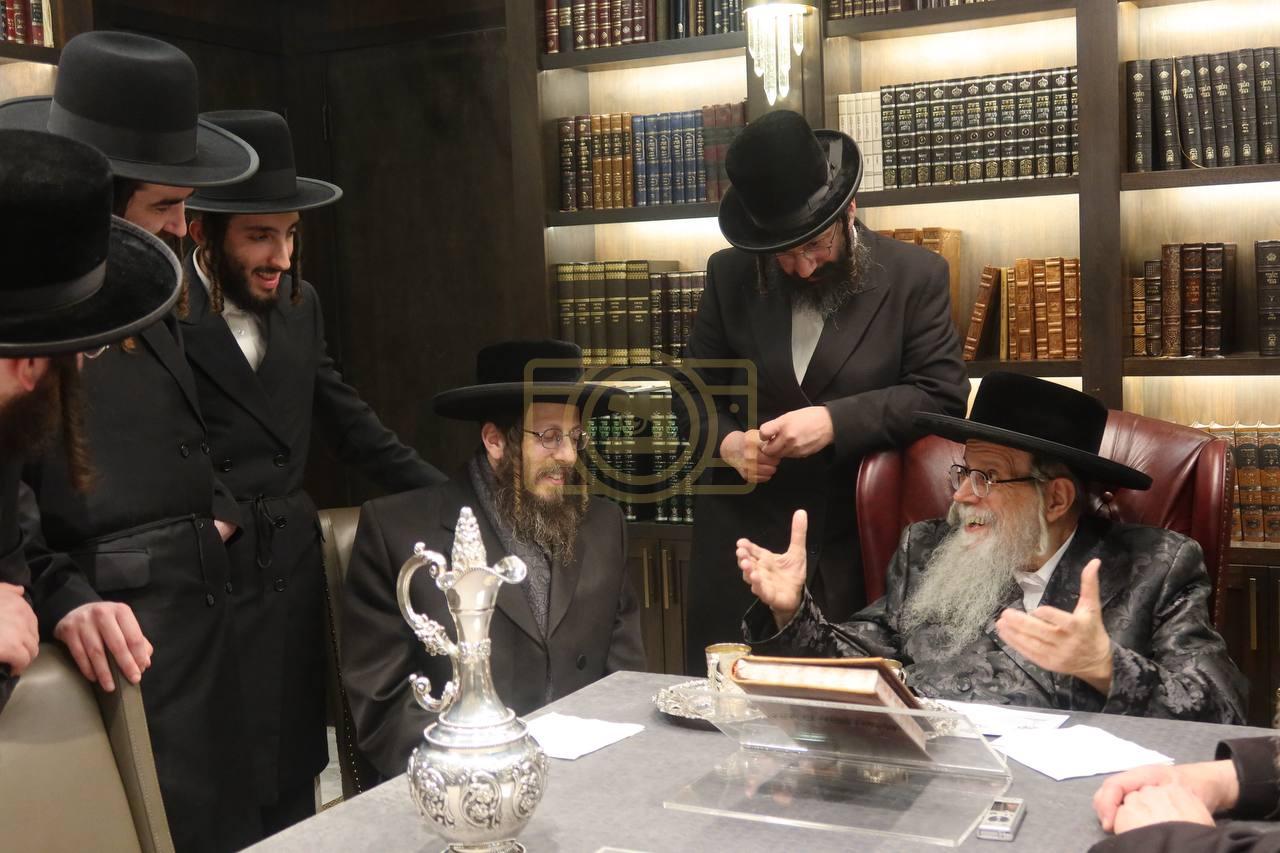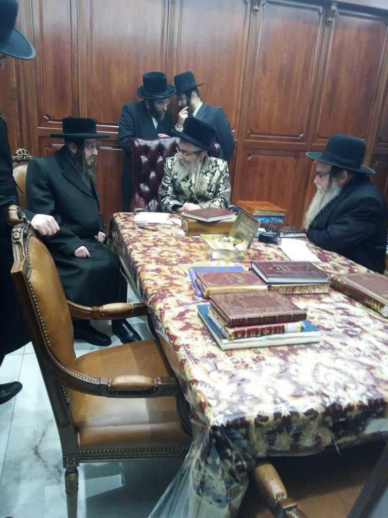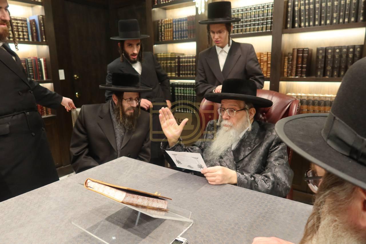 הגה"צ ר' יואל גלאנץ שליט"א חתן הגה"צ אבדק"ק סאטמאר וומסב"ג שליט"א בבתי אדמורי"ם ורבנים איינצולאדענען צום היסטארישן חתונה פון בתו הכלה עלטסטע אור אייניקל פון כ"ק אדמו"ר מסאטמאר שליט"א