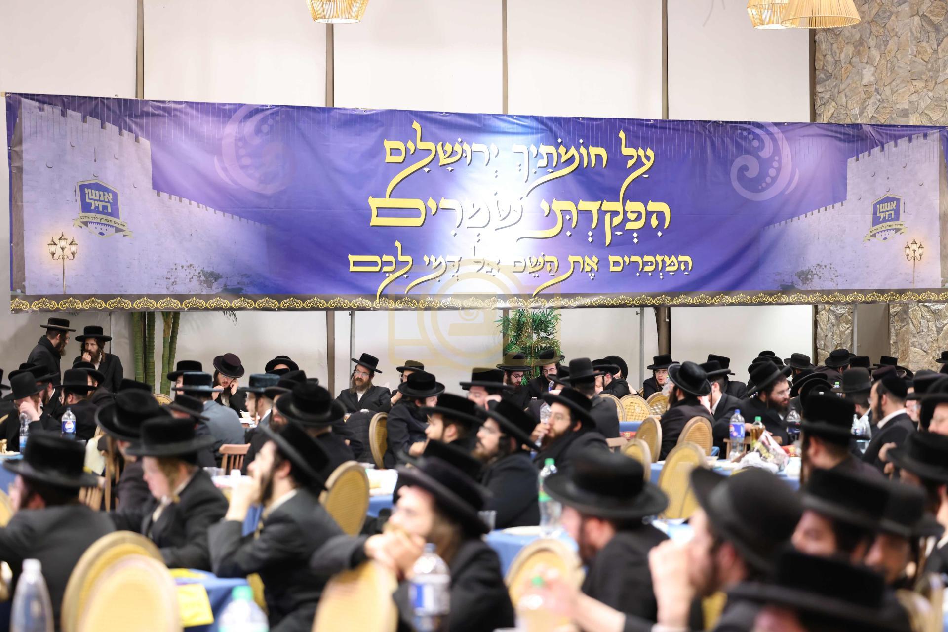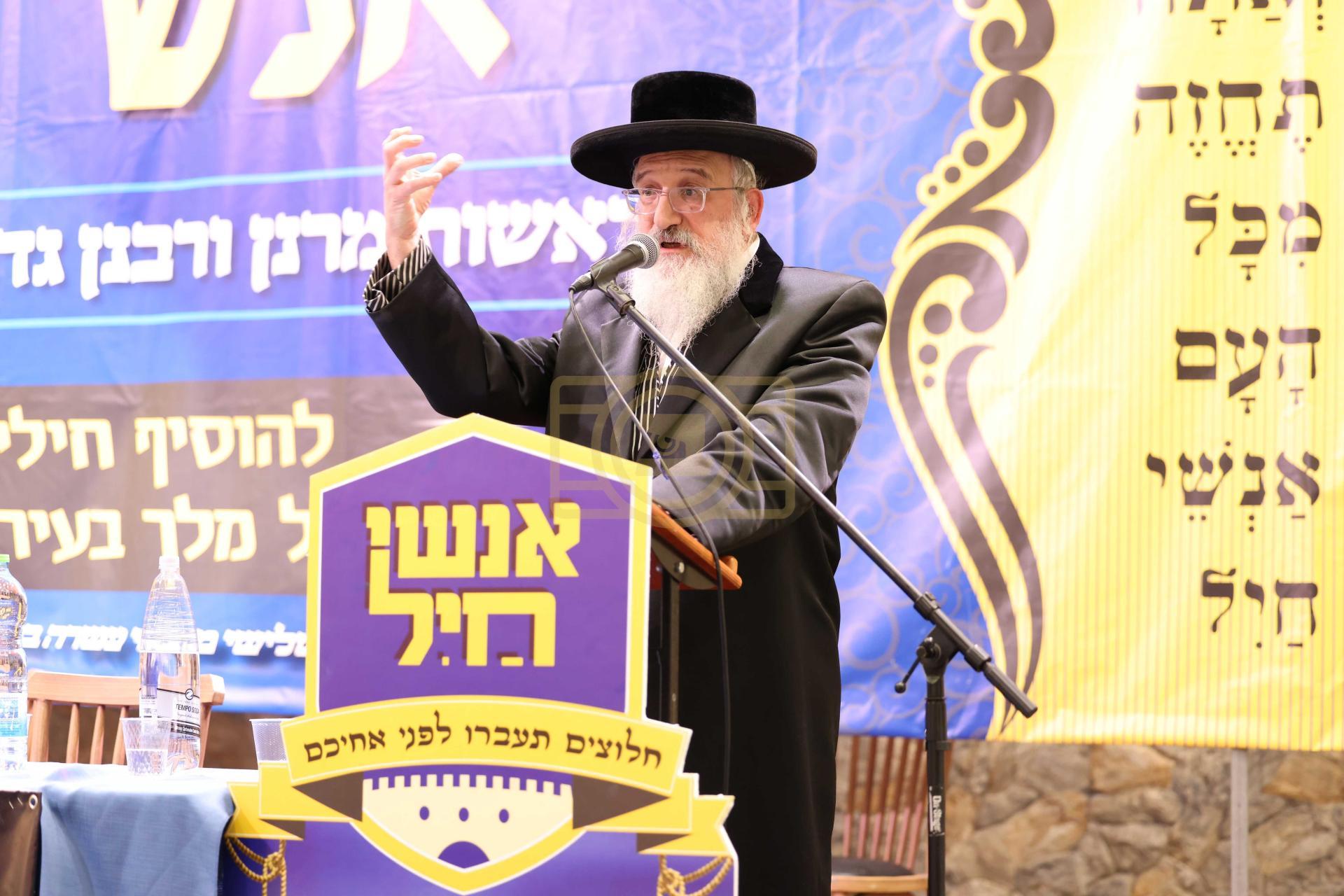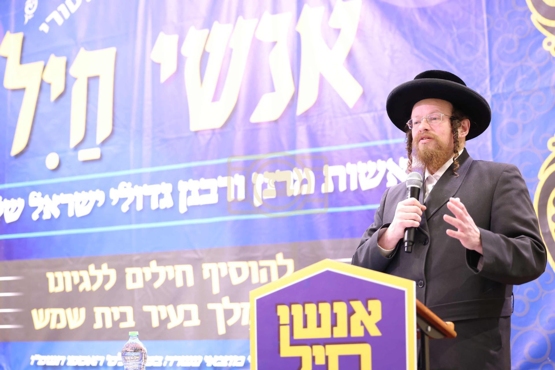 כינוס האדיר "אנשי חיל" צו צולייגן חיילים ללגיונו של מלך בעיר בית שמש בראשות אדמורי"ם ורבנים שליט"א